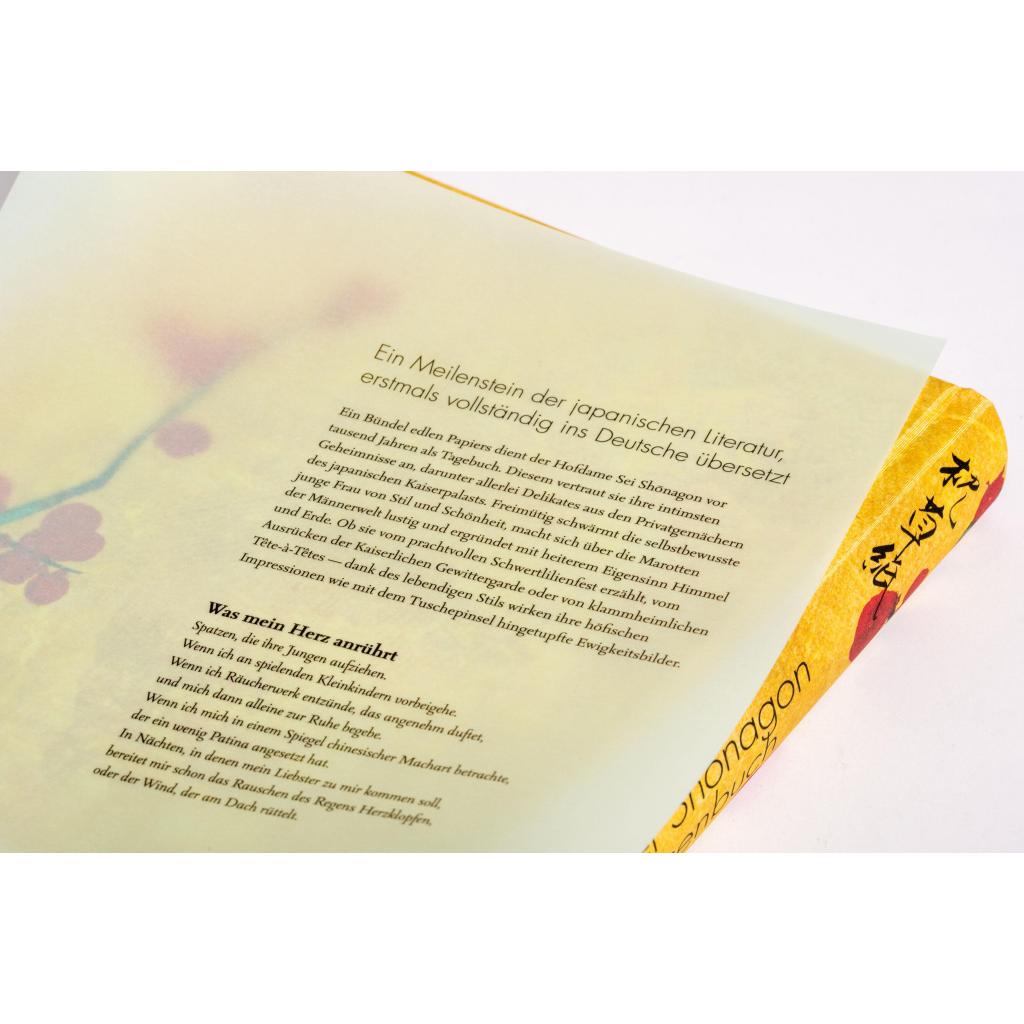 Eine poetische Zeitreise an den japanischen Kaiserhof des Jahres 1000 Neuübersetzung - erstmals vollständig auf Deutsch! Ein Bündel edlen Papiers diente Sei Shonagon vor tausend Jahren als Notizbuch. Ihm vertraute sie an, was ihr durch den Kopf ging, darunter Vertrauliches und Delikates aus den Privatgemächern des Kaiserpalasts. Ob sie geistreiche Zwiegespräche schildert, ein intimes Tête-à-Tête oder das Schwertlilienfest ausmalt - ihre Impressionen wirken wie mit dem Tuschepinsel hingetupfte Ewigkeitsbilder. Nie hat man eine Frau inspirierter über sich und ihre Welt plaudern hören! Sei Shonagons «Telegramme» aus einer sagenhaften Hochkultur gewähren tiefe Einblicke in das Japan der Heian-Zeit wie auch ins Seelenleben der Verfasserin selbst. Ihr radikal subjektives Bekenntnisbuch, erstmals vollständig ins Deutsche übersetzt und dabei von aller falschen Süßlichkeit befreit, bezaubert durch seinen klaren, ungekünstelten Ton. Freizügig stellt hier eine kluge, selbstbewusste Frau Weltbewegendes neben scheinbar Banales, spricht über Mode oder Galanterie und entlarvt mit spitzer Feder das Intrigenspiel bei Hofe. Aus kritischer Halbdistanz zu den Mächtigen zeigt sie das Treiben einer müßiggängerischen Feudalkaste, die sich ihre Zeit mit Kalligraphie, Flötenspiel oder Fußball vertreibt. Und amüsiert erkennen wir heutigen Leser: Auch vor tausend Jahren gab es sie schon, die eitlen Parvenüs und Bonzen, Trendsetter und Stilikonen, Ästheten und Fashion-Victims. Der Einband aus bedrucktem und foliengeprägtem Feinleinen, die farbige Fadenheftung und der Zweifarbdruck (Schmuckfarbe rot) auf Satinpapier machen diese Ausgabe zu einer bibliophilen Kostbarkeit.