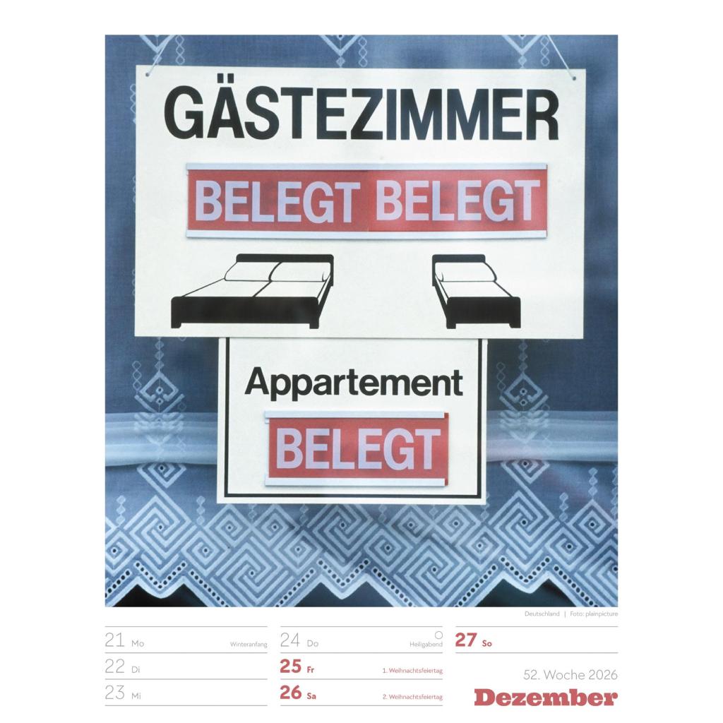 | Keyword: | Ackermann; Humor; Rätsel; Schilder; Wandplaner; Wochenkalender |