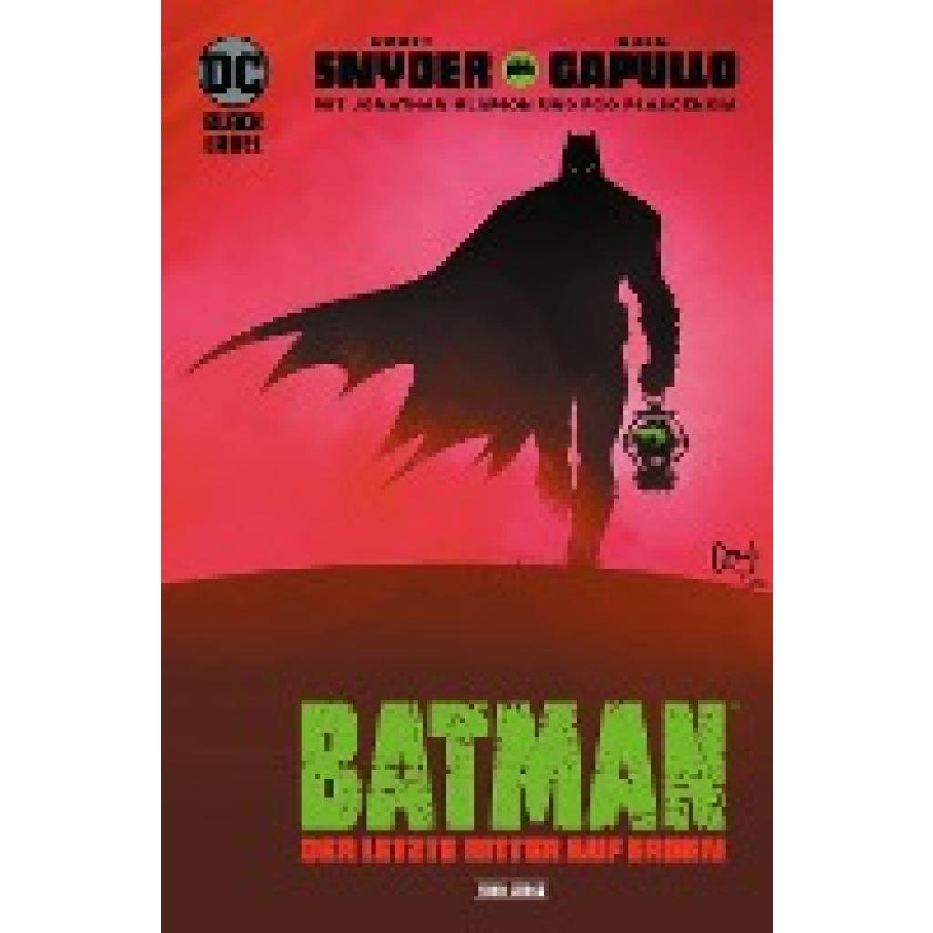 DER WAHNSINN NACH DEM ENDE DER WELT Batman erwartet in einer düsteren Zukunft nur Wahnsinn: Zum einen erzählt man Bruce Wayne als Patient im Arkham Asylum, dass er sich seinen Kreuzzug als Dunkler Ritter lediglich eingebildet hat, und zum anderen durchstreift Batman außerhalb der Anstalt eine bizarre postapokalyptische Welt mit dem Kopf des Jokers in einer Laterne. Unter dem Black Label präsentieren Top-Künstler eigenständige Comic-Highlights für Kenner, Neueinsteiger und Gelegenheitsleser. In diesem Einzelband inszenieren Scott Snyder und Greg Capullo, das Bestseller-Team hinter BATMAN: DER TOD DER FAMILIE und BATMAN METAL, das postapokalyptische letzte Abenteuer des Dunklen Ritters! ENTHÄLT: BATMAN: LAST KNIGHT ON EARTH 1-3