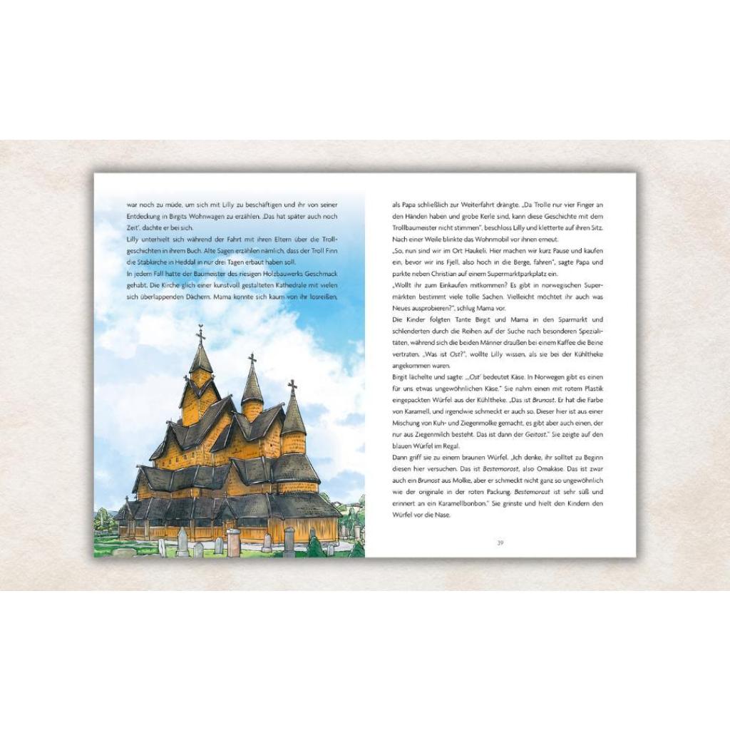 Auf ins Land der Trolle! Lilly und Nikolas begeben sich auf einen Roadtrip durch Norwegen. Mit einem Wohnmobil reisen sie durch den Süden und Südwesten des Landes. Mit dabei sind neben Mama und Papa auch Großtante Birgit und deren Sohn Christian. Gemeinsam besuchen sie einzigartige Orte und tauchen mit allen Sinnen in die wilde Natur Norwegens ein. Sie entdecken Fjorde, Fjells und wundervolle Küstenlandschaften. Doch Birgit verhält sich zunehmend geheimnisvoller. Was versucht sie vor ihrer Familie zu verbergen? Nikolas und Lilly beschließen, der Sache auf den Grund zu gehen. Ein Norwegensommer mit Abenteuern, großartigen Aussichten und einem gut gehüteten Geheimnis. Ferienabenteuer für Kinder und Reiseführer für Familien: die Kinderbuch-Serie "Lilly und Nikolas" Wenn die Geschwister Lilly und Nikolas mit ihren Eltern in den Urlaub fahren, erleben sie die schönsten Abenteuer, staunen über Dinge aus vergangenen Tagen, lösen Rätsel und manchmal auch einen kleinen Kriminalfall. Dabei entdecken sie jedes Mal Sehenswürdigkeiten und Ausflugsziele, die Kindern wirklich Spaß machen. Auf ihren Touren erfahren sie so ganz nebenbei viel über Land und Leute und die Geschichte ihrer Urlaubsregion! - Feriengeschichte voller Spaß, Rätsel und Abenteuer für Kinder - Spannend und informativ: Urlaubslektüre und Reiseführer in einem Kinderbuch - Zum Selbstlesen oder zum gemeinsamen Lesen in der Familie - Die schönsten Urlaubsziele für Familien und Tipps für Ausflüge mit Kindern - Zoos, Freizeitparks und Museen, die Kinder begeistern - Geeignet für Buchvorstellungen und für die Leseförderung mit ANTOLIN - Kann auch im Heimat- und Sachunterricht in der Grundschule eingesetzt werden Ob Urlaub in Deutschland oder den Nachbarländern, ob Sommerferien am Meer oder Herbsturlaub in den Bergen: Diese Kinderbücher machen Lust, selbst die Koffer zu packen und loszuziehen!