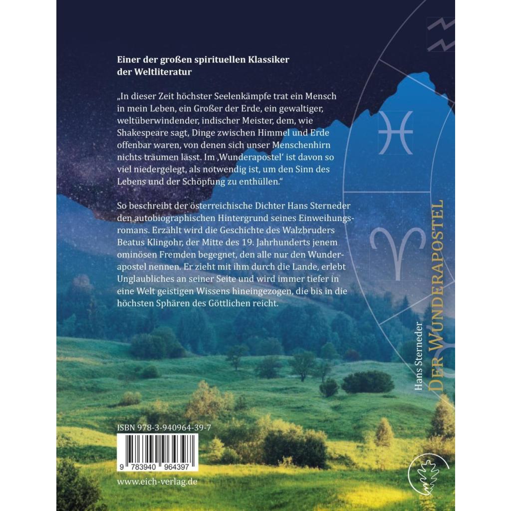 Lange und verzweifelt hat Beatus Klingohr jenen fremdländischen Mann gesucht, den alle nur den Wunderapostel nennen und von dem er selber sich Linderung seiner tiefen Seelenwunden erhofft. Nun hat er ihn endlich gefunden und zieht an seiner Seite über die Landstraßen des 19. Jahrhunderts. Und Beatus erlebt Unglaubliches. Der Wunderapostel ist ein Meister aus dem Fernen Osten und enthüllt ihm Schöpfungsgeheimnisse, die nur wenigen Eingeweihten bekannt sind. Beatus vergisst seinen Schmerz und erlebt Befreiung und Erlösung von aller Schwere und allem Leid. Für ihn beginnt ein neues Leben. "Der Wunderapostel" war Sterneders dritter Roman und die Fortsetzung seines Landstreicherromans "Der Sonnenbruder". Er machte ihn vom fabulierenden Schriftsteller zum spirituellen Dichter, zum großen Mystiker des 20. Jahrhunderts und zum Künder des bereits heraufziehenden Wassermann-Zeitalters. Hans Sterneder ist mit seinem Einweihungsroman vom "Wunderapostel" etwas Einmaliges gelungen: die Verschmelzung von hoher Literatur und tiefer Geistigkeit, die Einheit von Sprache und Erkennen. Nicht umsonst gilt er als Dichter des Menschheits-Urwissens.