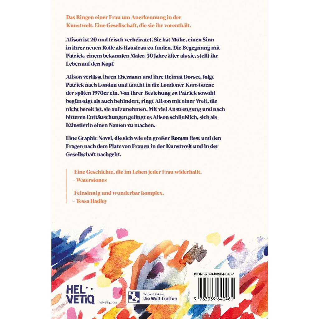 Alison Porter, 20 Jahre alt, hat gerade geheiratet. Ihre Tage sind fortan gefüllt mit Hausarbeit, gleichzeitig langweilt sie sich und fühlt sich einsam. Kurzerhand schreibt sie sich in einen von Patrick Kerr, einem berühmten Maler, organisierten Zeichenkurs ein. Alison verliebt sich in Patrick und verlässt ihren Ehemann und ihre Heimat Dorset, um Patrick nach London zu folgen. In London tut sich ihr eine unbekannte Welt auf. Von ihrer Beziehung zu Patrick sowohl begünstigt als auch behindert, beginnt sie eine Künstlerkarriere. Erst mit viel Anstrengung und nach vielen Enttäuschungen, gelingt es Alison, sich in der Kunstwelt einen Namen zu machen. Wie kann eine Frau es schaffen, in einer Welt, die von Männern dominiert wird, ihren Platz zu finden? Wie kann sie für ihre Kunst Anerkennung finden? Nach klassischem Muster aufgebaut, behandelt diese Graphic Novel, die sich wie ein Roman liest, solche großen Fragen. Mit feinen Pinselstrichen zeichnet Lizzy Stewart das Porträt der Londoner Kunstszene zu Ende des 20. Jahrhunderts und sinnt dabei über die Position von Frauen in der Kunst und der Gesellschaft. Mit seinen eingängigen Figuren sowie der lebendigen und fesselnden Atmosphäre wird Alison nicht nur Leserinnen und Leser von Sally Rooney und Alice Munro begeistern.