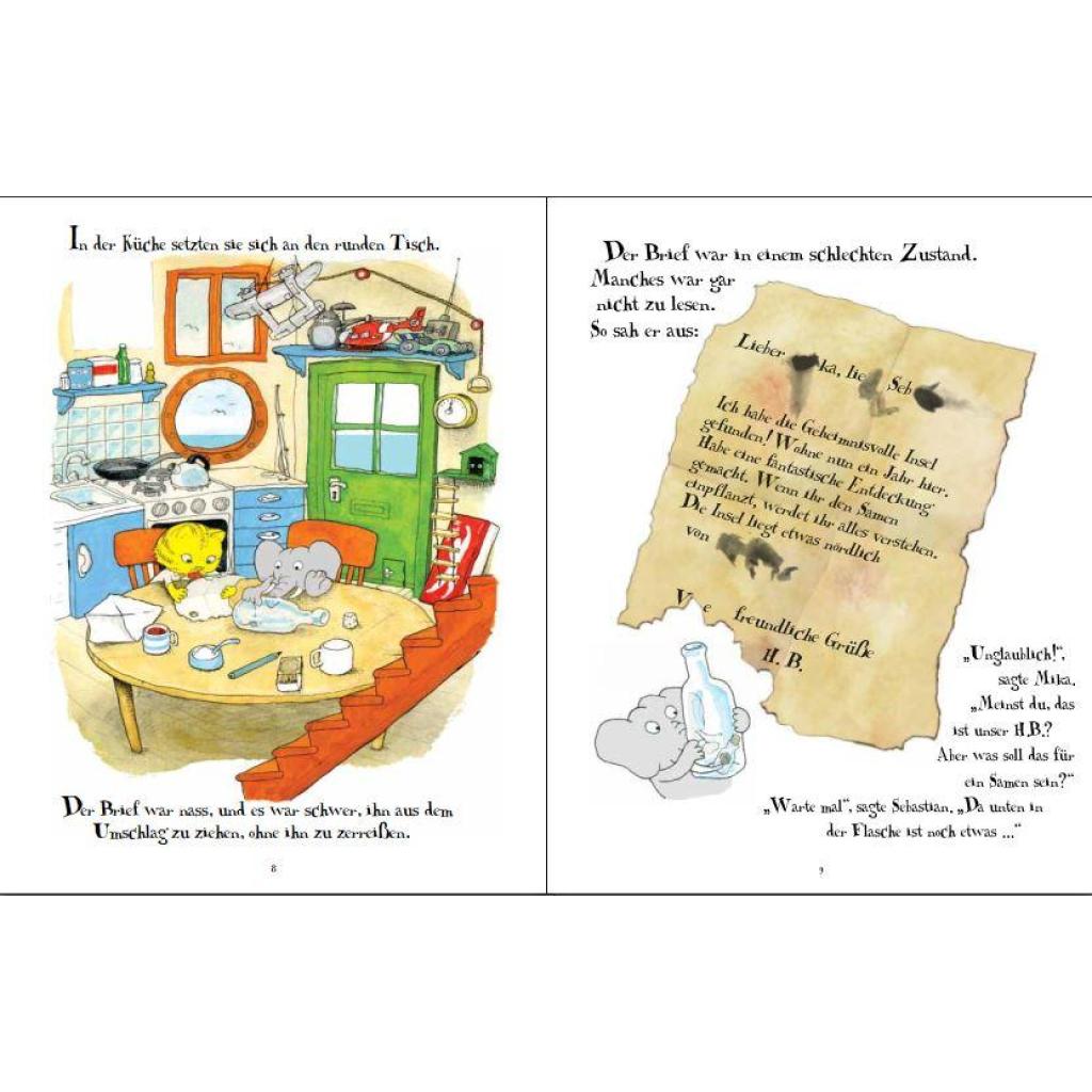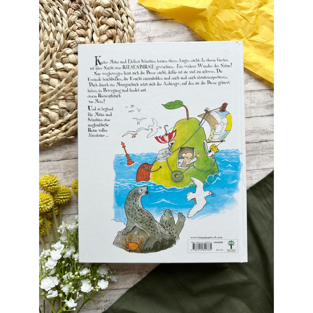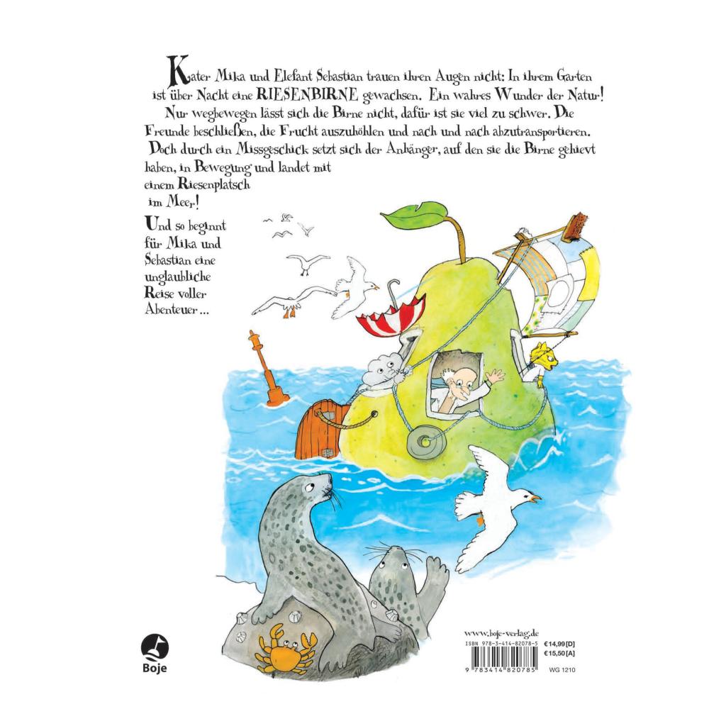 Beim Angeln finden Kater Mika und Elefant Sebastian eine Flaschenpost mit einem geheimnisvollen Samenkorn darin. Sie pflanzen ihn ein und über Nacht wächst daraus eine gigantische Riesenbirne, die sich auf ihrem Grundstück breitmacht. Ein Wunder der Natur, mit dem ein rasantes Abenteuer nimmt seinen Lauf nimmt. Nur wegbewegen lässt sich die Birne nicht - so schwer, wie sie ist. Auch Professor Glykose befasst sich mit der Sache und kurzerhand wird beschlossen, die Frucht auszuhöhlen und nach und nach abzutransportieren. Doch durch ein Missgeschick setzt sich der Anhänger, auf den die Freunde die ausgehöhlte Birne gehievt haben, in Bewegung und rumpelt mit viel Getöse den Berg hinab. Mit einem Riesenplatsch landet sie im Meer! Dort treibt die Birne samt Mika, Sebastian und Professor Glykose an Bord einer abenteuerlichen Reise entgegen ...