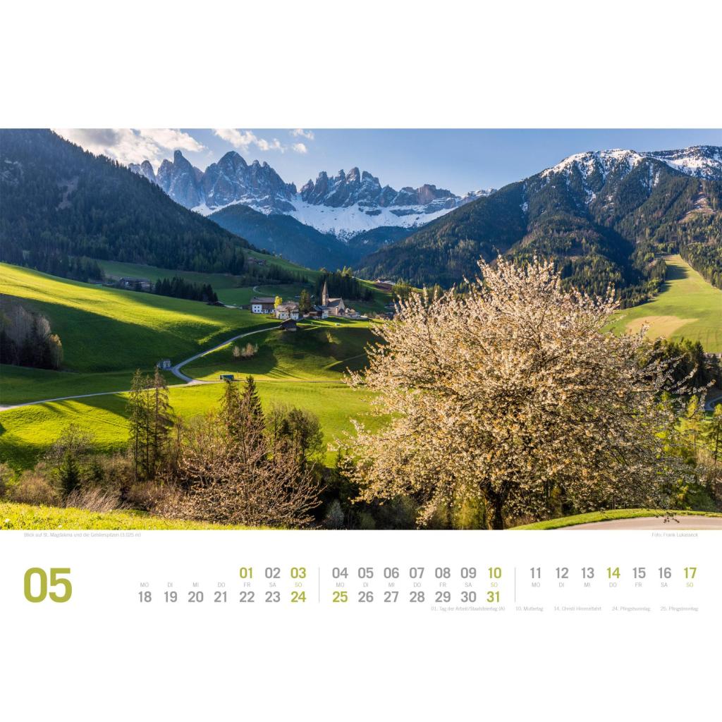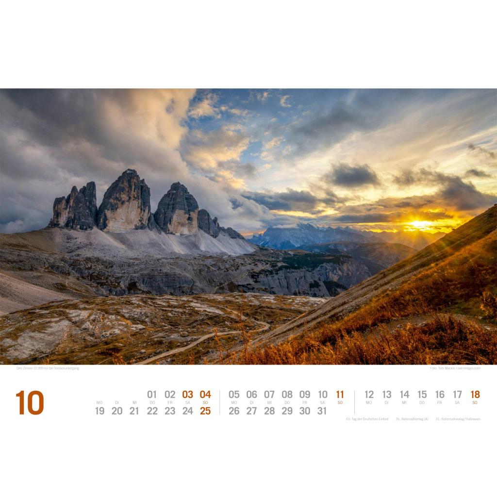Stilvoller Berge-Kalender im Querformat (45x33 cm) | Dolomiten, Italien, Alpen