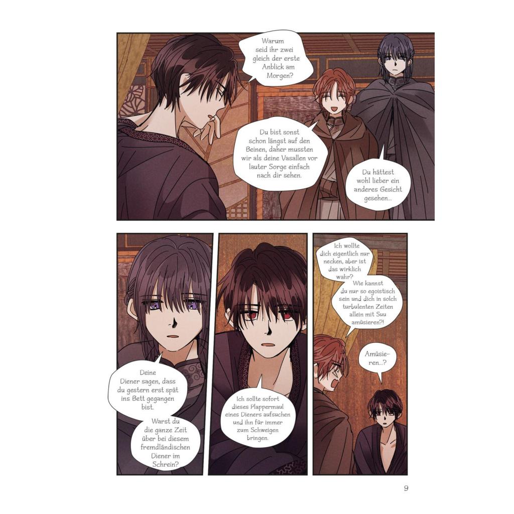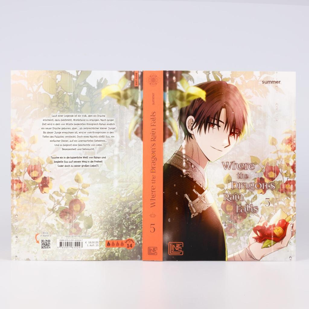 Ein verborgenes Kind und das Schicksal eines Königreichs Laut einer Legende ist ein Volk, dem ein Drache erscheint, dazu bestimmt, Wohlstand zu erlangen. Nach langer Zeit wird in dem von Wüste bedeckten Königreich Rahan endlich ein neuer Drache geboren, aber... als zerbrechlicher kleiner Junge! Bis dieser Junge erwachsen ist, wird er vom Kronprinzen in den Tiefen des Palastes versteckt. Doch eines Nachts stößt Suu, ein einfacher Diener, auf ein unerwartetes Geheimnis... Und so beginnt eine Geschichte von Liebe, Besessenheit und Sehnsucht. Koreanischer Webtoon-Manga in Farbe und westlicher Leserichtung Abgeschlossen in 10 Bänden Spice-Level: 1 von 4 Flammen. Erotik spielt in diesem Boys-Love-Titel eine kleinere Rolle. Ideal für Einsteiger*innen Mit exklusiver Photocard in der 1. Auflage, nur solange der Vorrat reicht! Eine packende Geschichte über die kaiserliche Welt von Rahan und Suus Weg in die Freiheit (oder doch zu seiner großen Liebe?)