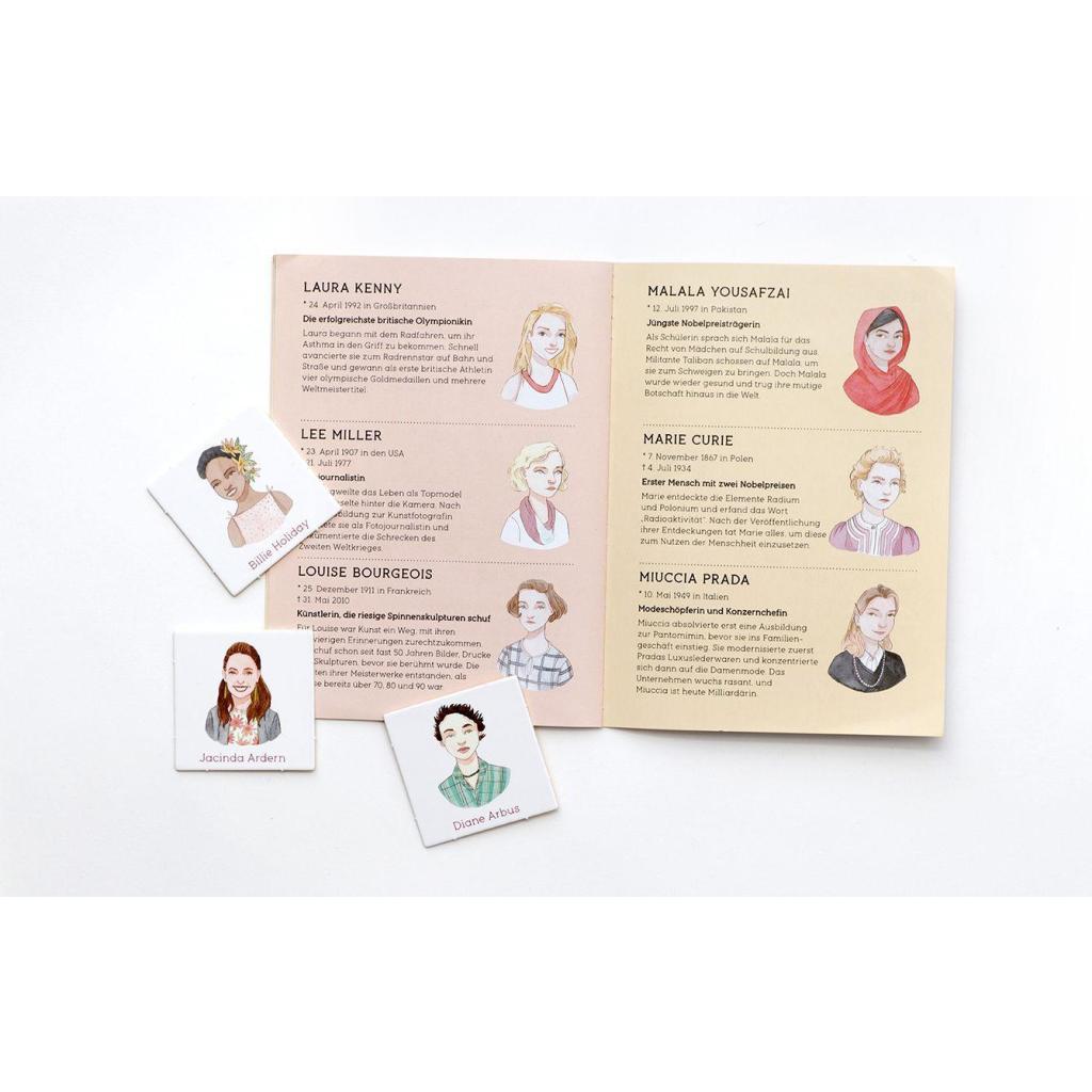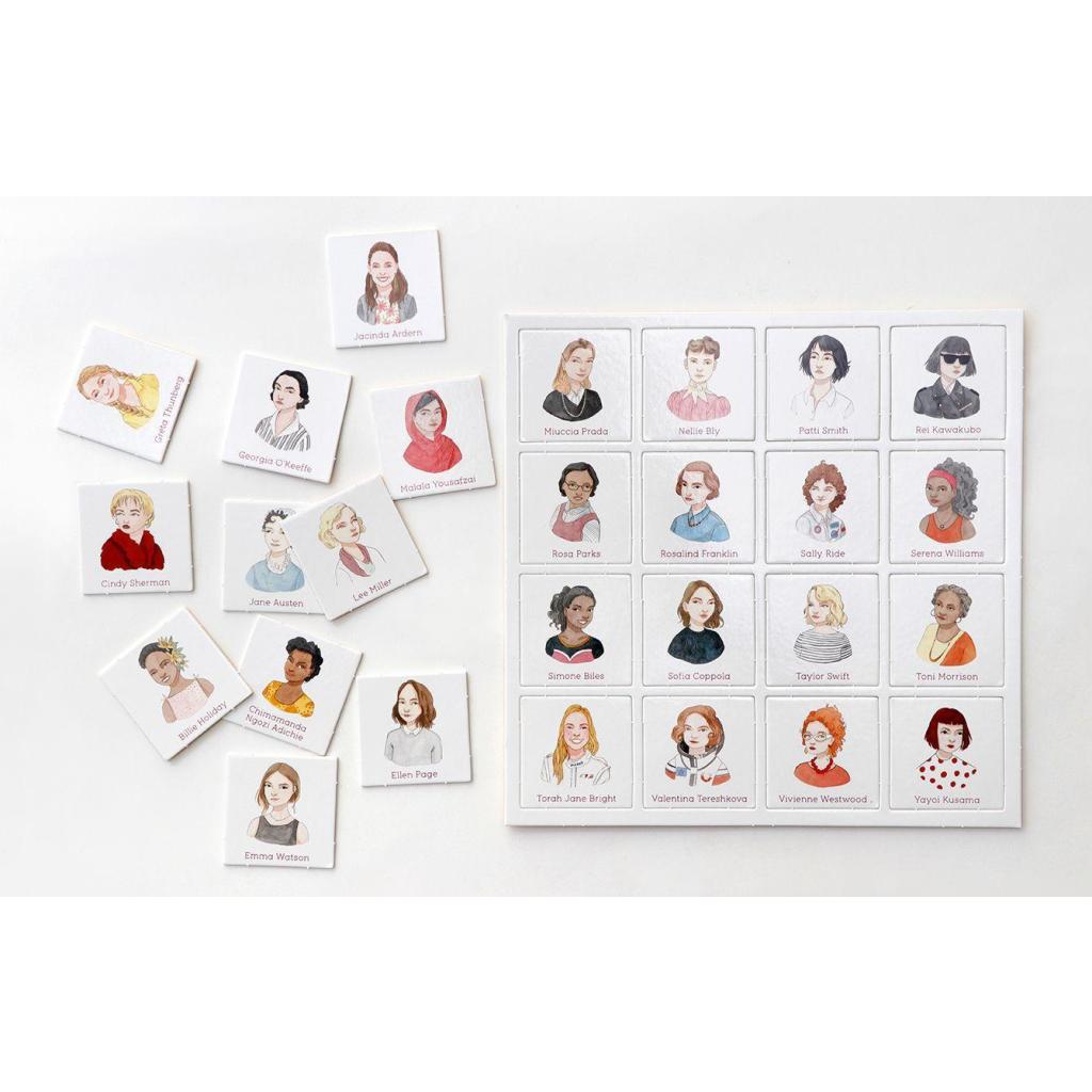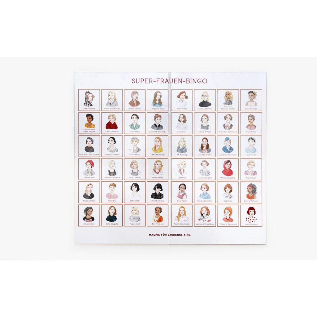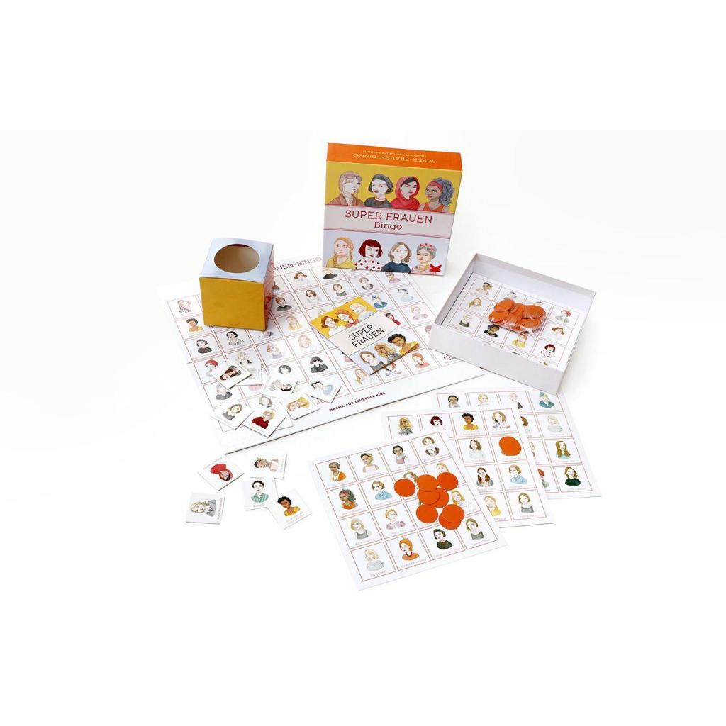 Mit diesem unterhaltsamen Spiel aus unserer Reihe der Kinder-Bingos kann die ganze Familie ihre Bingo-Karten mit berühmten Frauen aus der ganzen Welt und der gesamten Menschheitsgeschichte füllen! So lernen nicht nur die Kleinen etwas über die Frauen, die unsere Wissenschaften, unsere Kunst oder unsere Sportgeschichte vorangebracht haben! Enthält 48 illustrierte Spielkärtchen, ein Spielbrett, acht doppelseitige Bingo-Karten, Zähler zum Markieren Ihrer Karte und ein illustriertes Heft mit kurzen Biografien zu jeder Superfrau.