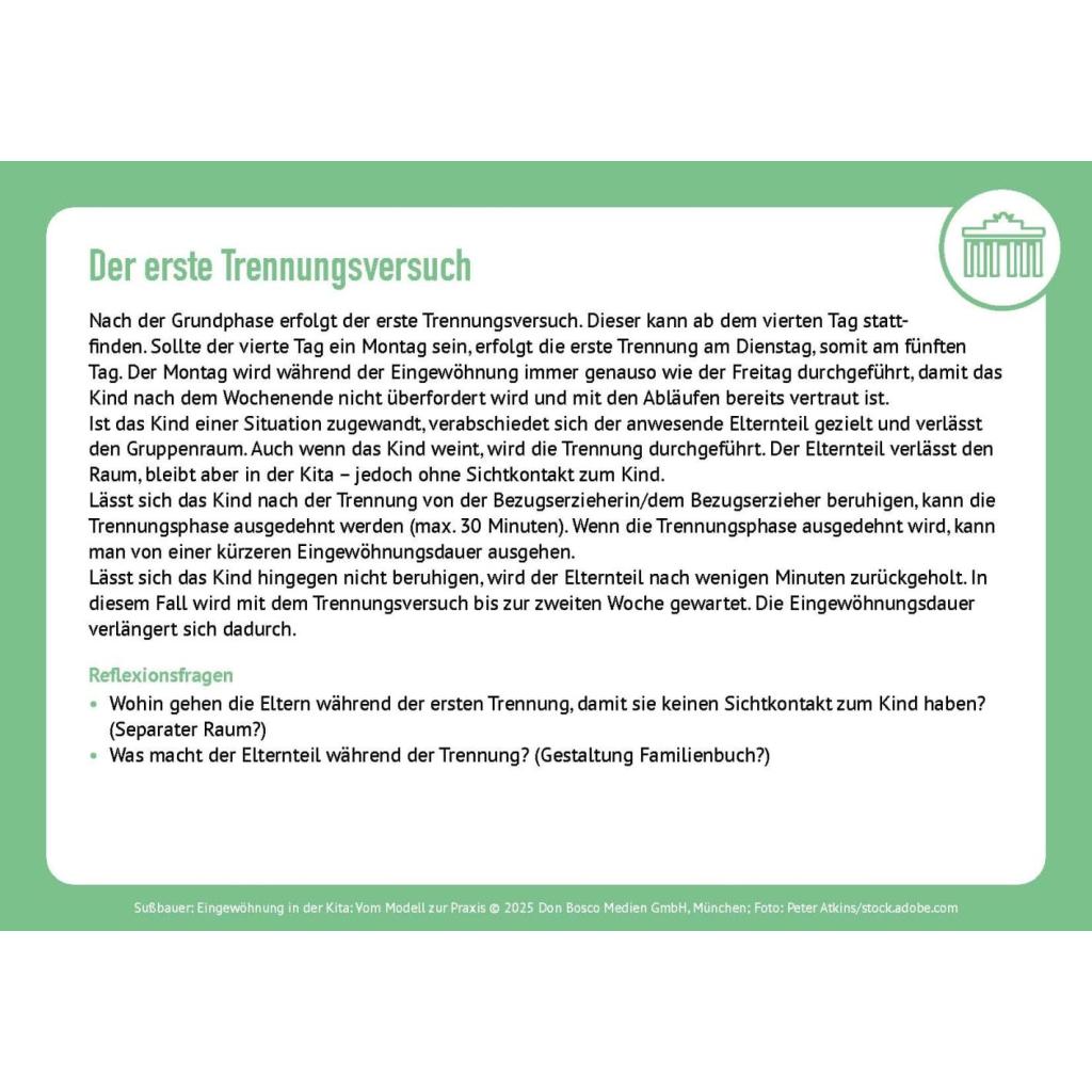 Für pädagogische Fachkräfte, Kita-Teams und Elternarbeit. 46 Methodenkarten mit Basisinformationen und Reflexionsfragen zur Eingewöhnungsphase
