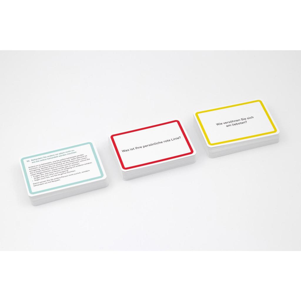 | Keyword: | Coaching; Konfliktfähigkeit; Selbstreflexion; Streit; Mediation; Beratung; Supervision; Training; Teamentwicklung; Konflikt; Kartenset; Eskalation; Konfliktpartei; Auseinandersetzung; Meinungsverschiedenheit; Führungsverhalten; Kommunikation; Sozialer Konflikt; Sachkonflikt; Verteilungskonflikt; Machtkonflikt; Spielkarten; Deeskalation |