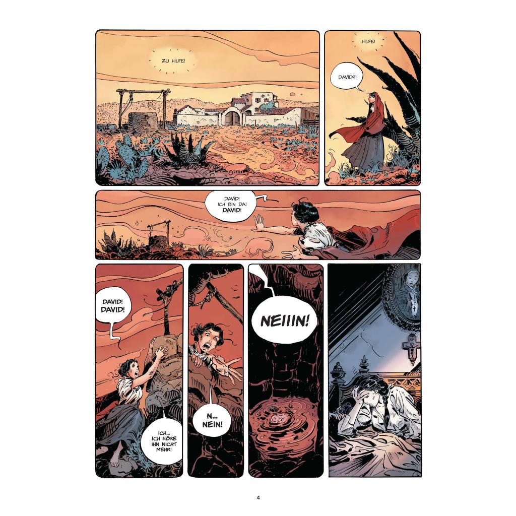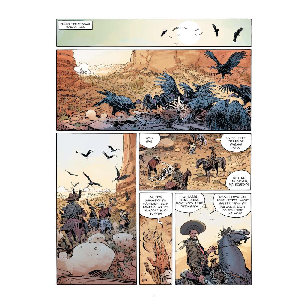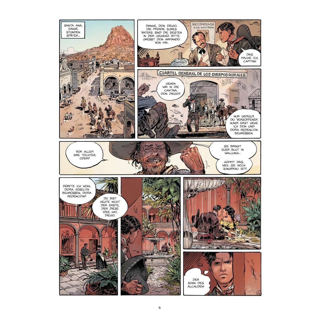 Mexiko, Staat Sonora im Jahr 1863. Oft ist Blut das Einzige, was den Boden dieses trockenen, von Gewalt und Kriminalität verseuchten Landstrichs benetzt. Doch die Hacendados, Besitzer der großen Landgüter und Nachfahren stolzer Konquistadoren, folgen allen Widrigkeiten zum Trotz ihren Vorstellungen von Ehre und Gerechtigkeit. Männer wie Don Armando gehen dabei wenn nötig sogar so weit, ihren eigenen Sohn zu verstoßen und zum sicheren Tod zu verurteilen. Und so findet sich der junge Don Diego als Angeklagter eines Mordes inmitten der Sonora-Wüste wieder, ausgeliefert sowohl der Wildheit ihrer Tiere als auch der Bestialität der Menschen, die dort leben. Nur seine Mutter Doña Maria glaubt an Diegos Unschuld und wird alles tun, um ihn zu retten. Philippe Thirault kehrt in diesem dicht erzählten, brutalen Western das Schlimmste im Menschen nach außen. 'Hacendado' kennt keine Helden. Und die Wenigen, die versuchen, dem Pfad der Rechtschaffenheit zu folgen, zahlen dafür einen hohen Preis.