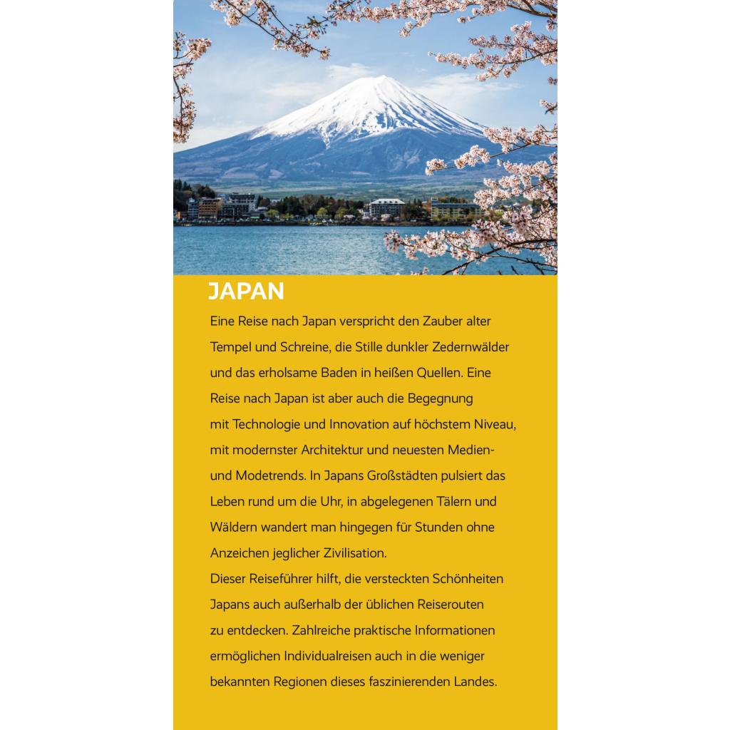| Keyword: | Asien; City-Trip; Empfehlungen; Fernost; Fernreise; Fuji; Fukuoka; Fukushima; Hiroshima; Hokkaido; Honshu; Japan; Japanischer Garten; Japanisches Meer; Japanreise; Kanto; Kirschblüte; Kobe; Kulturreise; Kyushu; Nagasaki; Okinawa; Osaka; Reisetipps; Reisevorbereitung; Sapporo; Sehenswürdigkeiten; Shinkansen; Shinto; Studienreise; Tokio; Trescher Verlag; Trescher-Reiseführer; Urlaub; Yakushima; Yokohama; Zen Buddhismus; japanisch |