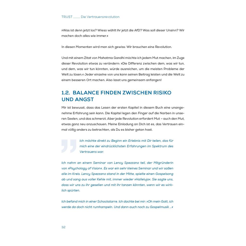 Transformiere Dein Leben mit Vertrauen: Erfahre, wie Du die tief verwurzelten Urängste überwindest und durch Vertrauen auf persönlicher, beruflicher und gesellschaftlicher Ebene Erfüllung findest. ¿ Vertrauen als Schlüssel für Erfolg: Entdecke, wie Unternehmen florieren, wenn Vertrauen als Grundpfeiler etabliert wird, und wie Du durch Selbstvertrauen beruflichen Erfolg erreichen kannst. ¿ Tiefere Verbindungen schaffen: Lerne, wie Vertrauen in Familien und Partnerschaften tiefe, erfüllende Verbindungen schafft und zu harmonischen Beziehungen beiträgt. ¿ Spannende Einblicke für eine unsichere Welt: Dieses Buch zeigt klare Wege, wie Vertrauen in Institutionen, Unternehmen und persönliche Beziehungen wiederhergestellt werden kann - ideal für alle, die Antworten in Zeiten der Instabilität suchen. ¿ Buch günstig online bestellen: Trust - Die Vertrauensrevolution - jetzt als Amazon Bestseller günstig bestellen, auf Rechnung.