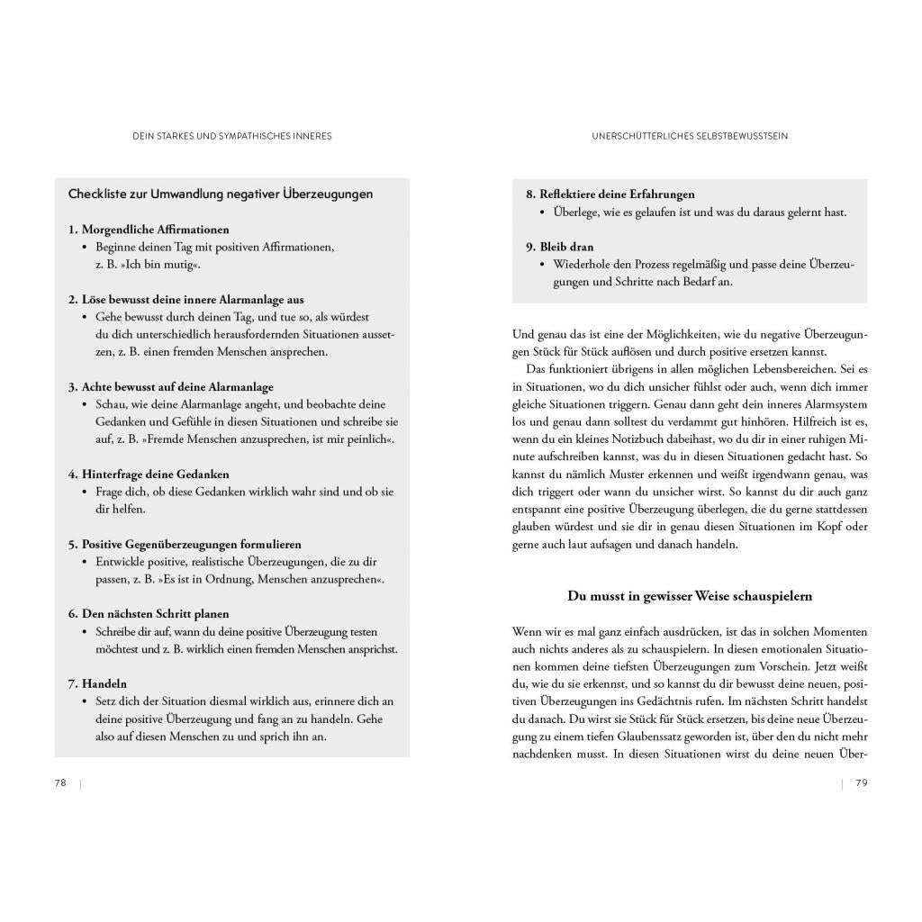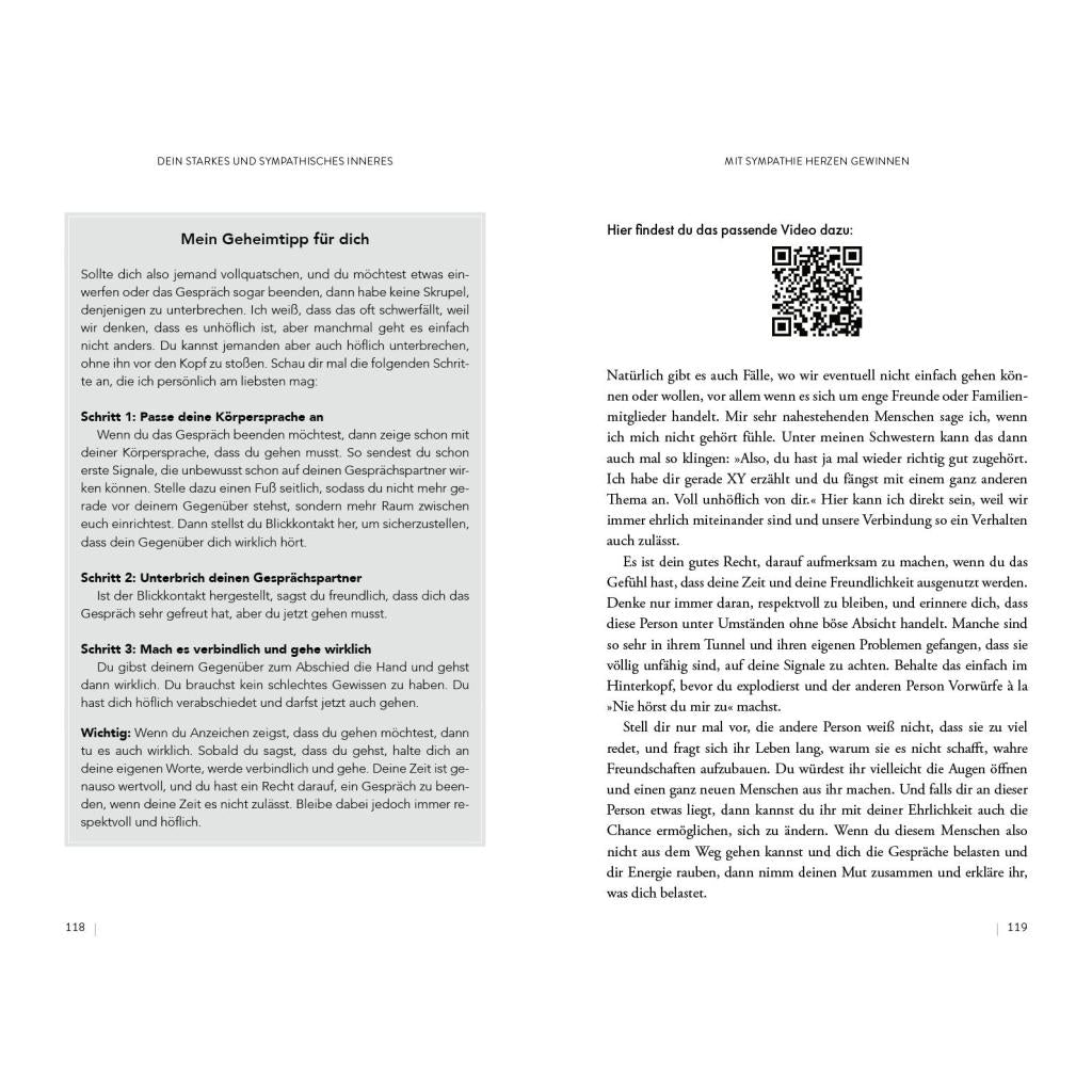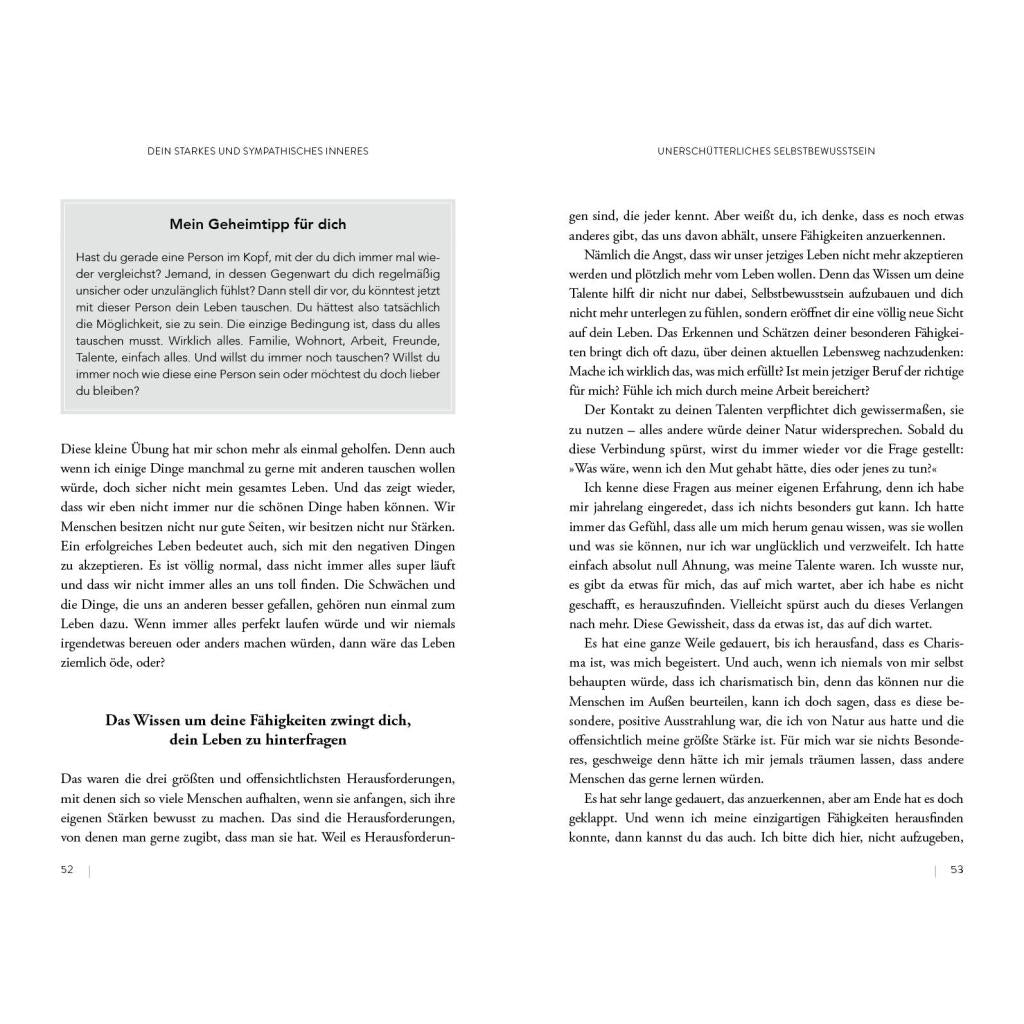 | Keyword: | Auftritt; Ausstrahlung; Beziehungen; Charme; Kommunikation; Körpersprache; Mimik; Persönlichkeit; Rhetorik; Schlagfertigkeit; Selbstliebe; Selbstsicherheit; Small Talk; Stimme; Sympathie; Wahrnehmung; Wirkung; erster Eindruck; negative Gedanken; selbstbestimmt leben |