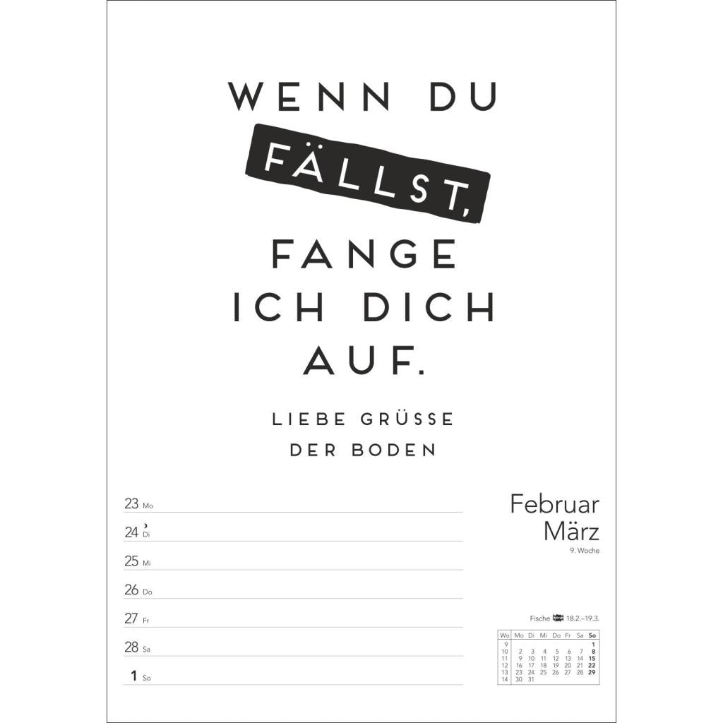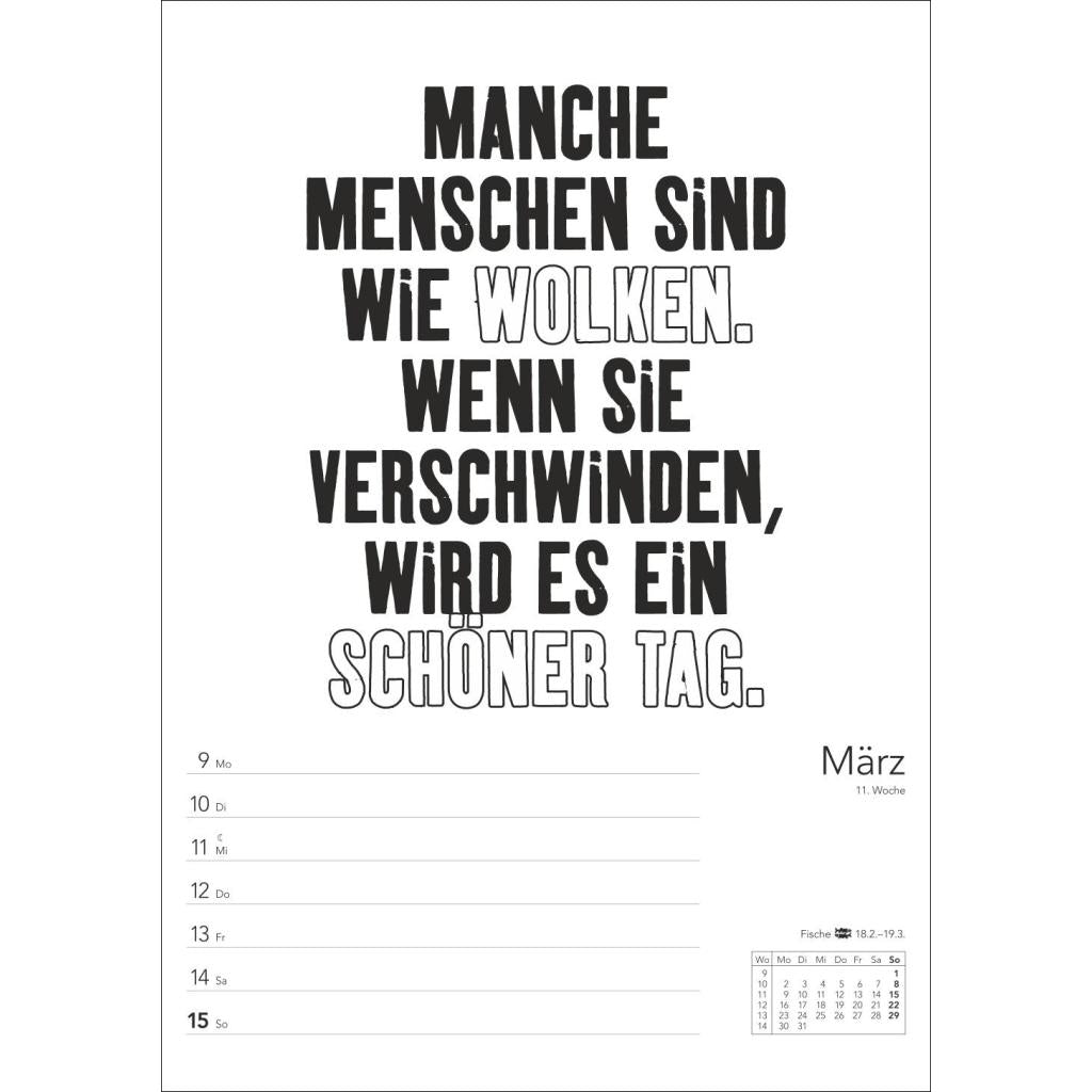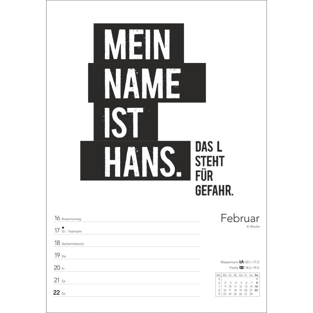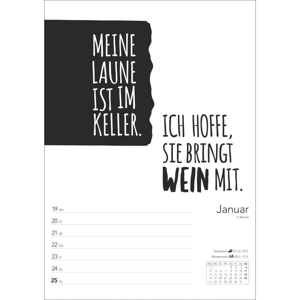 Praktischer Terminkalender zum Aufhängen mit coolen Sprüchen. Wochenkalender 2026 in schwarz-weiß gestaltet