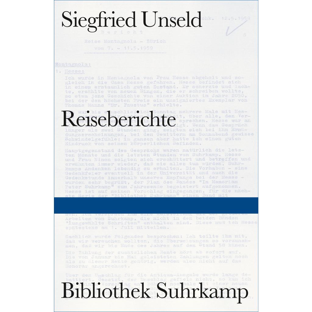 Am 1. April 1959 übernimmt Siegfried Unseld die Leitung des Suhrkamp Verlags. 10 Tage später reist er nach Ost-Berlin, besucht Brechts Witwe Helene Weigel. Zurückgekehrt diktiert er einen von ihm selbst so genannten Reisebericht, in dem er die für ihn und seine Mitarbeiter wichtigen Resultate seiner Gespräche festhält. Annähernd 1000 Reiseberichte hat Siegfried Unseld bis zu seinem Tod 2002 verfaßt. Die hier in Auswahl zum ersten Mal publizierten Berichte bieten die einmalige Gelegenheit, den Aufbau des Suhrkamp Verlags aus der Sicht des Verlegers zu verfolgen. Sie dokumentieren die Begegnungen zwischen Verleger und den für die zweite Hälfte des 20. Jahrhunderts wichtigen deutschen und internationalen Autoren mal dramatisch, mal entspannt urlaubend, mal kämpferisch, mit Samuel Beckett in Paris, mit Peter Handke in New York, mit Thomas Bernhard in Kairo. Sie erlauben dem Leser einen Blick hinter die Kulissen des literarischen Lebens. Kurz: Diese Reiseberichte sind spannende Reportagen aus dem Gebiet von einem ihrer wirkungsmächtigsten Akteure.