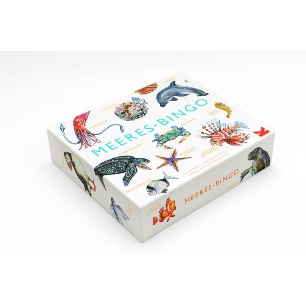 Umweltbewusstsein bereits zu Hause schaffen! Ein interaktives Spiel für die ganze Familie mit 64 verschiedenen Meeresbewohnern Wunderschöne Tier-Illustrationen, Spielanleitung und wissenswerte Fakten Spielen Sie Bingo mit gigantischen Walen, faszinierenden Haien, tropischen Fischen und glibberigen Quallen. Dieses familienfreundliche Spiel steckt voller Meeresbewohner für jede Menge Bingo-Spaß. Neben bekannten Meerestieren gibt es auch seltene, ungewöhnliche Wesen zu entdecken - zum Beispiel die gelbe Plättchenseeschlange oder den biolumineszenten Kraken. Das Meeres-Bingo bietet 64 seltsame, wundervolle und wunderschöne Tierarten und steckt voller erstaunlicher Fakten und prächtiger Illustrationen, die Meeresliebhaber begeistern werden.