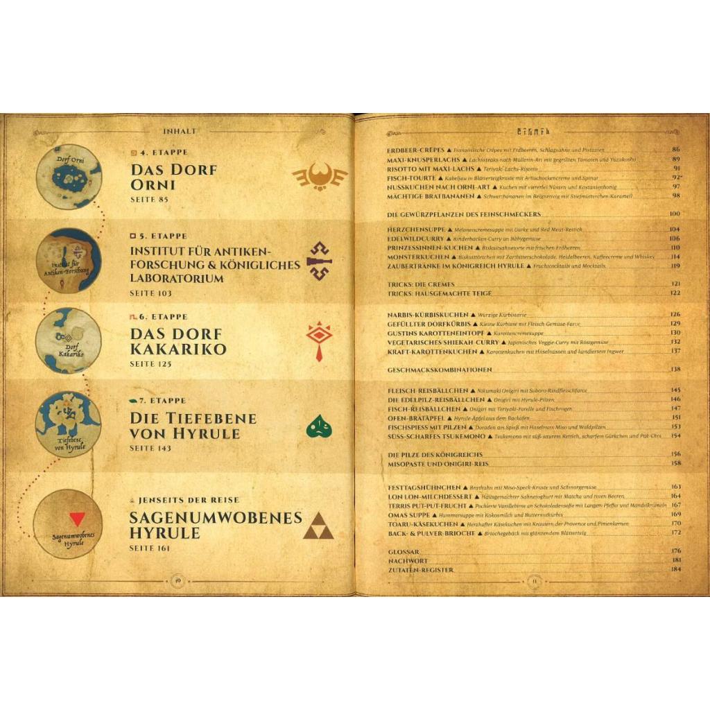 WERDET ZU FEINSCHMECKERN UND TAUCHT EIN IN DIE KULINARISCHE WELT VON HYRULE! Entdeckt 50 Rezepte für alle Geschmäcker, inspiriert von Breath of the Wild und dem Rest der Zelda-Saga! Inklusive Zutatenregister, Küchenlexikon und etlicher hilfreicher Kochtipps! ¿ Gefüllter Dorfkürbis ¿ Herzchensuppe ¿ Marinierter Fisch ¿ Edelwild-Reis ¿ Nusskuchen nach Orni-Art