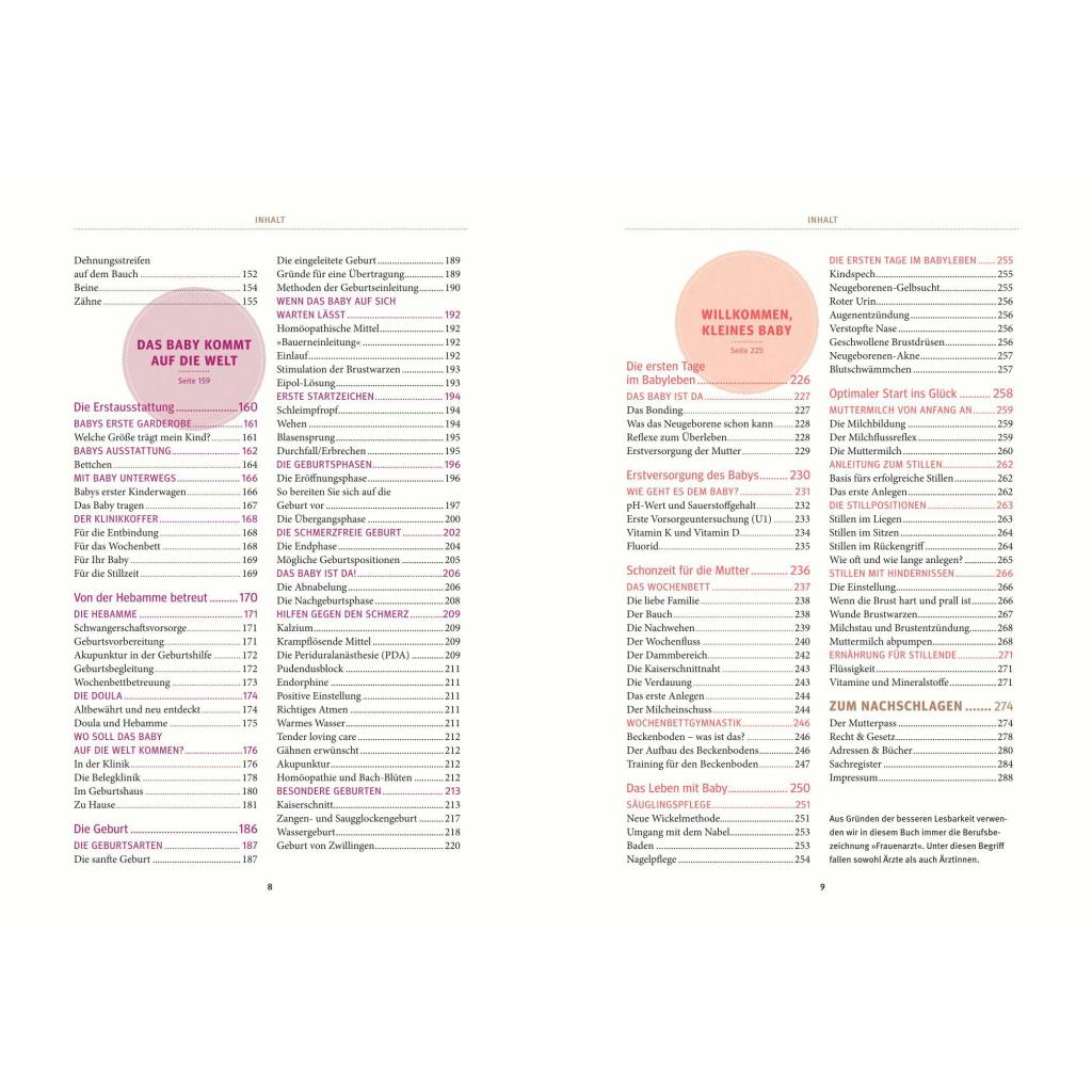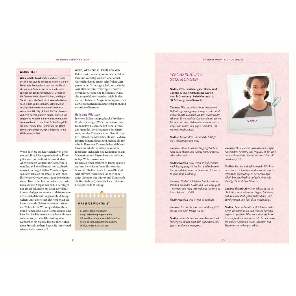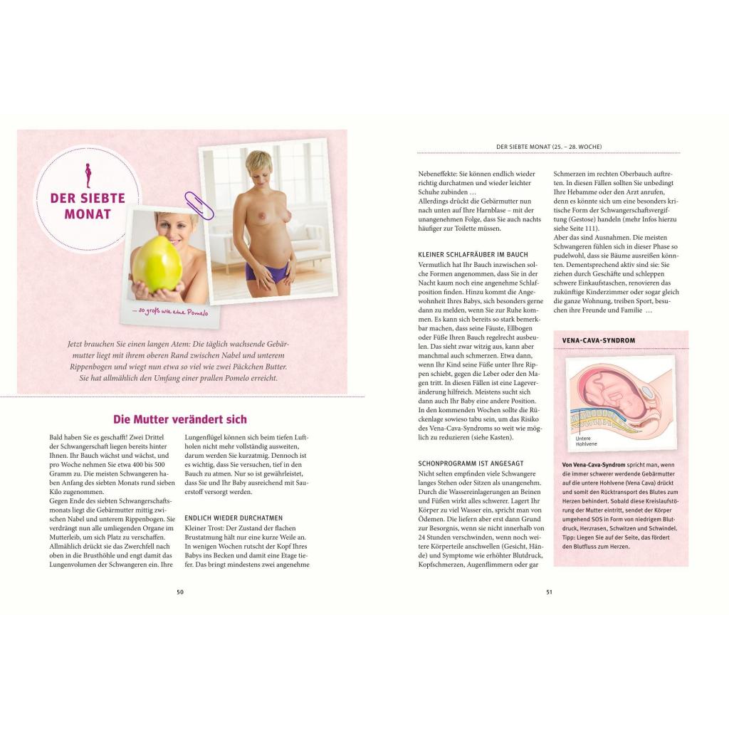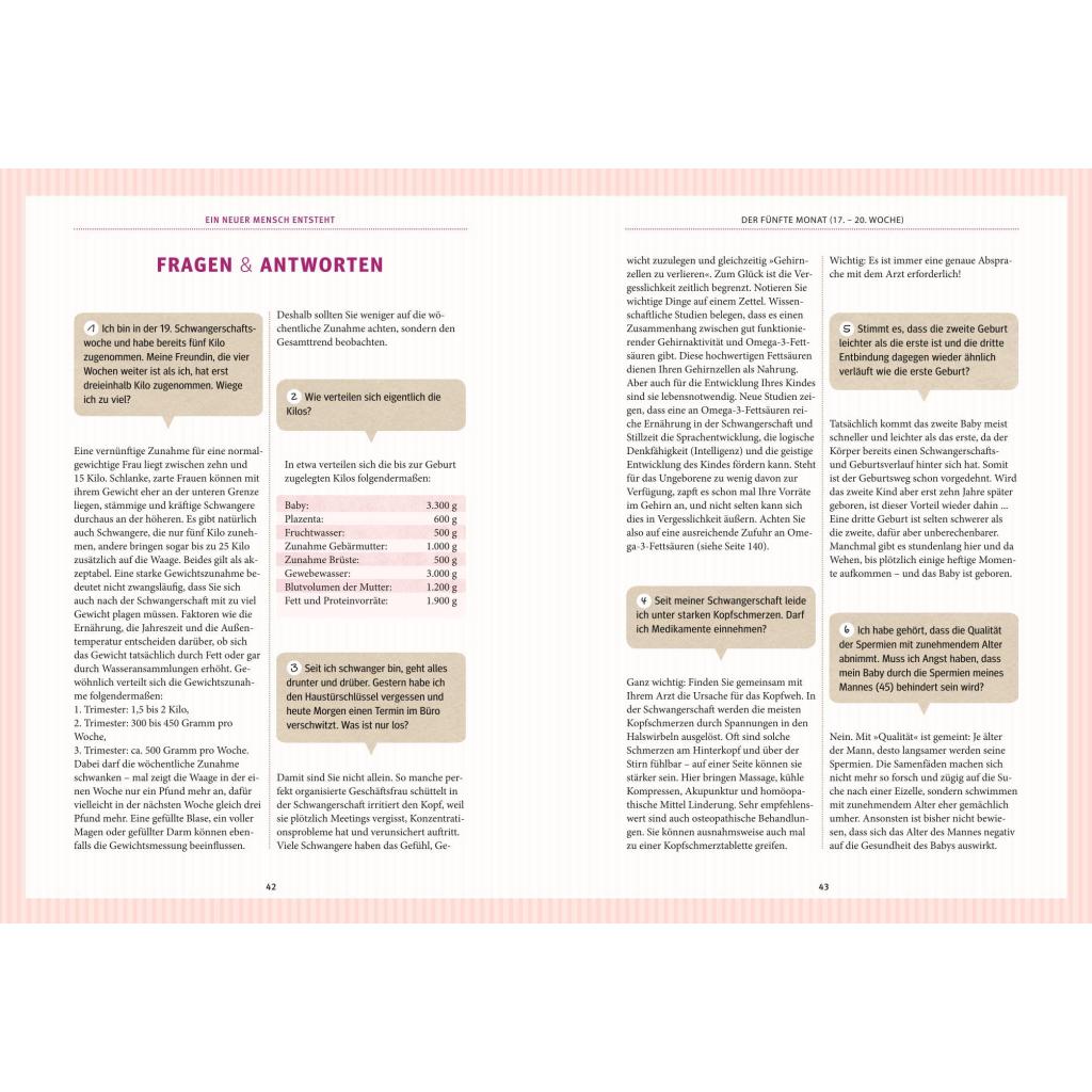 In der Schwangerschaft gibt es viele Fragen rund um 9 spannende Monate, die Geburt und die ersten Tage mit dem Baby. Dieses umfassendes und einfühlsame Nachschlagewerk informiert Monat für Monat über die Besonderheiten der jeweiligen Schwangerschaftsphase und beschreibt die Veränderungen im Körper der Mutter. Es begleitet mit vielen Bildern der neuesten bildgebenden Verfahren Monat für Monate die faszinierende Entwicklung des Babys im Mutterleib. Wie ernährt man sich in der Schwangerschaft gesund, was hilft gegen Übelkeit, was ist eine Fruchtwasseruntersuchung? Dieser Ratgeber gibt Antworten und bietet wichtige, alltagspraktische Tipps, die jede werdende Mutter für eine gesunde Schwangerschaft benötigt. Auch Geburt, Wochenbett und die ersten Wochen mit dem Baby werden beschrieben. Entspannende Yogaübungen für Schwangerschaft und Geburtsvorbereitung, Erlebnisberichte von besonderen Müttern und Vätern sowie Sonderseiten mit den wichtigsten Fragen und Antworten runden jedes Thema ab.