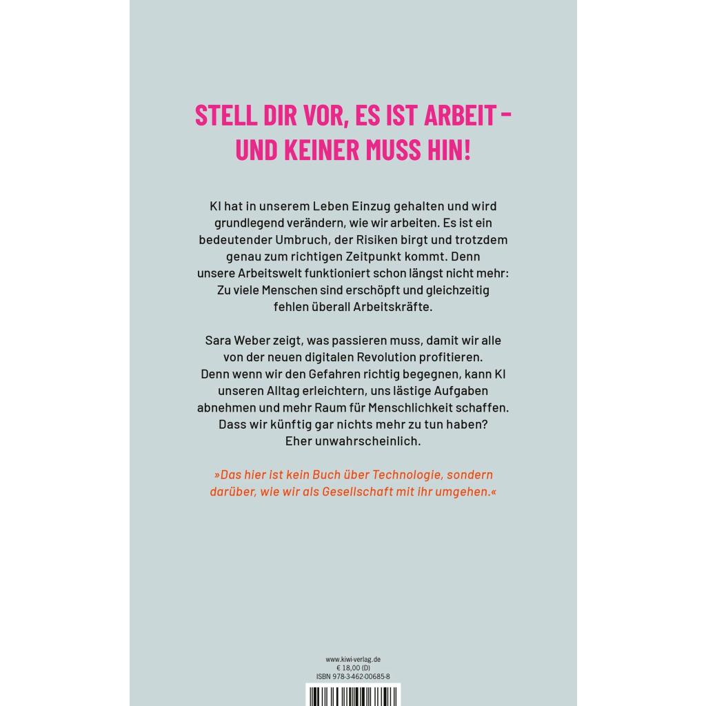 | Keyword: | 40-Stunden-Woche; Arbeitskräftemangel; Arbeitsmarkt; Arbeitsmodelle; Arbeitsweise; Arbeitswelt; Arbeitswelt von morgen; Digitalisierung; Erschöpfung; Homeoffice; KI; KI als Werkzeug.; Kündigung; Künstliche Intelligenz; Large Language Model; Neues Arbeitszeitalter; Optimierung; Positive Veränderung; Sabbatical; Soziale Gerechtigkeit; Work-Life-Balance; Zukunft; chatGPT |