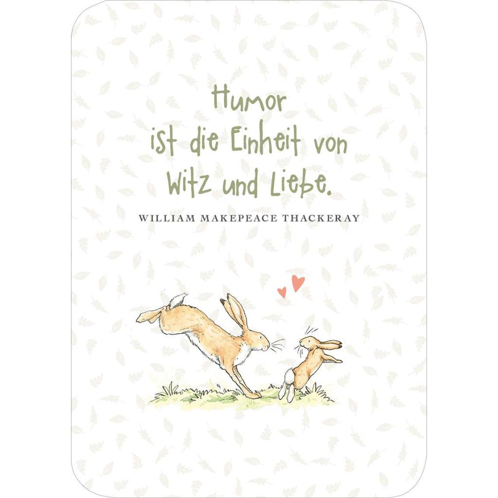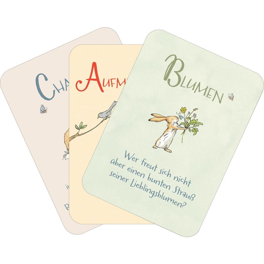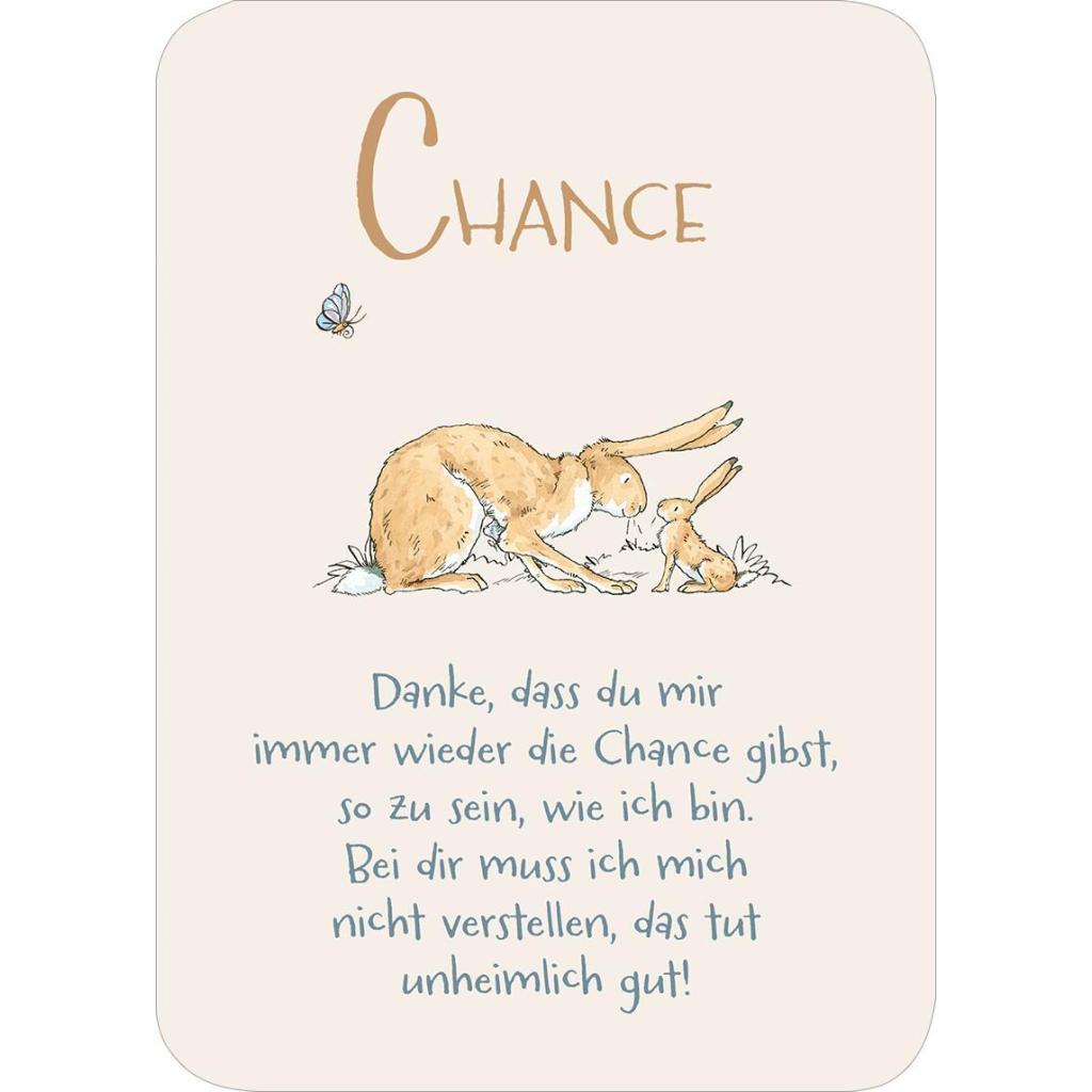 Weißt du eigentlich, wie lieb ich dich hab? Das ABC der Liebe auf 50 Karten Mit dieser bezaubernden Kartenbox kannst du deinen Herzensmenschen zeigen, wie sehr du sie magst und schätzt. Auf 50 Kärtchen finden sich kleine Liebeserklärungen, Zitate und Anregungen von A wie "Aufmerksamkeit" bis Z wie "Zuneigung", um die Liebe immer wieder neu zu genießen und zu feiern. Die weltbekannten Hasen aus dem Klassiker von Sam McBratney und Anita Jeram bieten dabei den perfekten Rahmen. Die Kärtchen können an Lieblingsmenschen verschenkt werden und sind auch im Regal ein toller Blickfang. Als kleine Aufmerksamkeit für einen bestimmten Anlass oder einfach so, um sich immer wieder neu von der Liebe inspirieren zu lassen. Wertiges Geschenk: 50 Karten, Größe 10,5 x 14,7 cm, gut beschreibbar, in hochwertiger Aufbewahrungsbox mit Bändchen zum Aufziehen Bezaubernde Illustrationen: Die weltbekannten Hasen lassen jedes Herz höherschlagen Ein Hoch auf die Liebe: Ein herzerwärmendes Geschenk für den Partner, die Partnerin, die beste Freundin oder für sich selbst Perfektes Geschenk: Von A bis Z bringen liebevolle Texte mehr Inspiration in den Alltag Kleine Liebeserklärung Egal ob zum Valentinstag, Geburtstag, Jahrestag oder einfach nur so - die Kartenbox ist eine wunderschöne Möglichkeit, die Liebe, das Leben und den Lieblingsmenschen zu feiern!
