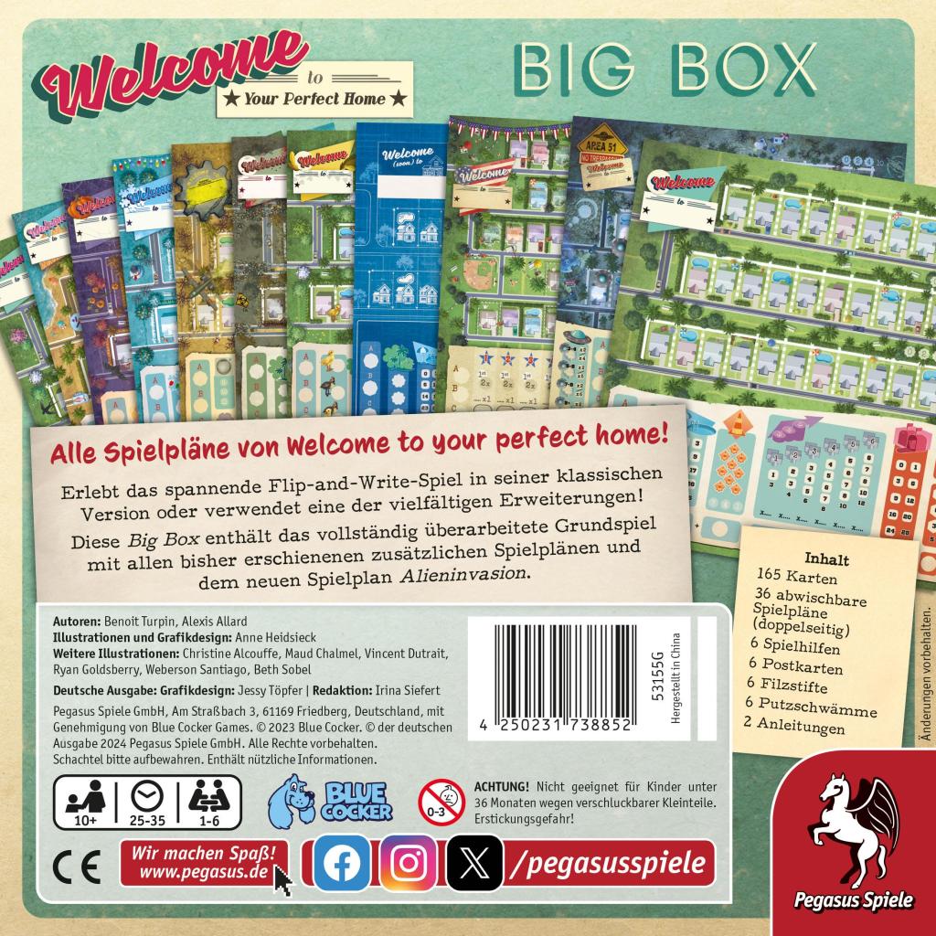 Alle Spielpläne von Welcome to you perfect home! Erlebt das spannende Flip-and-Write-Spiel in seiner klassischen Version oder verwendet eine der vielfältigen Erweiterungen! Diese Big Box enthält das vollständig überarbeitete Grundspiel mit allen bisher erschienenen zusätzlichen Spielplänen und dem neuen Spielplan Alieninvasion.