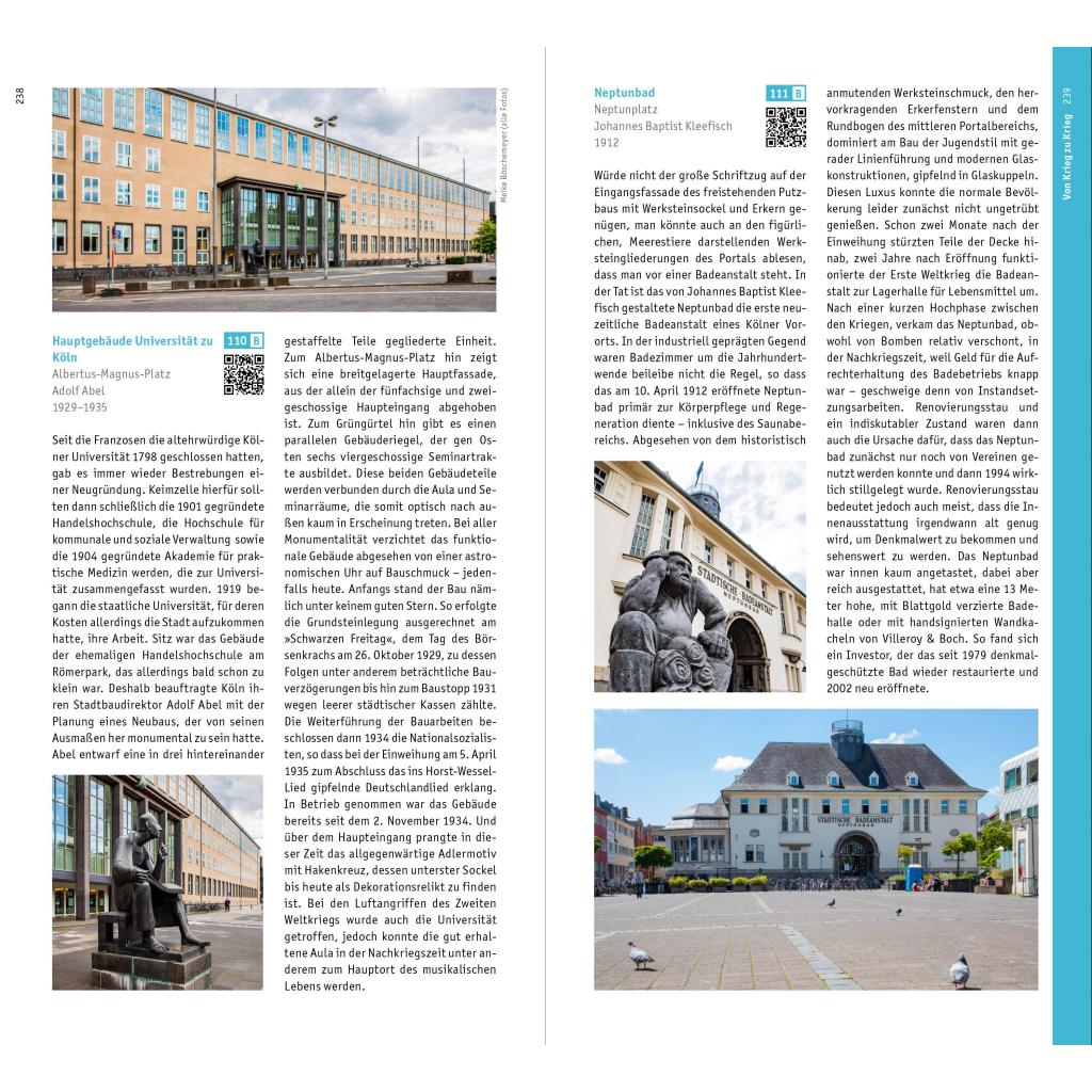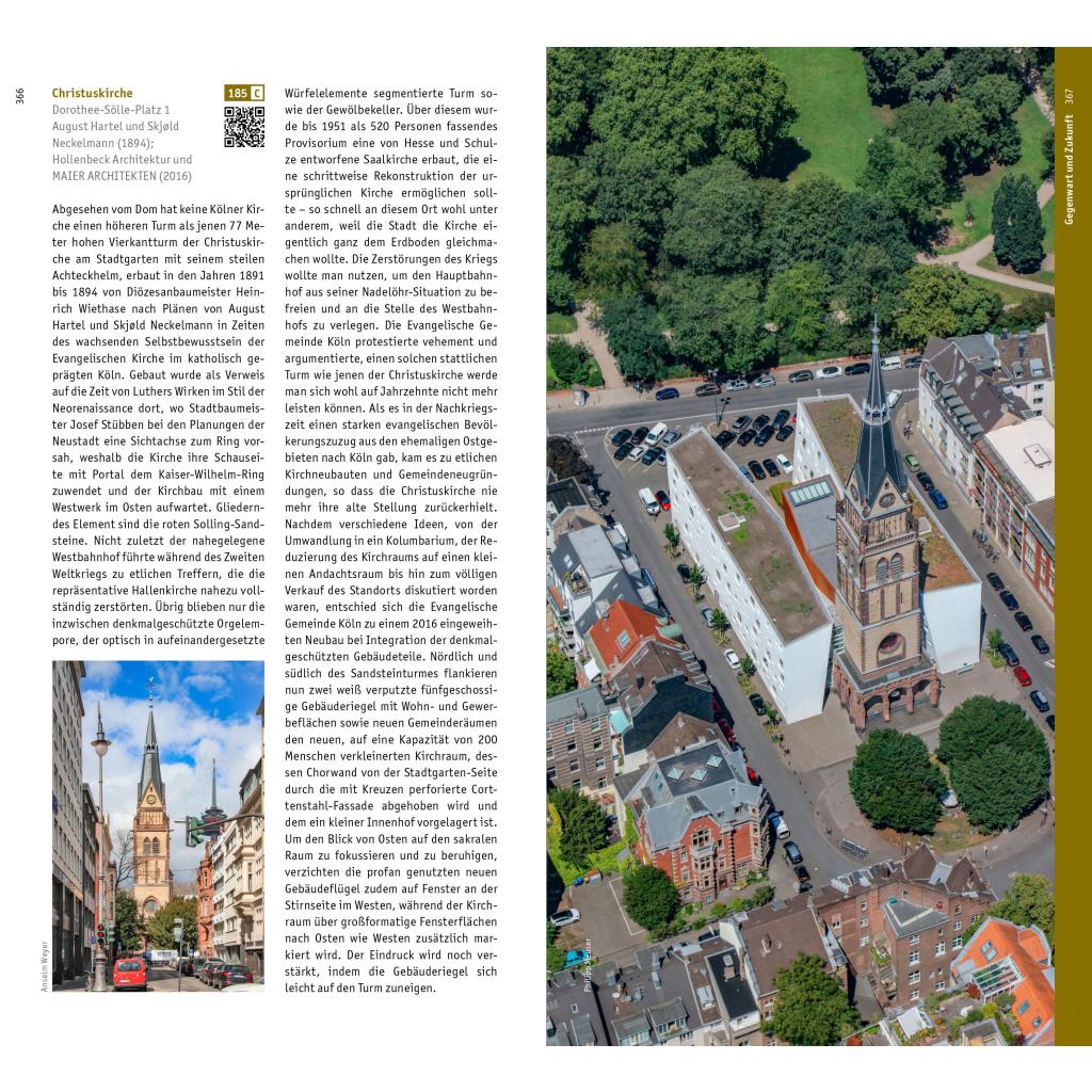 Keine andere deutsche Großstadt blickt auf eine solch reiche Architekturgeschichte zurück wie Köln. Entstanden ist am Rhein ein faszinierendes Stadtbild, das Resultat von Auseinandersetzungen zwischen Traditionen und immer neuen Modeströmungen ist. Der opulent bebilderte "Architekturführer Köln" erkundet nicht nur die Gestaltung und Geschichte von herausragenden Bauten, wie dem Kölner Dom, romanischen Kirchen oder diversen Ikonen der Moderne. Auch anhand oftmals vernachlässigter und übersehener Bautypen erläutert er exemplarisch die verschiedenen Phasen der Stadtentwicklung und Architekturhistorie, von den römischen Spuren des Oppidum Ubiorum über die mittelalterlichen Baudenkmäler der freien Reichsstadt bis hin zur Stadterweiterung der Gründerzeit und den Entwicklungen der Gegenwart.
