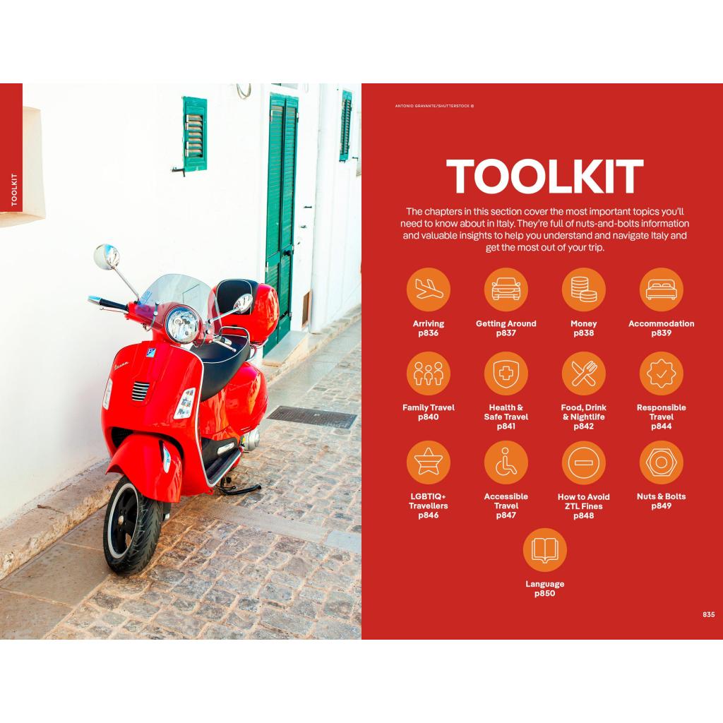 Lonely Planet's local travel experts reveal all you need to know to plan the trip of a lifetime in this latest edition of our guide to Italy. Discover Italy's most popular experiences and best kept secrets from standing face to face with world-famous Renaissance paintings at Florence's premier art museum, Galleria degli Uffizi; to eating mind-blowing gelato by Italy's 'gelato maker of the year' winner in Bologna; and experiencing the wild beauty of one of Sicily's most isolated golden-sand beaches. Build a trip to remember with Lonely Planet's Italy travel guide: Our classic guidDigital format contains the most comprehensive level of information for planning multi-week trips All-new structure and design that's easy to use so you can navigate Italy effortlessly Exciting itineraries help you create your perfect adventure with suggestions for extended journeys, day trips, walking tours and activity-led excursions Expert local recommendations on eating, drinking, nightlife, shopping, accommodation, festivals, when to go and more Vibrant photography and maps including a pull-out map of Italy Get fresh takes on must-visit sights from including Capitoline Museums, Via Appia Antica, Palazzo Pitti Essential information toolkit containing tips on arriving, transport, local etiquette, using money, LGBTIQ+ travel advice, useful words and phrases, accessibility and responsible travel Connect with Italian culture through stories that delve deep into local life, history and traditions Covers: Rome; Lazio & Abruzzo; Turin & Piedmont; Italian Riviera; Milan & the Lakes; Venice; The Dolomites & the Northeast; Bologna & Emilia-Romagna; Florence; Tuscany; Umbria & Le Marche; Naples & Campania; Puglia; Calabria & Basilicata; Sicily; Sardinia Create a trip that's uniquely yours and get to the heart of this extraordinary country with Lonely Planet's Italy .