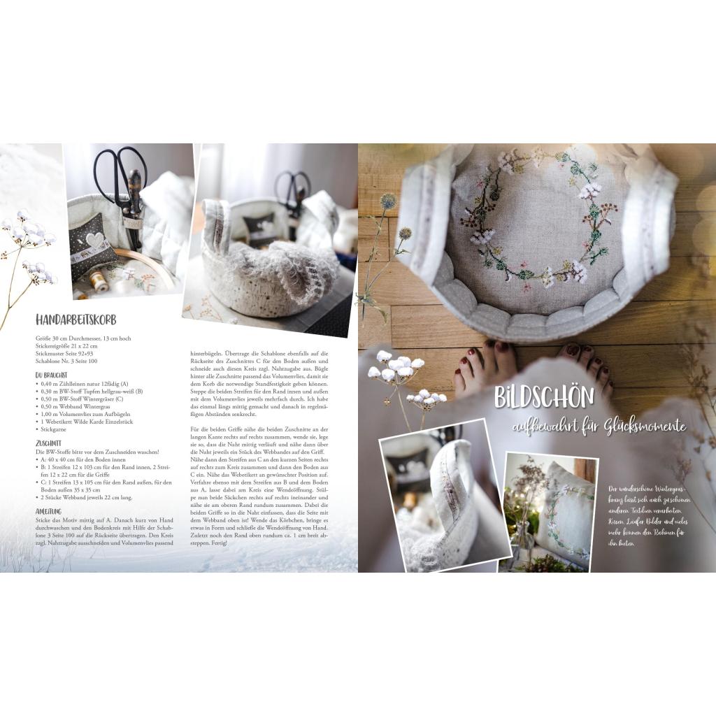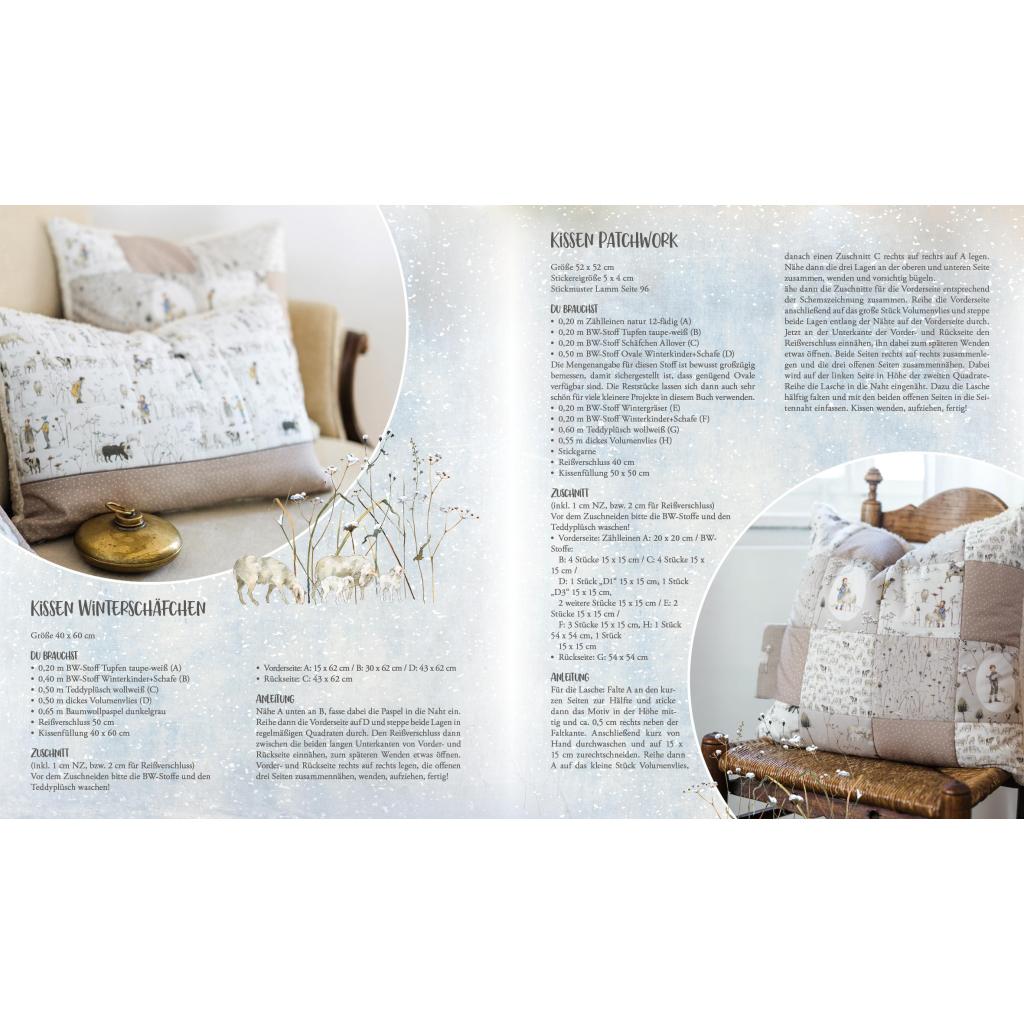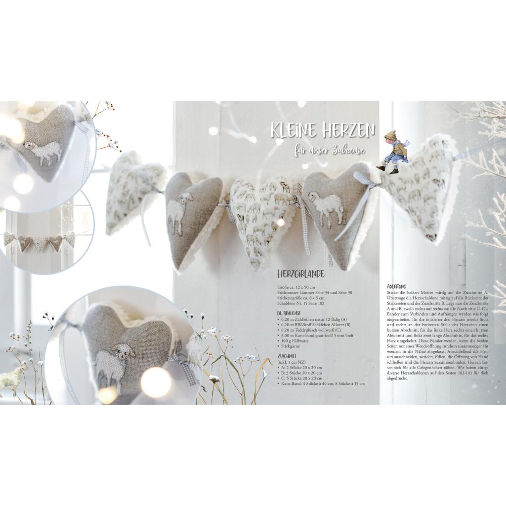 Der Winter lockt mit all seinen Freuden. Schäfchen tummeln sich auf Winterweiden im Schnee, Wintergräser bezaubern im Schneekristallkleid. Der Winter hält zu dieser Zeit eine besondere Farbwelt in Natur- und Brauntönen für uns bereit. Diese schöne Stimmung nehmen wir gerne mit in unser Zuhause. So sind die vielen Ideen und kreativen Gestaltungen in diesem Buch entstanden. Die liebevollen Motive entstammen aus der Feder der Kinderbuchillustratorin und Autorin Daniela Drescher. Sie fängt mit feinen Pinselstrichen die schönsten Winterfreuden ein. Stickmotive, Stoffe und Bänder tragen ihre Handschrift und werden mit ausführlichen Anleitungen zu fantasiereichen Heimaccessoires und Dekorationen verarbeitet. Kissen, Decken, Läufer, Sets, Schäfchenfiguren, Beutel, Kinderaccessoires und genähte Bäume bilden eine Vielzahl der Nähideen. Einige feine Strickprojekte ergänzen das Thema rund um die schäfchenschönen Handarbeiten.