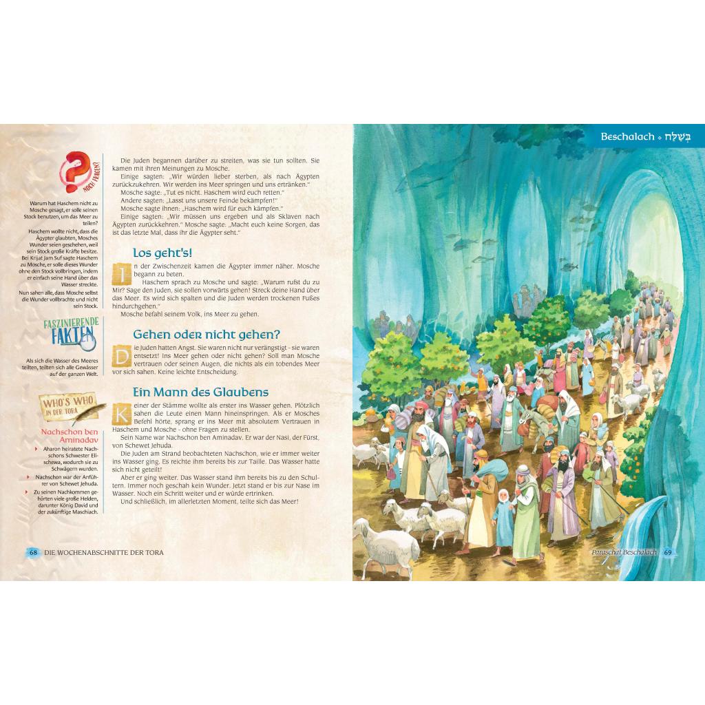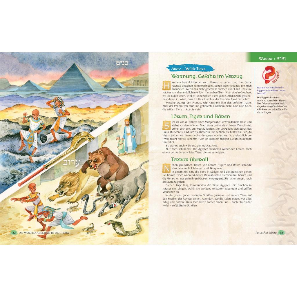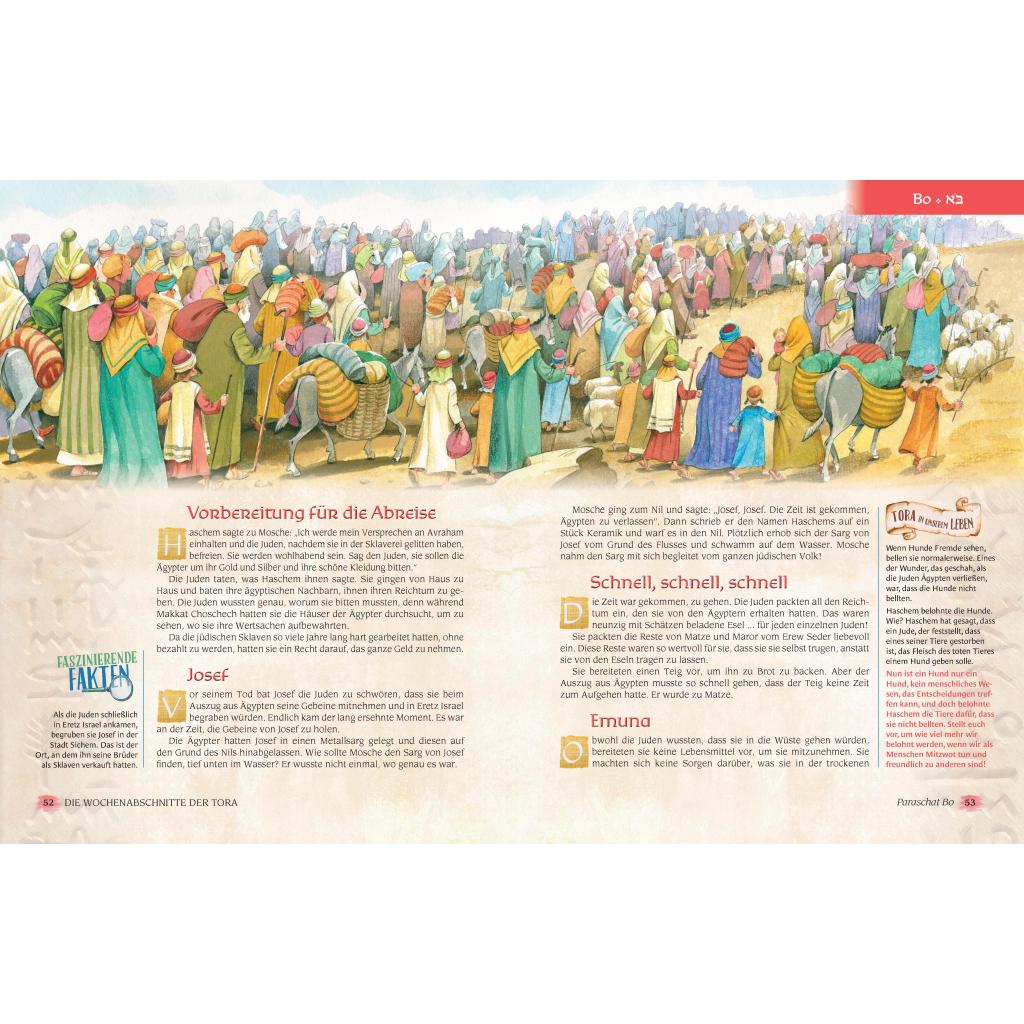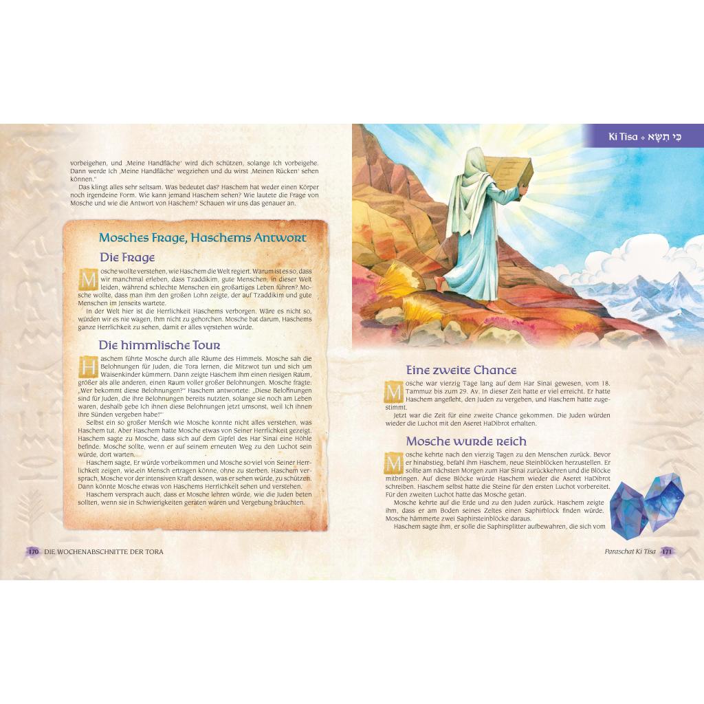 In dem für Kinderaugen so ansprechend illustrierten Werk "Die Wochenabschnitte der Tora" wendete sich Rabbiner Nachman Zakon vor allem - aber nicht nur! - an ganz junge Leser und Leserinnen. Der ihm sehr eigene Ton des Erzählens ermöglichte ihm auf faszinierende Art, ihnen die wöchentlichen Tora-Abschnitte (Paraschot) ganz nahe zu bringen. Das Buch Schemot, das zweite Buch der Tora, gibt, so könnte man sagen, dem jüdischen Volk seine Identität. Als Volk haben wir die Sklaverei in Ägypten mit Haschems Hilfe beenden können, als Volk haben wir am Berg Sinai die Tora entgegengenommen. Die Gesetzgebung stellt in vielerlei Hinsicht den Höhepunkt unserer Geschichte dar, umso eindrücklicher wird sie im zweiten Buch beschrieben, umso eindrücklicher kann sie unsere Kinder bewegen. Die Tora, die Mitzwot sind unsere Verbindung zu Haschem. In Schemot nehmen daher Gesetze, Gebote, Vorschriften, zum Beispiel auch für den genauen Aufbau des Mischkan, aber auch detailreiche Beschreibungen, wie die der Heiligen Gegenstände, einen so großen Raum ein. Wenn wir all das genau und voller Bewusstsein lesen, wenn wir dafür die Aufmerksamkeit und Begeisterung unserer Kinder gewinnen können, werden wir alle danach um einiges klüger und der Tora näher sein. Rabbiner Nachman Zakon ergänzte seine Erzählungen aus dem Buch Schemot zusätzlich noch durch lehrreiche Einblicke in die die Texte begleitende Midraschim. In rechten und linken Randspalten finden sich Erklärungen und Erläuterungen. Interessante Fragen, die sich stellen, werden da beantwortet, hebräische Wörter entlang ihrer Etymologie verständlich und nachhaltig erklärt. Um nahe bei der "Heiligen Sprache" zu bleiben, wurde bei den wenigen aber für die Authentizität des Textes wichtigen hebräischen Worte, die in den Erzählungen aus den Paraschot mit einflossen, das Genus übernommen und damit auch der entsprechende (deutsche) Artikel. Ähnlich wurde mit den (hebräischen) Namen verfahren. Da es dafür bei Übersetzungen aus dem Hebräischen keine Standards gibt, versuchte man sich entweder an einer üblichen Transkription oder an anderen "Lehrbüchern" zu orientieren. Empfohlen werden Rabbiner Nachman Zakons Erzählungen zu den "Wochenabschnitten der Tora" Kindern ab etwa acht Jahren. Wobei sie durch ihren durchdachten, vielschichtigen Zugang dazu geeignet sind, die jungen Leser und Leserinnen stetig beim Heranwachsen zu begleiten und dies durchaus auch im Schulunterricht an unseren jüdischen Schulen (das Erstellen von ergänzendem Lehrmaterial ist in Planung). Aber natürlich sind auch Eltern wie Großeltern herzlichst eingeladen, einen Blick und mehr in dieses Buch zu werfen. Sie werden viel Neues erfahren. Kurz: Rabbi Nachman Zakons Reise durch Tora und Midrasch ist etwas für "8 bis 120". Sie bietet ein außergewöhnliches Leseerlebnis und liefert wunderbaren Gesprächsstoff am nächsten Schabbat-Tisch.