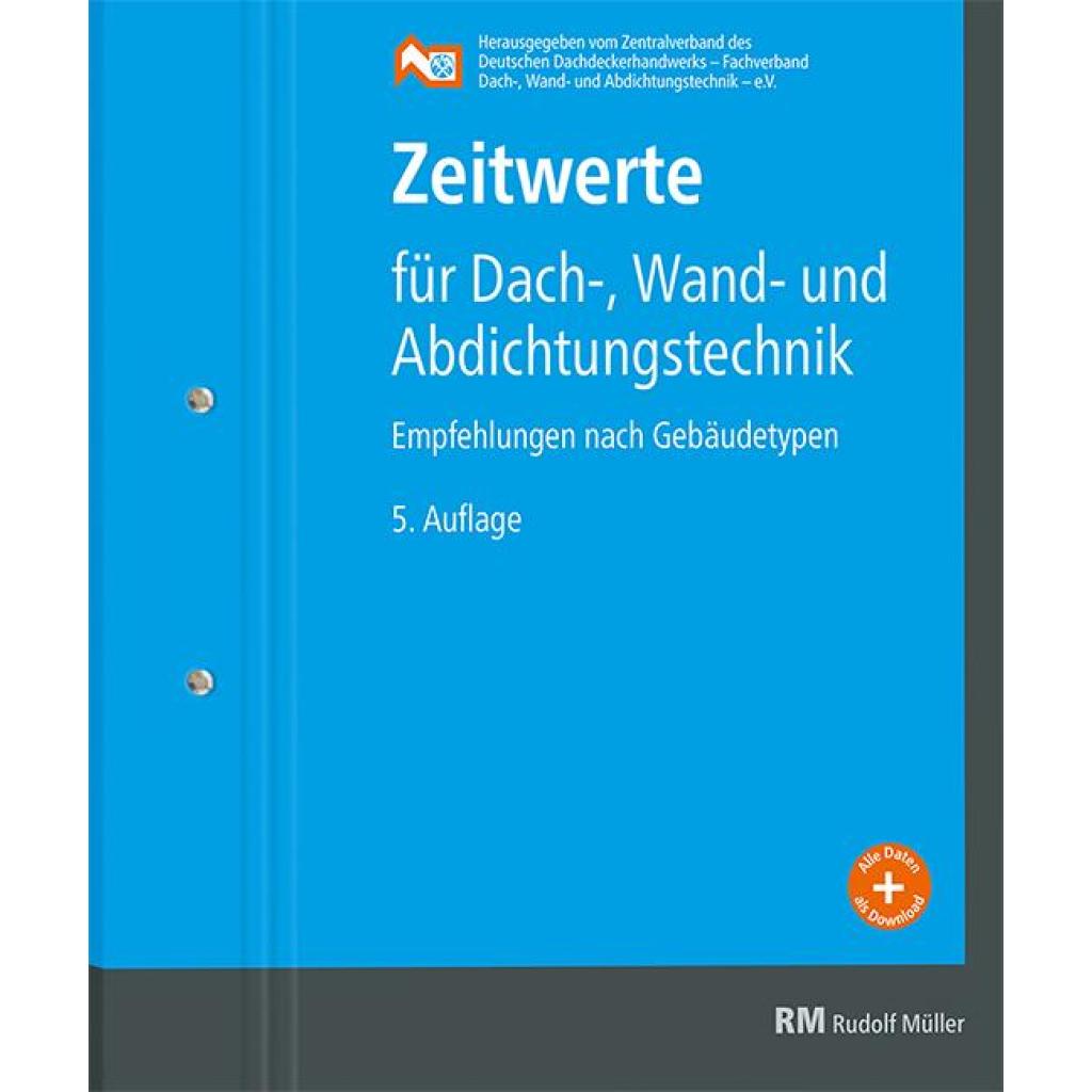 Zeitwerte für Dach-, Wand- und Abdichtungstechnik Erfahrungswerte nach Gebäudetypen Angebote schnell und sicher kalkulieren mit den aktuellen Zeitwerten für Dach-, Wand- und Abdichtungstechnik 2022. Die Basis der Zeitwerte bilden bundesweit gemittelte praktische Erfahrungswerte von ehrenamtlich in den technischen Fachausschüssen des ZVDH tätigen Dachdeckermeistern, von Fachlehrern in den Fachschulen des Dachdeckerhandwerks, hauptamtlich tätigen Mitarbeitern der Berufsorganisation, Informationen der Industrie und Erfahrungswerte des Deutschen Dachgärtnerverbandes. Die Gliederung der "Zeitwerte nach Gebäudetypen" berücksichtigt die unterschiedlichen Anforderungen an die Gebäudearten. Eigene betriebliche Erfahrungswerte können in den frei gehaltenen Zeilen entsprechend eingetragen werden, um zu einer aktuellen Grundlage des Kalkulationsfaktors Lohn zu gelangen. Es wird ein normaler Schwierigkeitsgrad der Dacharbeiten zugrunde gelegt, wobei eine Anpassung an betriebliche und baustellenbezogene Faktoren durchgeführt werden sollte. Damit kann ein Großteil der Kalkulation Arbeit erleichternd und zeitsparend mit einer Musterkalkulation abgedeckt werden. ¿ Neu aufgenommen wurden mit der 5. Auflage auch¿Erfahrungswerte zu · Planungsleistungen sowie · zur energetischen Steildachsanierung und · zu Dachflächenfenstern Zudem gab es Änderungen und Ergänzungen im Bereich Solar. Aus dem Inhalt - Allgemeine Grundlagen und Erläuterungen - Planungsleistungen - Flachdach und Abdichtungen - Dachziegel und Dachsteine - Schiefer - Faserzement-Dach- und Wellplatten - Außenwandbekleidungen - Dachgeschossausbau - Metallarbeiten und Entwässerung - Gerüstbauarbeiten und Sicherheitsmaßnahmen - Flüssigabdichtungen - Dachbegrünung - Solartechnik - Dachflächenfenster