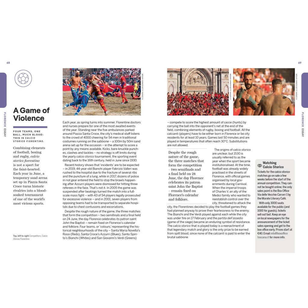 This latest edition of Lonely Planet's Experience Tuscany travel guide reveals exciting new ways to explore this iconic region with all the tools you need to create your own unique trip. Discover amazing local experiences from biting into a stuffed schiacciata sandwich in Florence, to exploring early Etruscan life at the Roselle archaeological park, and relaxing on the wild beaches of Marina di Alberese surrounded by a lush nature reserve. Build a one-of-a-kind trip with Lonely Planet's Experience Tuscany travel guide: Our Experience guidDigital format is led by local experts who provide in-the-know tips so you can plan the ultimate 1-2 week adventure Easy-to-use regional and activity-based itineraries help you get off the beaten track and tailor a trip to your interests Insider scoop on the best festivals, secret hangouts, hidden locations, tantalising local food scene and photo-worthy views Vibrant photography and maps including a pull-out map of Florence & Tuscany Connect with local traditions and trends through fun insights from getting to know one of the world's most viscous sports, to understanding the history of Pitigliano's Jewish community, and learning about how Carrara became a hotbed of radical ideas Practical information on money, getting around, unique places to stay and responsible travel, plus handy seasonal calendars on where to go , when to travel and what to pack QR codes unlock extra digital content , know-how and travel secrets Covers : Florence; Siena & Central Tuscany; Val D'Orcia; Southern Tuscany; The Central Coast; Explore Tuscan Islands; Pisa & Northwestern Tuscany; Eastern Tuscany Create your own dream travel itinerary and get away from the everyday with Lonely Planet's Experience Tuscany .