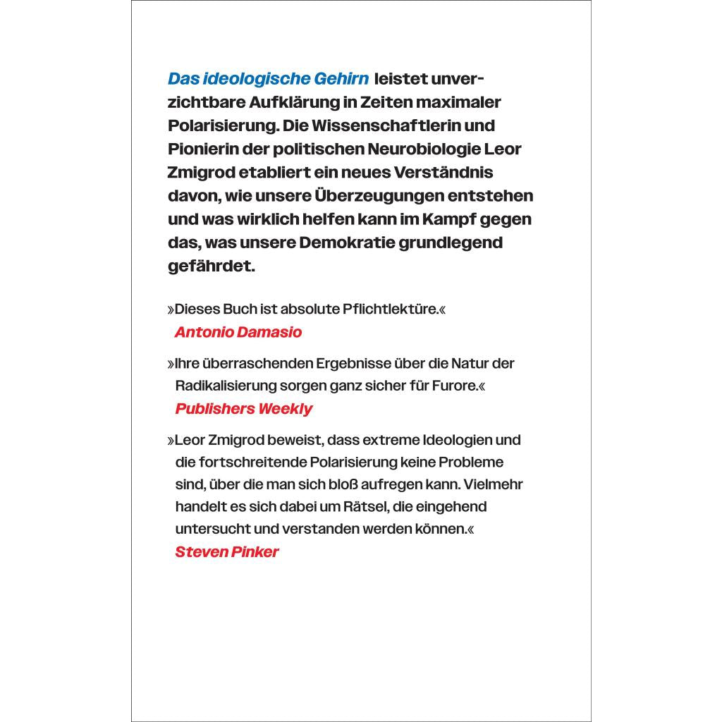 Leor Zmigrod gilt mit nur 29 Jahren als Begründerin eines neuen Wissenschaftsfelds: der politischen Neurobiologie. Darin erforscht sie den Zusammenhang zwischen politischen Einstellungen und der Biologie unseres Gehirns. Sie zeigt, dass unsere Überzeugungen nicht als flüchtige Gedanken losgelöst von unseren Körpern existieren. Vielmehr verändern Ideologien unser Gehirn. Und zur gleichen Zeit macht eine bestimmte neurobiologische Veranlagung empfänglich für gewisse Glaubenssätze. Weshalb sie mit einem einfachen Kartensortier-Experiment beispielsweise in der Lage ist, erschreckend akkurat auf die Weltsicht ihrer Probanden zu schließen. In zahlreichen weiteren Experimenten beweist sie den Konnex zwischen extremen politischen Positionen und unserem Gehirn und revolutioniert damit unsere Vorstellungen von Radikalisierung, Extremismus, demokratischer Meinungsbildung. Das ideologische Gehirn leistet unverzichtbare Aufklärung in Zeiten maximaler Polarisierung. Die Wissenschaftlerin und Pionierin der politischen Neurobiologie Leor Zmigrod etabliert ein neues Verständnis davon, wie unsere Überzeugungen entstehen und was wirklich helfen kann, im Kampf gegen das, was unsere Demokratie grundlegend gefährdet. Dieses Buch ist Teil der Reihe: suhrkamp nova . Mit dieser Buchreihe haben wir einen Ort geschaffen, an dem wir ungewöhnliche, unerwartete oder sogar provokante Bücher veröffentlichen können, die mit der Sprache, der Form oder dem Thema experimentieren. In der suhrkamp nova können wir Leserinnen und Lesern, die etwas anderes als das Übliche suchen und bereit sind zu experimentieren, neue Stimmen und neue Perspektiven vorstellen. Jedes dieser Bücher ist scharfsinnig, intelligent, energiegeladen und unerwartet - Eigenschaften, die ein 'nova-Buch' auszeichnen sollen.