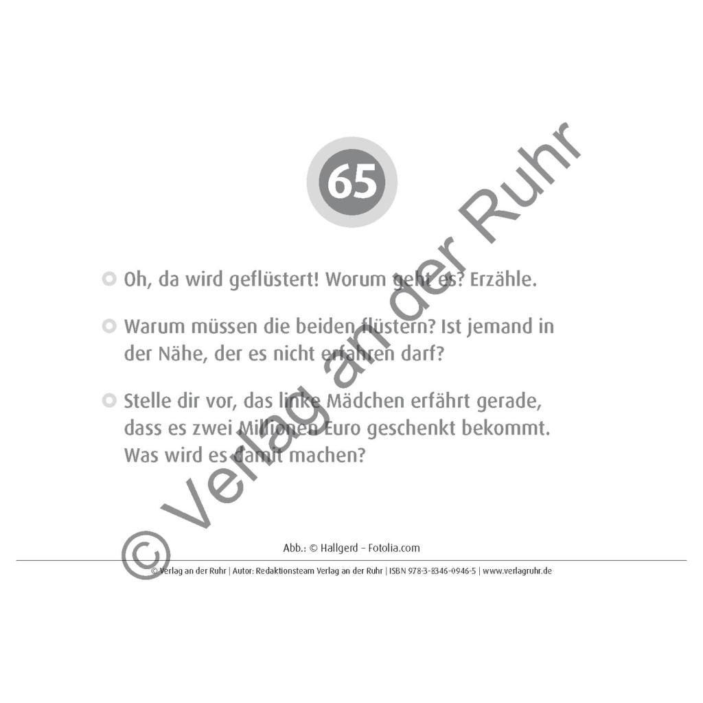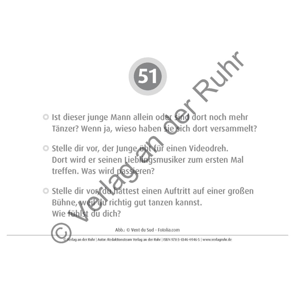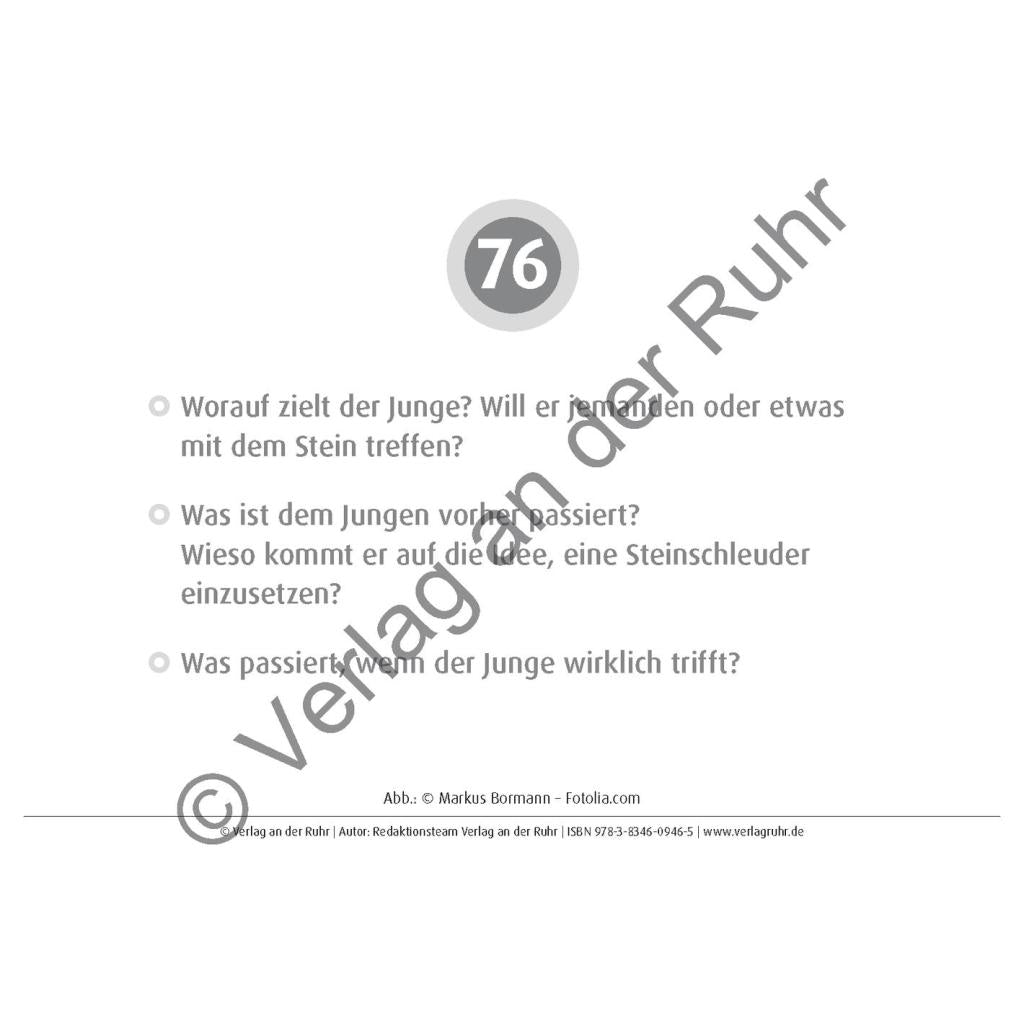 "Ein Bild sagt mehr als tausend Worte", heißt es. Diese Kartei folgt vielmehr dem Motto: "Ein Bild ist Anlass für viele Worte!" 80 wiederverwendbare Bildkarten regen zum Schreiben und Erzählen an. Von "Unterwasserwelt" über "Länder und Kulturen" bis hin zu "Kuriosem" und "Magischem" sind Bilder zu verschiedensten Themen vorhanden. Dabei können sie als Impuls, aber auch als Ausdrucksmittel fungieren. Legen Sie doch im Deutschunterricht einige Bilder als Inspiration zum freien Schreiben aus. Oder lassen Sie die Kinder mit den Karten ihre Gedanken und Träume ausdrücken. Dazu gibt es sowohl offene Bilder, die Raum für Fantasie lassen, als auch konkrete Szenen und Situationen. Ob als Schreib- oder Gesprächsimpuls - die Möglichkeiten sind so vielfältig wie die Bilder selbst!