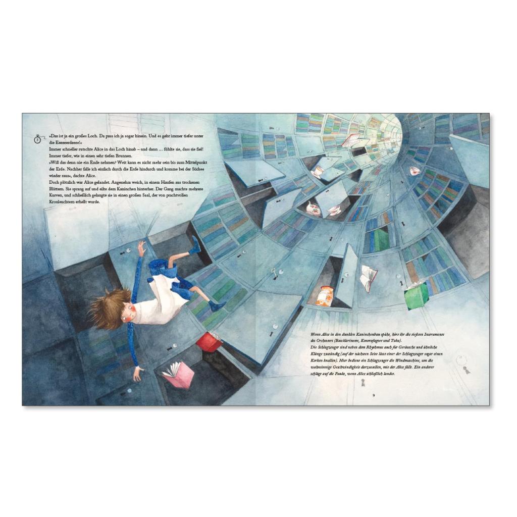 Mehr 'Klassik' geht nicht: Diese außergewöhnliche Bilderbuchreihe verknüpft Kinderbuchklassiker mit eigens komponierter Orchestermusik! Turbulente Ereignisse widerfahren Alice in dieser weltbekannten Geschichte: Sie kriecht in einen Kaninchenbau und stürzt in ein fantastisches Wunderland! Die Reihe 'Weltliteratur & Musik' vermittelt klassische Musik mit Spaß und abseits ausgetretener Wege. Weltberühmte literarische Werke, renommierte Orchester und Sprecher sowie bezaubernde Umsetzung in Text und Bild sind der perfekte Weg für Kinder, sich mit klassischer Musik und klassischer Kinderliteratur zu beschäftigen. Klassik & Klassiker: Literatur und Musik kunstvoll vereint. Zusätzliche Erklärungen zu Musik und Instrumenten vom Komponisten Musik und Text auf der Begleit-CD: Komponist: Henrik Albrecht Orchester: NDR Radiophilharmonie Dirigent: Andreas Hempel Sprecher: Ulrich Noethen, Laura Maire und Stefan Kaminski
