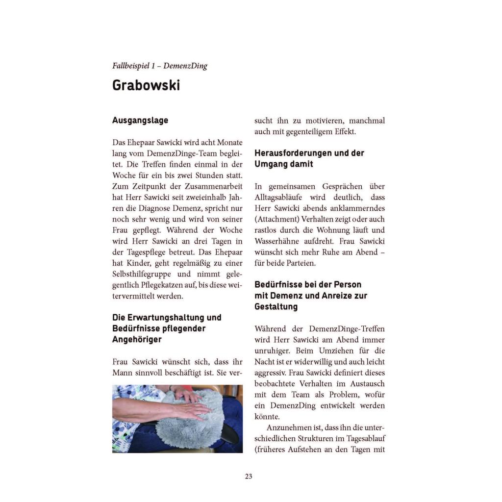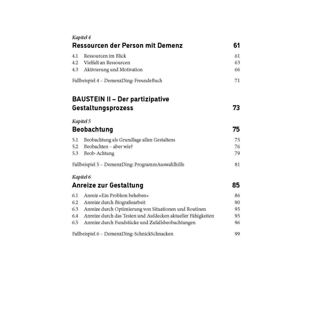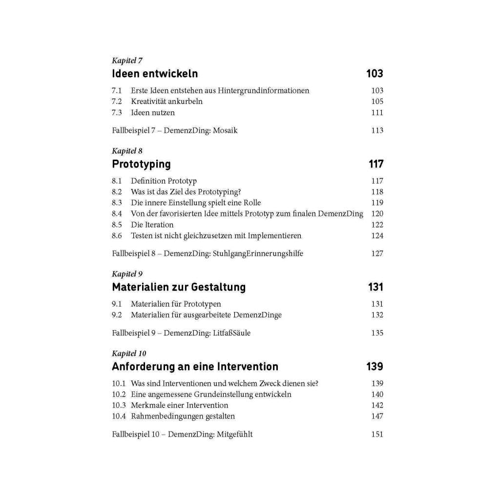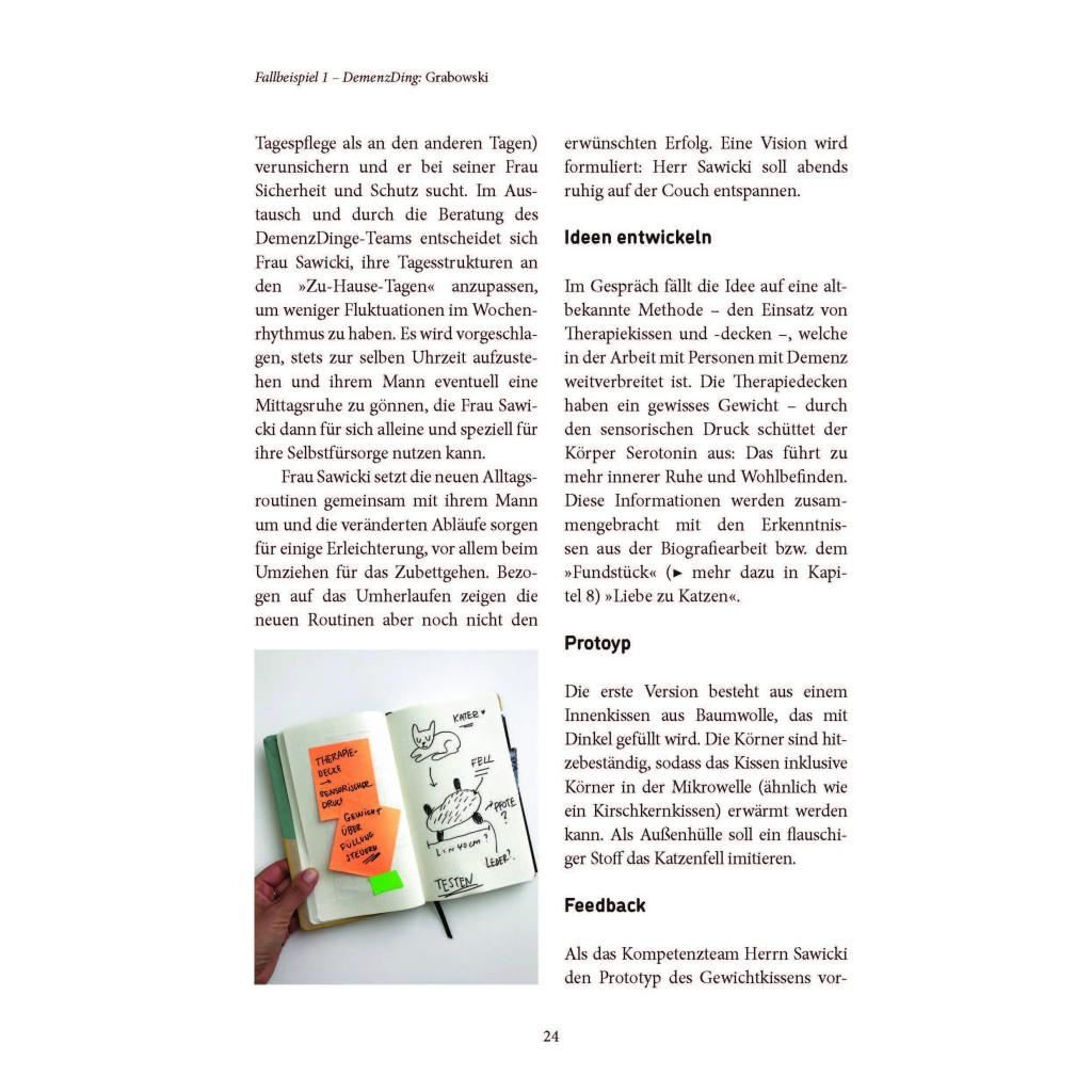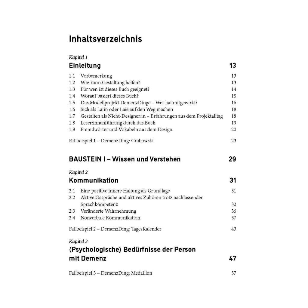 Leben mit Demenz: Wie aktives Gestalten Erkrankten und Pflegenden hilft Die Betreuung von Menschen mit Demenz stellt sowohl pflegende Angehörige als auch Fachkräfte vor vielfältige Herausforderungen. Um die individuellen Bedürfnisse und Wünsche der Betroffenen zu unterstützen, kann es hilfreich sein, kleine Alltagshilfen zu entwickeln. Diese sogenannten "DemenzDinge" werden nicht nur für, sondern auch mit der erkrankten Person hergestellt. Der Leitfaden wurde von einem Team aus Demenzexpertinnen und Designerinnen entwickelt und zeigt Möglichkeiten auf, wie solche Hilfsmittel gestaltet werden können. Demenzkranke und ihre Angehörigen erhalten so ein wertvolles Werkzeug, um gemeinsam den Alltag mit der Krankheit zu erleichtern. - Auf der Suche nach dem richtigen Design: Demenz-Probleme im Alltag lindern - Pflege bei Demenz: Wie aktive Kommunikation gelingt - Medaillon, SchnickSchnacken, Buzz: Praxisbeispiele für "DemenzDinge" - Demenz-Hilfe für Angehörige: Gemeinsam einen neuen Alltag entwickeln - Demenz verstehen: Anregungen für einen selbstbestimmten Umgang mit der Krankheit Demenz: Ressourcen, Unterstützung und Beschäftigung für Demenzkranke Wenn Dinge des täglichen Lebens nach und nach für Verwirrung sorgen, braucht es viel Verständnis und eine offene Kommunikation. Gemeinsam ein "DemenzDing" zu gestalten, kann pflegende Angehörige und Betroffene auf ihrem Weg zu mehr Wohlbefinden trotz Erkrankung unterstützen. Die aktive Beteiligung der erkrankten Person ist dabei der Schlüssel zum Erfolg. Hilfen für das Leben mit Demenz sollten individuell gestaltet werden. In diesem Demenz-Buch werden Übungen und Hintergrundwissen mit Beispielen aus der Praxis kombiniert. So finden Sie und Ihre Familie das "DemenzDing", das am besten zu Ihnen passt!