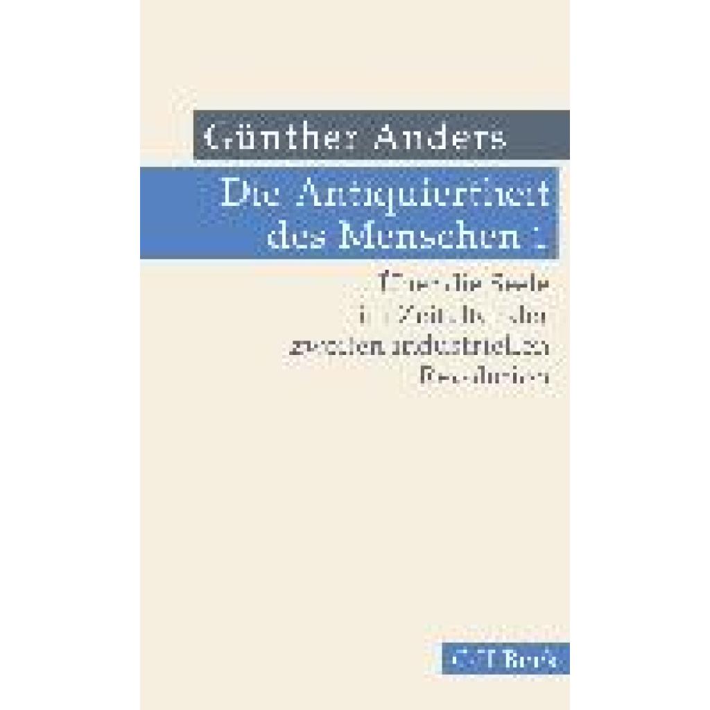 "Die drei Hauptthesen: daß wir der Perfektion unserer Produkte nicht gewachsen sind; daß wir mehr herstellen, als wir uns vorstellen und verantworten können; und daß wir glauben, das, was wir können, auch zu dürfen: diese drei Grundthesen sind angesichts der im letzten Vierteljahrhundert offenbar gewordenen Umweltgefahren leider aktueller und brisanter als damals." Günther Anders Anders' Hauptthema ist aktueller denn je: die Zerstörung der Humanität und die mögliche physische Selbstauslöschung der Menschheit. Der bisherige Mensch ist überholt, "antiquiert"?, der gegenwärtige und auch der zukünftige sind gekennzeichnet durch die Diskrepanz zwischen der noch immer wachsenden Kapazität der Technik und dem Unvermögen der Phantasie, sich die katastrophalen Folgen der Technik vorzustellen.
