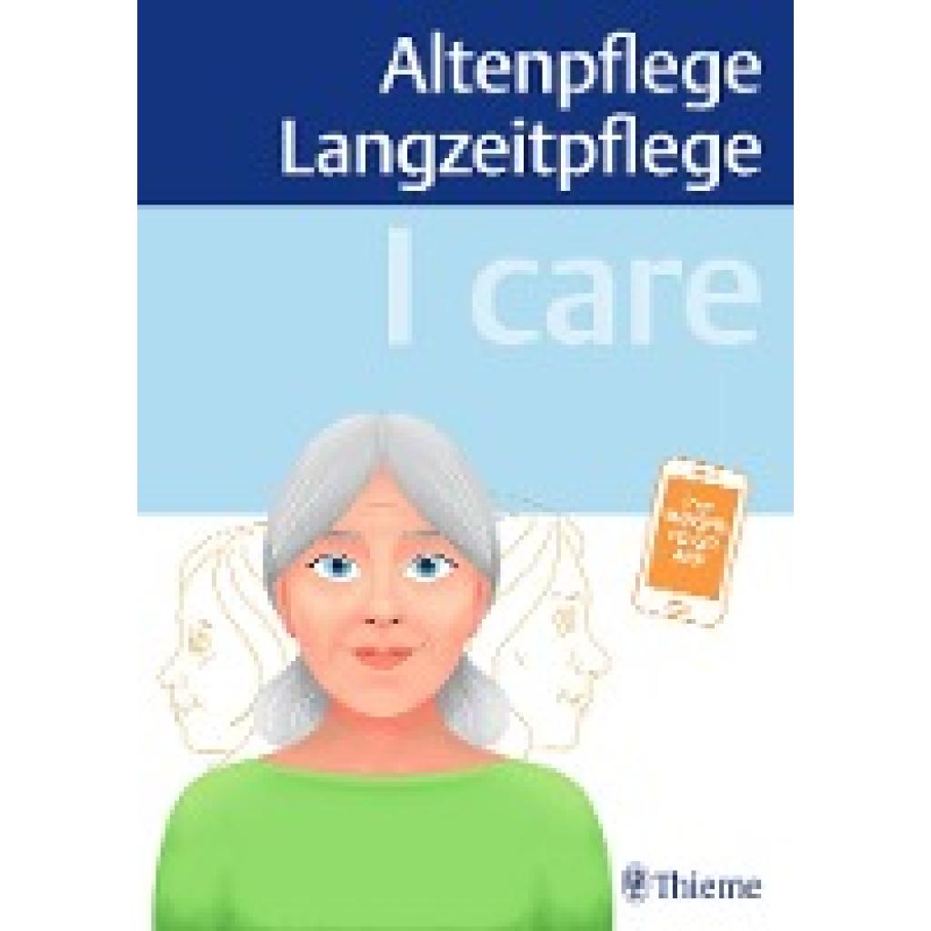 Du spezialisierst dich während der generalistischen Ausbildung auf die Alten-/Langzeitpflege bzw. absolvierst deine Ausbildung bei einem Träger in diesem Bereich? Oder du bist Pflegeassistent*in und trittst eine Stelle im Bereich der Alten- bzw. Langzeitpflege an? Dann ist I care Altenpflege Langzeitpflege dein idealer Begleiter für Theorie und Praxis. Du erhältst schnellen Zugriff auf geriatrisches Fachwissen, das über das pflegerische Basiswissen hinausgeht. Der Buchinhalt steht dir ohne weitere Kosten digital auf icare.thieme.de zur Verfügung (Zugangscode im Buch). Leichter Lernen: Mit dem Konzept aus Orientieren, Verstehen und Merken unterstützt dich das neue Lehrbuch bei diesen Themen: - Grundlagen des Altenpflegeberufs - Kommunizieren und Zusammenarbeiten - Pflegebasismaßnahmen und Pflegetechniken - Menschen beim Wohnen und in der Lebensgestaltung unterstützen - kritische Lebenssituationen und Krisensituationen - Menschen mit psychischen und kognitiven Problemen pflegen - ausgewählte Erkrankungen in der Alten- und Langzeitpflege Professionell pflegen: I care Altenpflege Langzeitpflege vermittelt das notwendige Wissen rund um die Besonderheiten der Altenpflege. So kannst du gezielt auf die spezifischen Bedürfnisse älterer Menschen eingehen und diese kompetent pflegen. I care Altenpflege Langzeitpflege begleitet dich in der Pflegeausbildung und ist v.a. beim Vertiefungseinsatz der optimale Begleiter. Es legt die inhaltlichen Grundlagen für den Erwerb der Kompetenzen nach Anlage 4 zum §28 der PflAPrVO und ermöglicht dir einen optimalen Berufseinstieg. Auch für den Wiedereinstieg in den Beruf und die Begleitung im Arbeitsalltag bietet das Lehrbuch die wichtigsten Inhalte. Für Einrichtungen, die Rahmen des neuen Personalbemessungssystems (PeBeM), nun vermehrt Pflegeassistent*innen einstellen werden, bietet I care Altenpflege Langzeitpflege für Qualifikation und Fortbildung der neuen Kolleg*innen in diesem Bereich die optimale Wissensgrundlage – verständlich und praxisnah. Mit der praktischen WISSEN TO GO App hast du auch von unterwegs Zugriff auf die zentralen Inhalte der Alten- und Langzeitpflege.