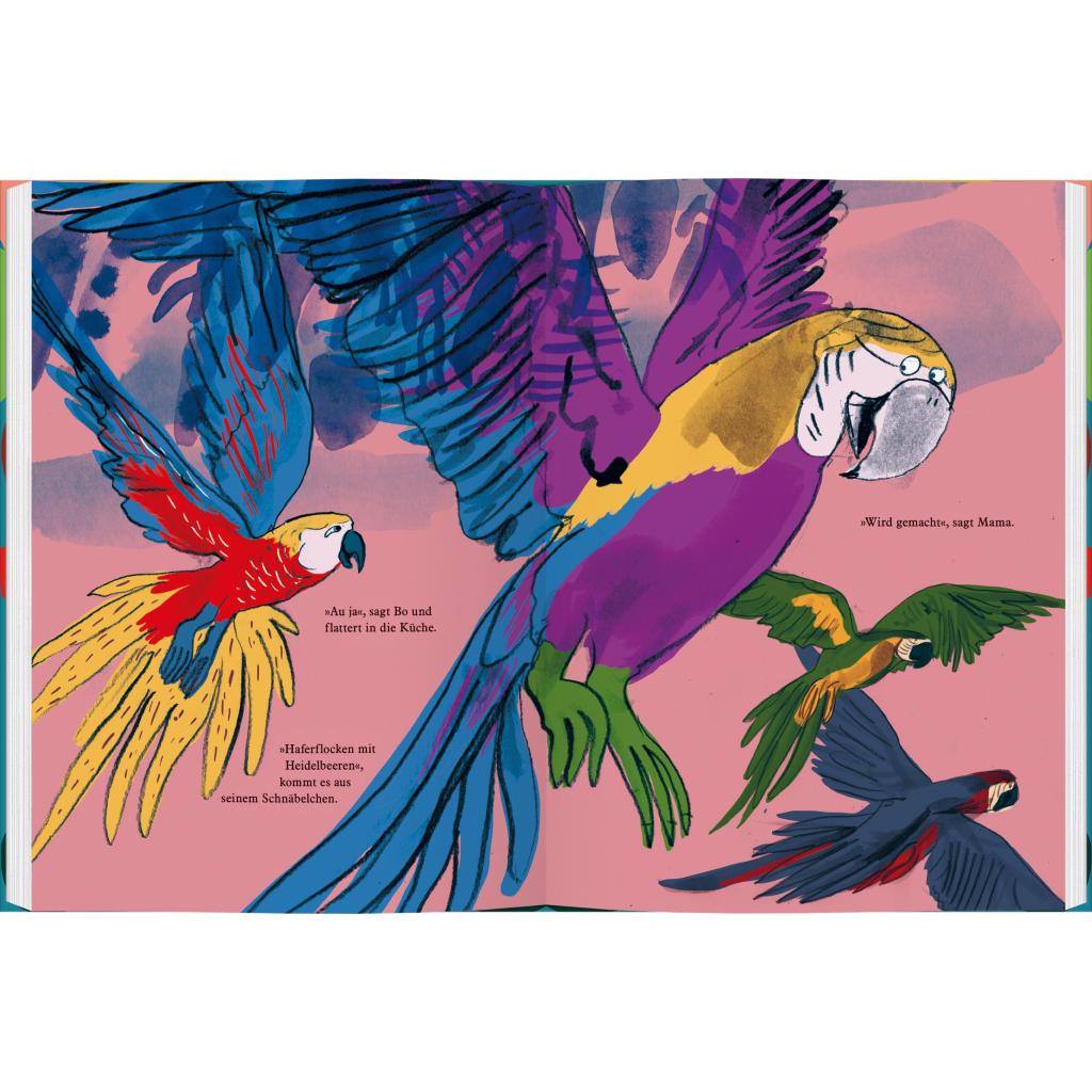 Es ist schon spät - aber Bo will noch nicht schlafen. Lieber turnt er auf dem Sofa und macht Quatsch. Er stellt sich vor, er wäre ein Papagei, die schlafen nämlich auf einem Bein! Oder ein Erdmännchen, die kuscheln sich eng aneinander. Aber auch Tiere müssen zu Abend essen, sich waschen und Zähne putzen ... Und vor Löwen zu flüchten oder als Fledermaus auf dem Kopf zu stehen, kann ziemlich müde machen. Eine Gutenachtgeschichte für nimmermüde Kinder und ihre Eltern, mit Einschlafgarantie!