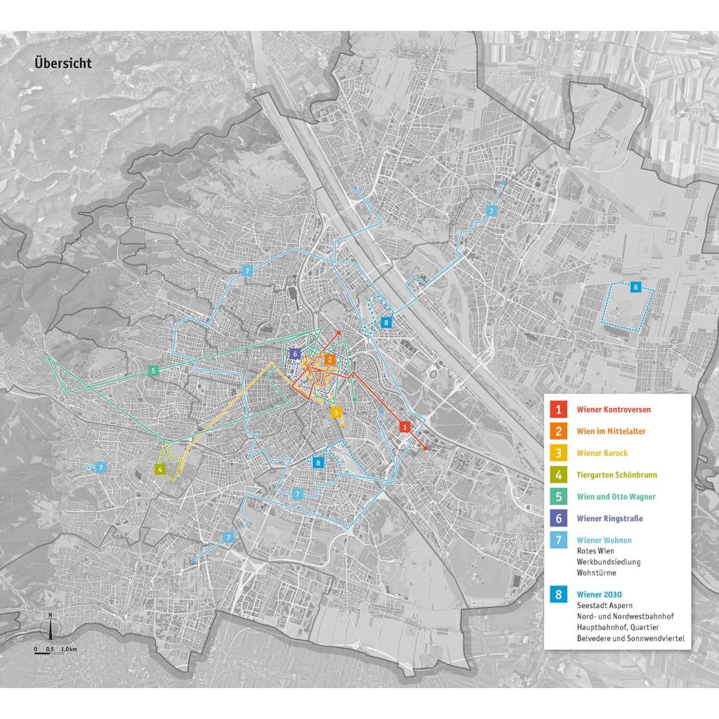 Die Donaumetropole Wien zählt mit ihren weltbekannten Bauten wie dem gotischen Stephansdom, der barocken Hofburg und den Prachtbauten der Ringstraße seit Jahren zu den lebenswertesten Städten der Welt. Secessionsstil und Moderne, Otto Wagner, Adolf Loos und Josef Frank haben in diesem historischen Stadtbild ebenso ihre prägenden Spuren hinterlassen, wie es die spektakulären Neubauten der internationalen und österreichischen Architektenschar derzeit tun. Aber nicht nur herausragende Solitäre, auch die Stadtentwicklungsprojekte auf den großen Infrastrukturbrachen der Stadt wie dem ehemaligen Flugfeld in Aspern oder den stillgelegten Bahnhöfen sind unbedingt sehens-¬ und erlebenswert. Ebenso wie die Anfänge des Wiener Wohnens: die Sozialbauten des Roten Wien und die Wiener Werkbundsiedlung. Stadtplaner, Architekten und Filmemacher haben sich für diesen Architekturführer auf Spurensuche begeben. Sie haben über 200 Projekte ausfindig gemacht, Touren zusammengestellt und geben Tipps zu Filmen, Büchern, Kaffeehäusern und Würstelständen, so dass sich jeder Besucher von der Lebensqualität Wiens beflügeln lassen kann.