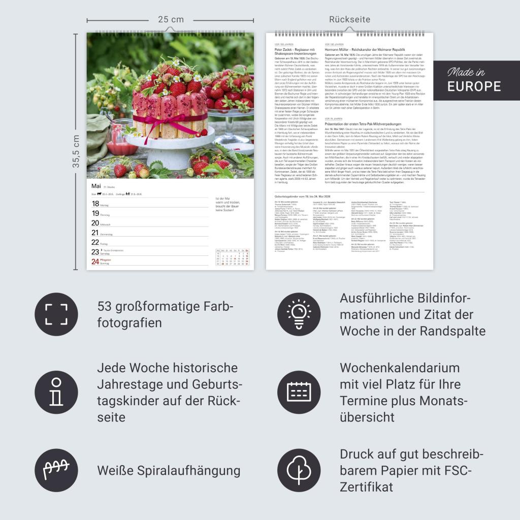 Dekorativer Wandplaner zum Eintragen mit 53 schönen Fotos und Zitaten. Termin-Kalender 2026 für die Wand. 25 x 35,5 cm