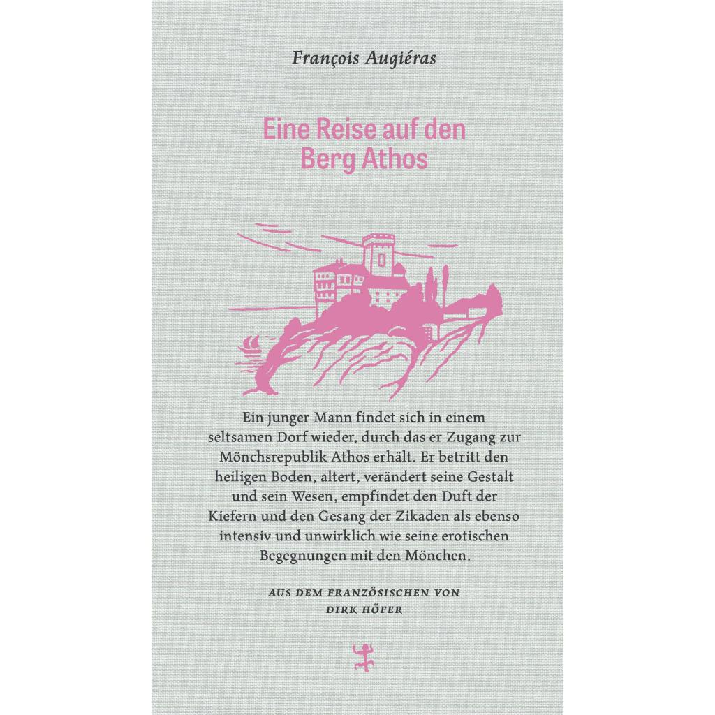 Augiéras schildert das Erklimmen des heiligen Bergs als Reise zum eigenen Inneren, die sinnlich und voller Melancholie ist und zugleich die radikale Abkehr von Konventionen, Dogmen und religiösen Zwängen feiert. Ein junger Mann findet sich in einem seltsamen Dorf wieder, durch das er Zugang zur Mönchsrepublik Athos erhält. Er betritt den heiligen Boden, altert, verändert seine Gestalt und sein Wesen, empfindet den Duft der Kiefern und den Gesang der Zikaden als ebenso intensiv und unwirklich wie seine erotischen Begegnungen mit den Mönchen. Erzählt Augiéras von einem Fiebertraum, einer Unterweltfahrt oder tatsächlich vom heiligen Berg Athos? Es spielt keine Rolle, denn seinem Bericht aus einem Zwischenreich, in dem Heiligkeit und Fleischlichkeit, Vereinigung und Einsamkeit nebeneinander existieren, eignet eine Wahrheit über den Menschen an sich.