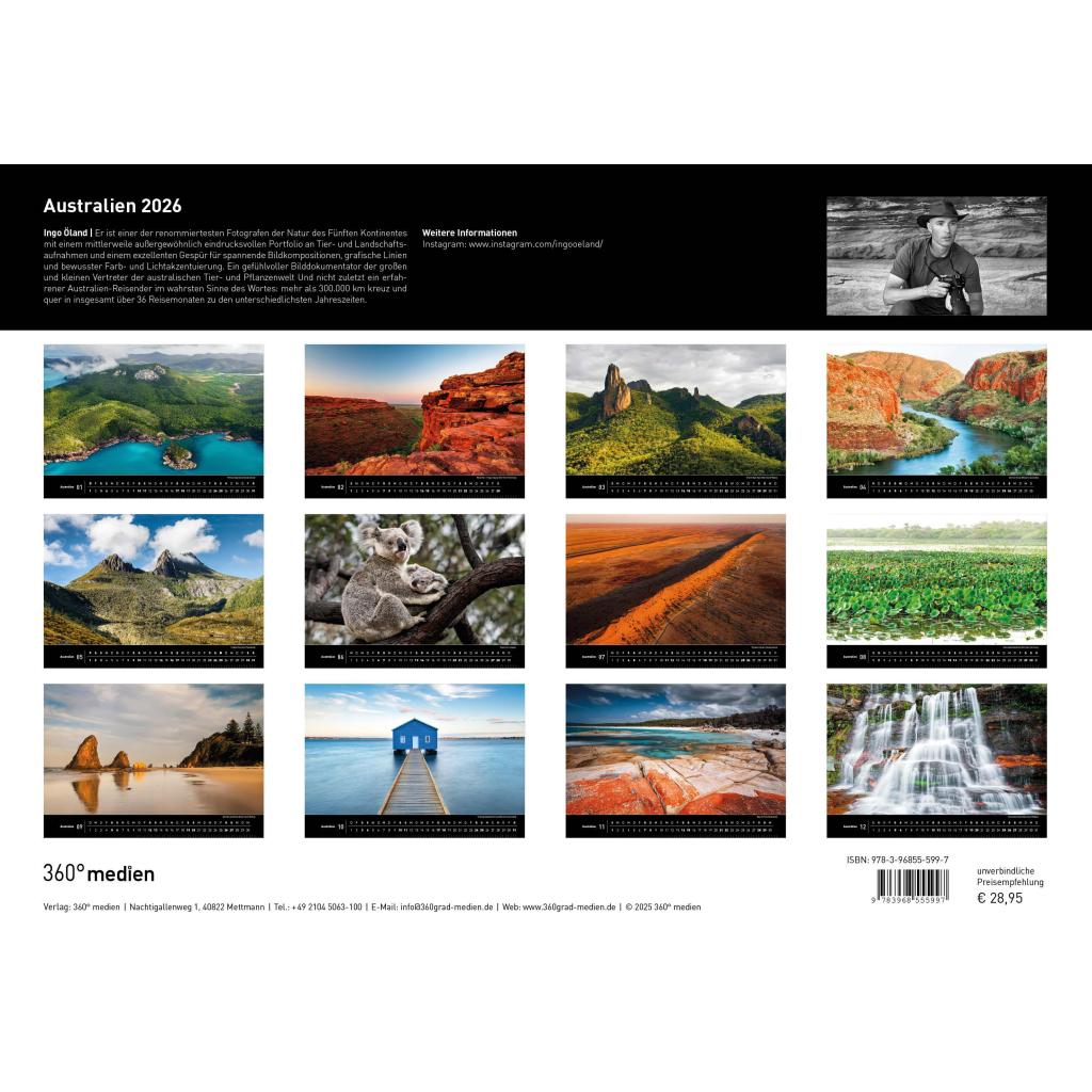 Aus traumhaften Australien-Aufnahmen des Fotografen Ingo Öland hat die Redaktion von 360° medien die 13 schönsten Motive ausgewählt und in diesem Kalender zusammen gestellt. Präsentiert werden die Fotos auf hochwertigem Papier im Format 50 cm x 35 cm.