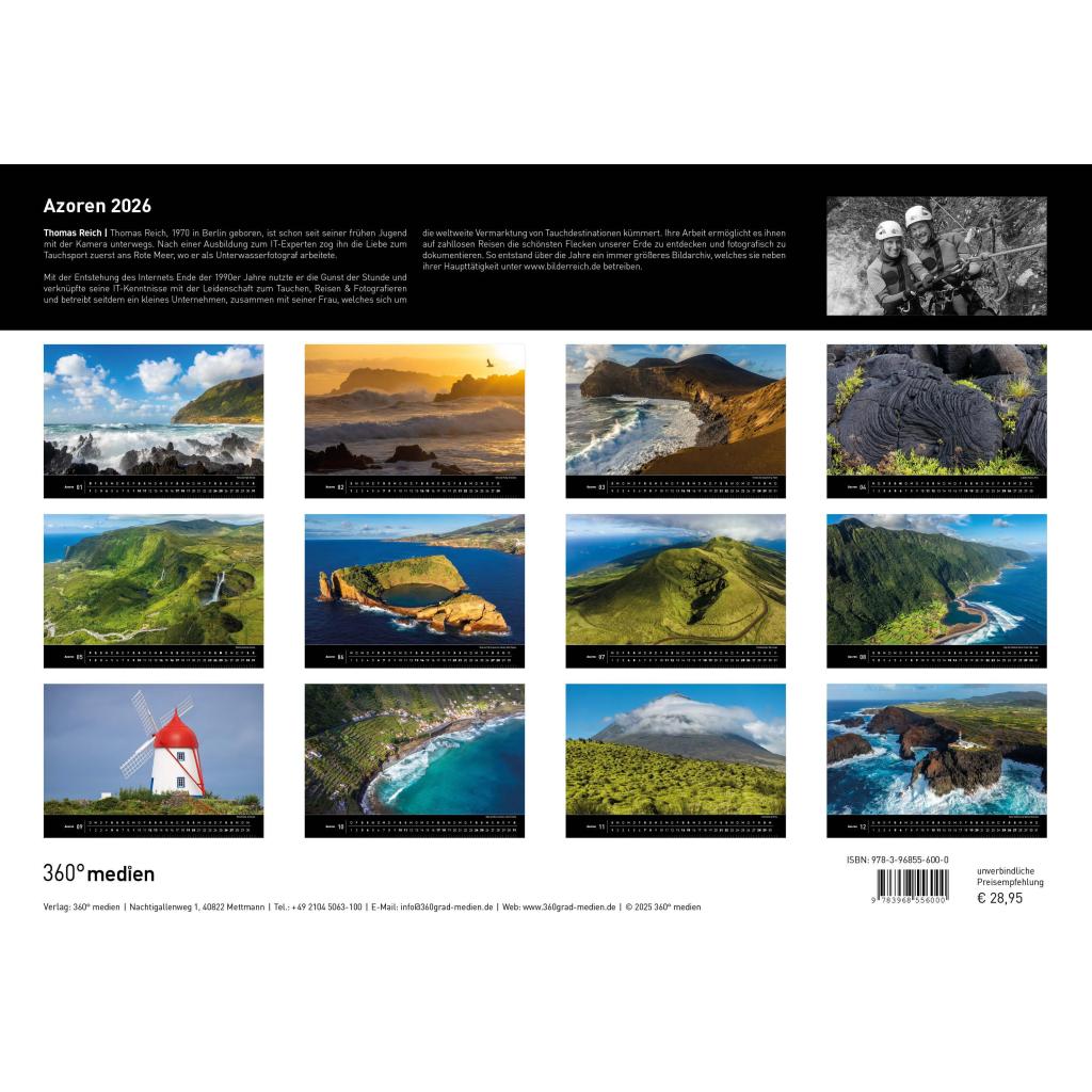 Aus traumhaften Azoren-Aufnahmen des Fotografen Thomas Reich hat die Redaktion von 360° medien die 13 schönsten Motive ausgewählt und in diesem Kalender zusammen gestellt. Präsentiert werden die Fotos auf hochwertigem Papier im Format 50 cm x 35 cm.