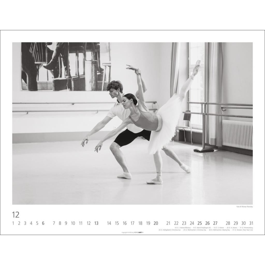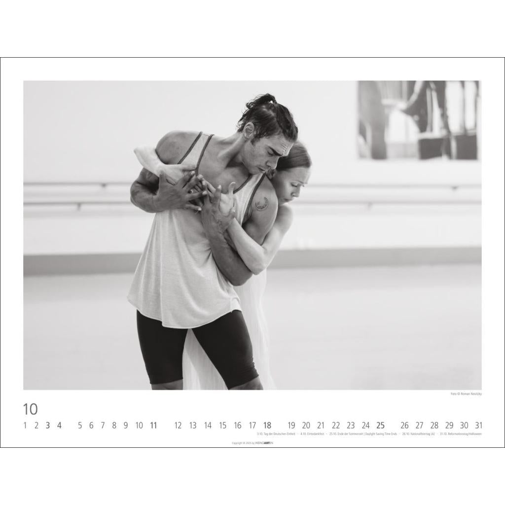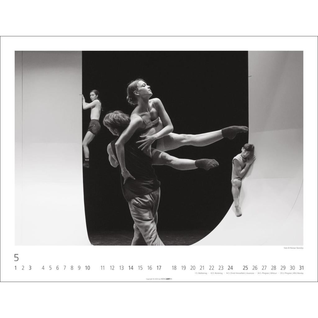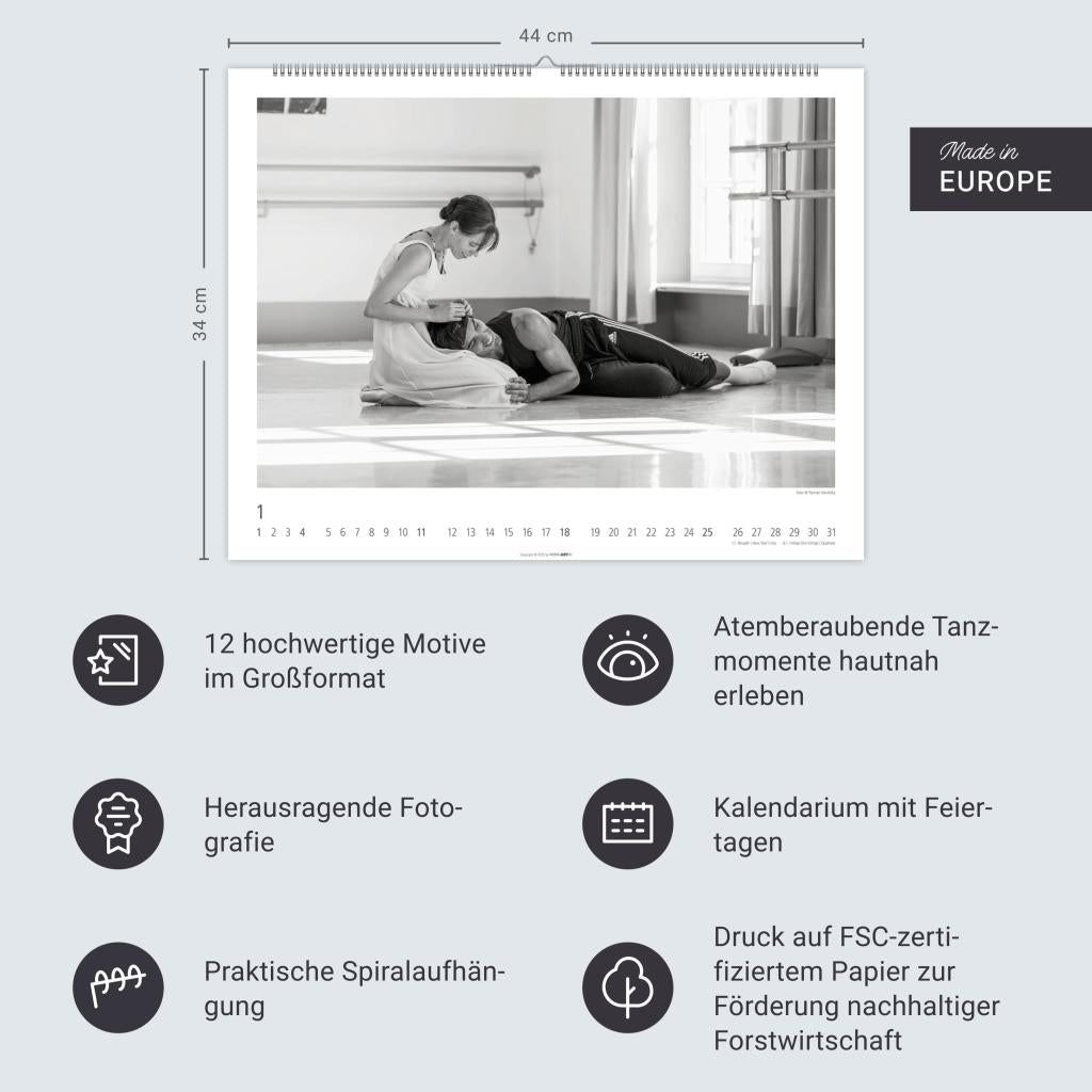 Die ganze Eleganz und Kraft der Tänzer:innen in einem großen Fotokalender. Schwarzweißer Kalender für Tanzbegeisterte. 44 x 34 cm. Querformat