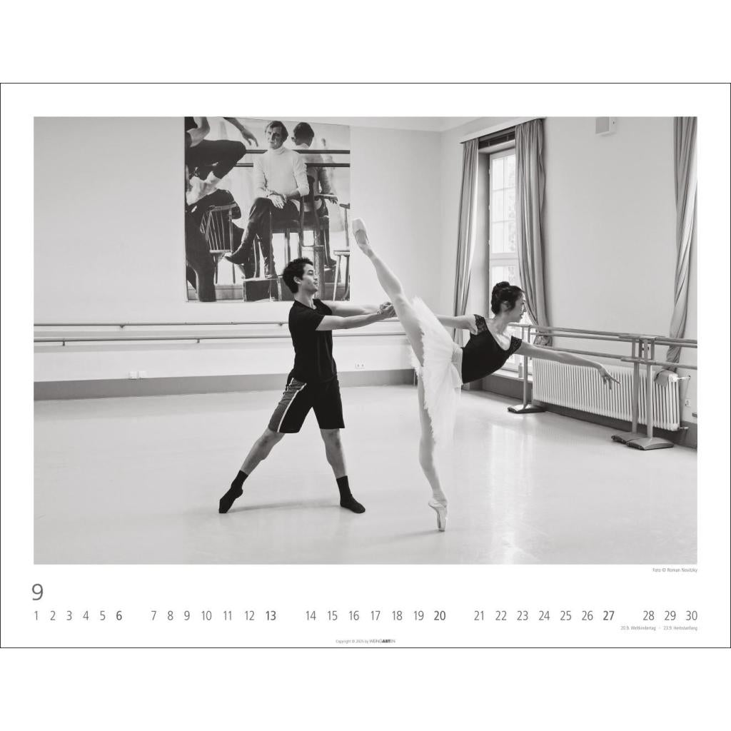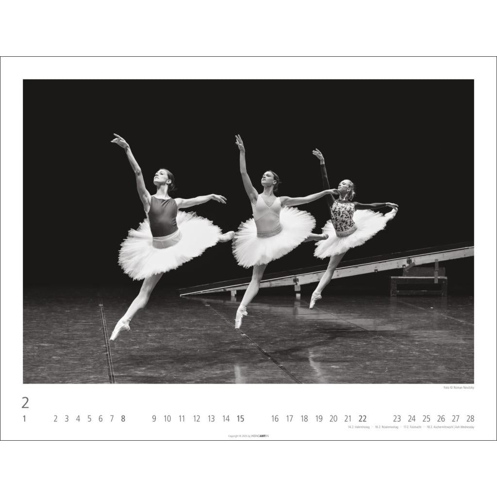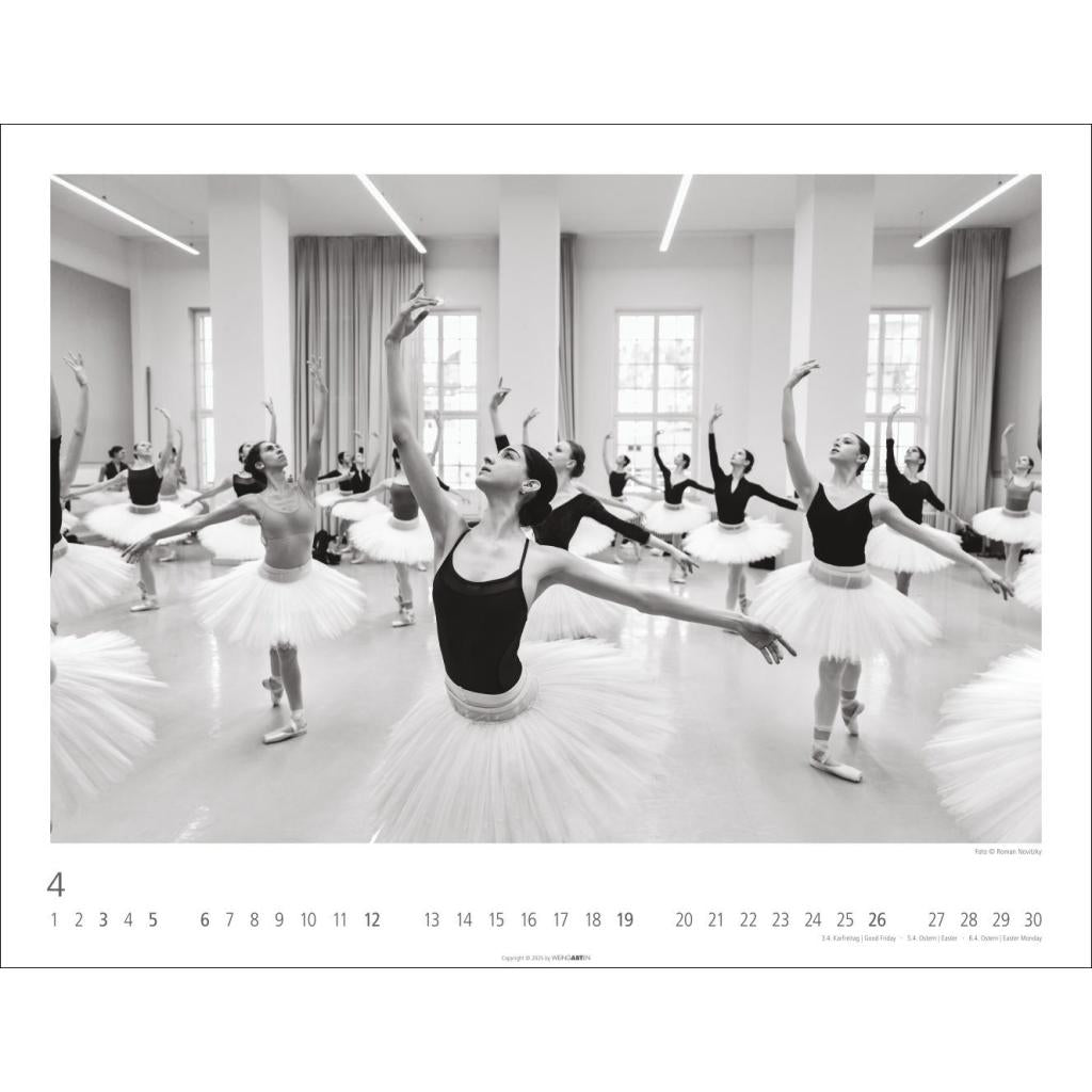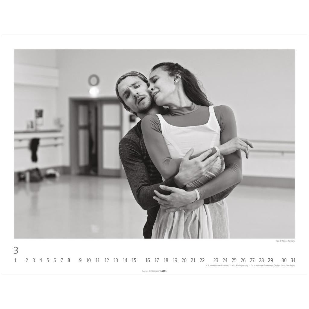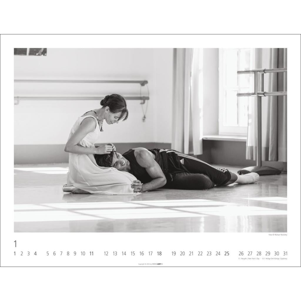 Die ganze Eleganz und Kraft der Tänzer:innen in einem großen Fotokalender. Schwarzweißer Kalender für Tanzbegeisterte. 44 x 34 cm. Querformat