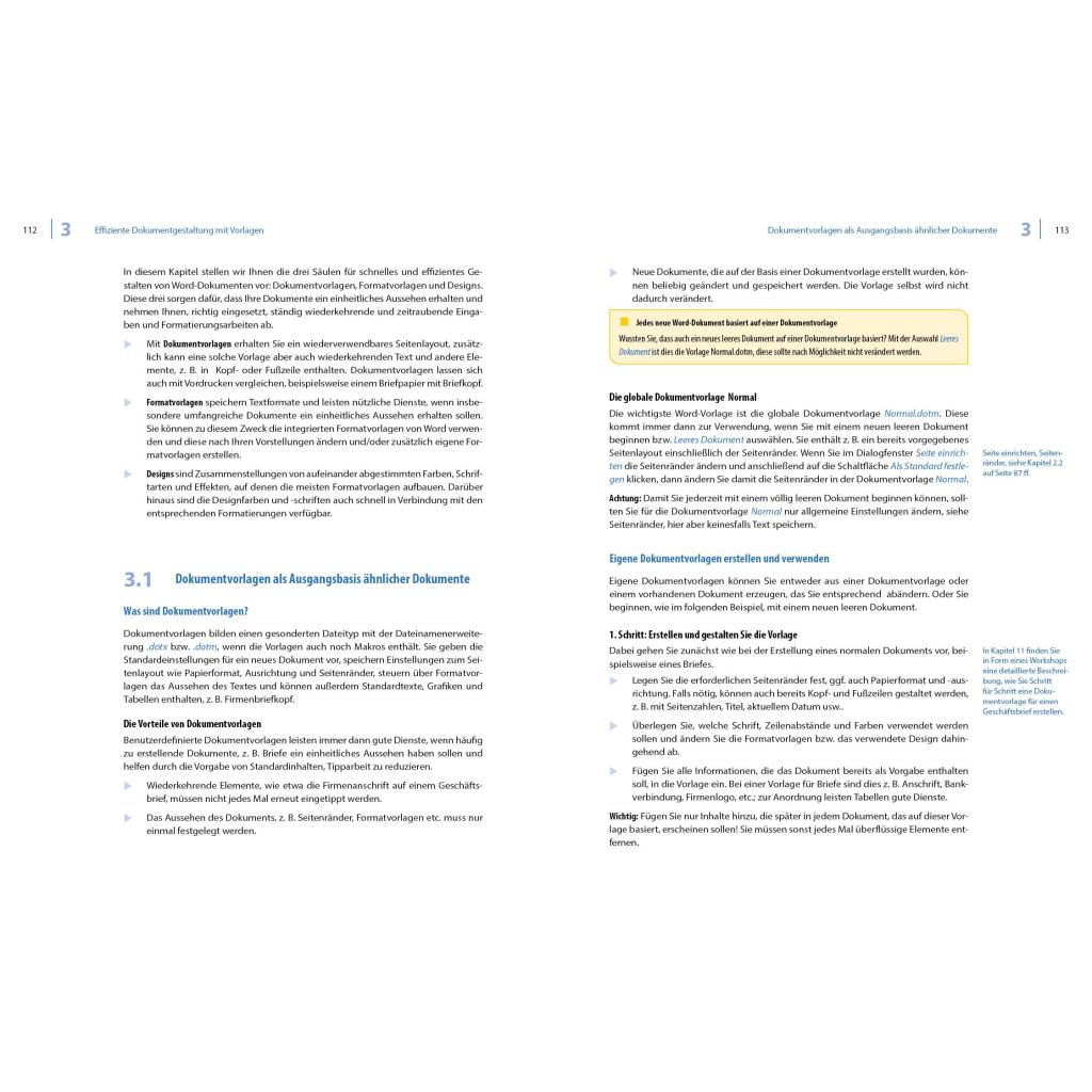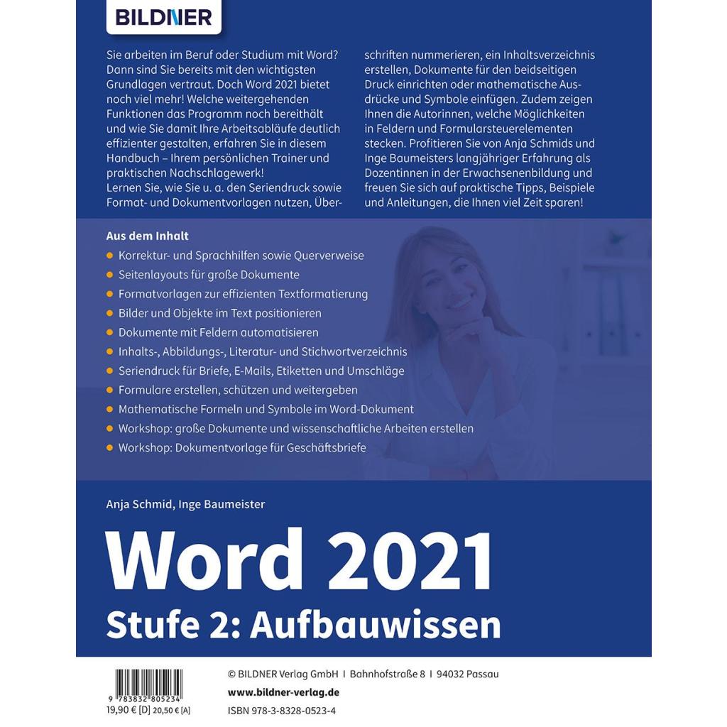 Für fortgeschrittene Anwender - von Dozentinnen geschrieben. So geht's: umfangreiche Dokumente effizient gestalten. Alles zu Formularen, Feldern, Formeln und Vorlagen. Sie arbeiten im Beruf oder Studium mit Word? Dann sind Sie bereits mit den wichtigsten Grundlagen vertraut. Doch Word 2021 bietet noch viel mehr! Welche weitergehenden Funktionen das Programm noch bereithält und wie Sie damit Ihre Arbeitsabläufe deutlich effizienter gestalten , erfahren Sie in diesem Handbuch - Ihrem persönlichen Trainer und praktischen Nachschlagewerk ! Lernen Sie, wie Sie u. a. den Seriendruck sowie Format- und Dokumentvorlagen nutzen, Überschriften nummerieren, ein Inhaltsverzeichnis erstellen, Dokumente für den beidseitigen Druck einrichten oder mathematische Ausdrücke und Symbole einfügen. Zudem zeigen Ihnen die Autorinnen, welche Möglichkeiten in Feldern und Formularsteuerelementen stecken. Profitieren Sie von Anja Schmids und Inge Baumeisters langjähriger Erfahrung als Dozentinnen in der Erwachsenenbildung und freuen Sie sich auf praktische Tipps, Beispiele und Anleitungen , die Ihnen viel Zeit sparen ! Aus dem Inhalt: Korrektur- und Sprachhilfen sowie Querverweise Seitenlayouts für große Dokumente Formatvorlagen zur effizienten Textformatierung Bilder und Objekte im Text positionieren Dokumente mit Feldern automatisieren Inhalts-, Abbildungs-, Literatur- und Stichwortverzeichnis Seriendruck für Briefe, E-Mails, Etiketten und Umschläge Formulare erstellen, schützen und weitergeben Mathematische Formeln und Symbole im Word-Dokument Workshop: große Dokumente und wissenschaftliche Arbeiten erstellen Workshop: Dokumentvorlage für Geschäftsbriefe