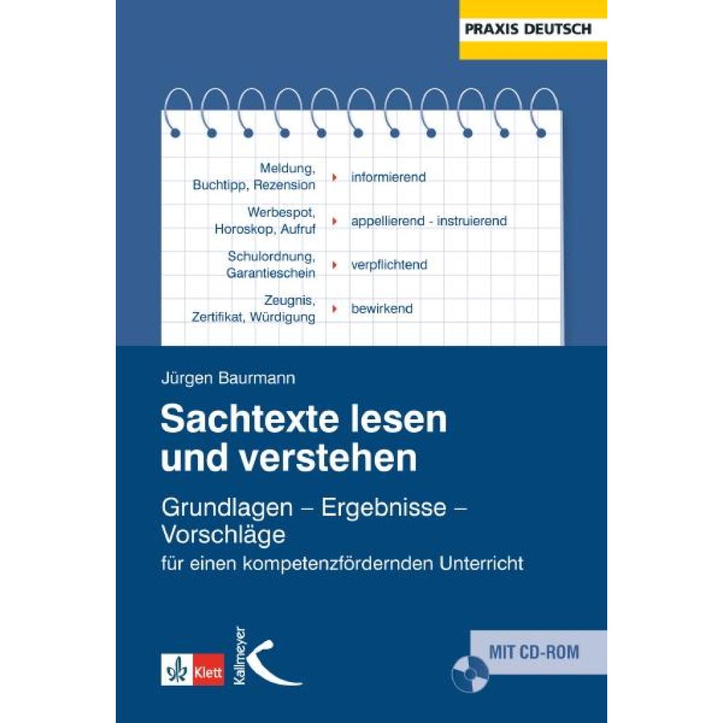 Sachtexte lesen und verstehen - unabdingbar! Die Lesefertigkeiten von Schülerinnen und Schülern waren in den vergangenen Jahren immer wieder Gegenstand von umfangreichen Untersuchungen. Als Folge dieser Studien gab und gibt es intensive Bemühungen, die Lesekompetenz der Schülerinnen und Schüler zu verbessern. Erste Erfolge werden sichtbar. Ganz besonders der Umgang mit Sachtexten, denen Kinder, Jugendliche und Erwachsene ständig begegnen, will geübt sein. Nur derjenige, der mit Sachtexten sicher umgeht, kann seine Interessen angemessen wahrnehmen, seinen Horizont erweitern und sich den gestellten Aufgaben besser stellen. Der Band Sachtexte lesen und verstehen klärt theoretische Grundlagen zum Lesen und Verstehen insbesondere von Sachtexten, nimmt relevante Forschungsergebnisse auf und entwickelt konkrete Vorschläge für die Unterrichtspraxis. Was sind Sachtexte? Welche Texte lesen Jugendliche? Wie kann man den Prozess des Lesen und Verstehens beschreiben? Welche Modelle finden bei dieser Beschreibung Anwendung? Und: Welche Folgen leiten sich daraus für die Lese-Didaktik ab? Die 29 Beispiele für die unterschiedlichen Textarten, jeweils mit Aufgaben und Anregungen für einen kompetenzfördernden Unterricht versehen, runden das Buch ab und machen es zu einer wirklichen, praktischen Hilfe für den Unterrichtsalltag. Der Inhalt der CD: ¿ Texte ¿ Arbeitsblätter ¿ Zusatzmaterialien Geeignet für Deutschlehrer aller Schulstufen.
