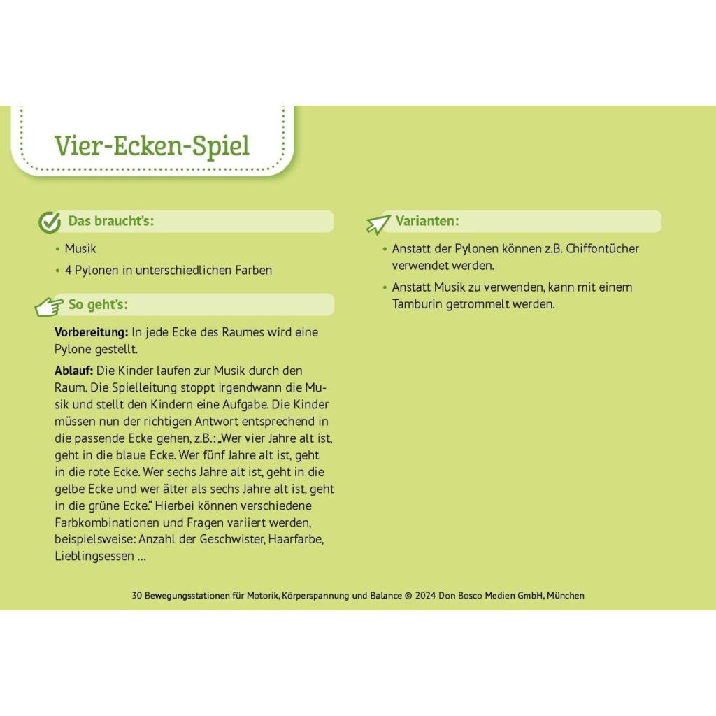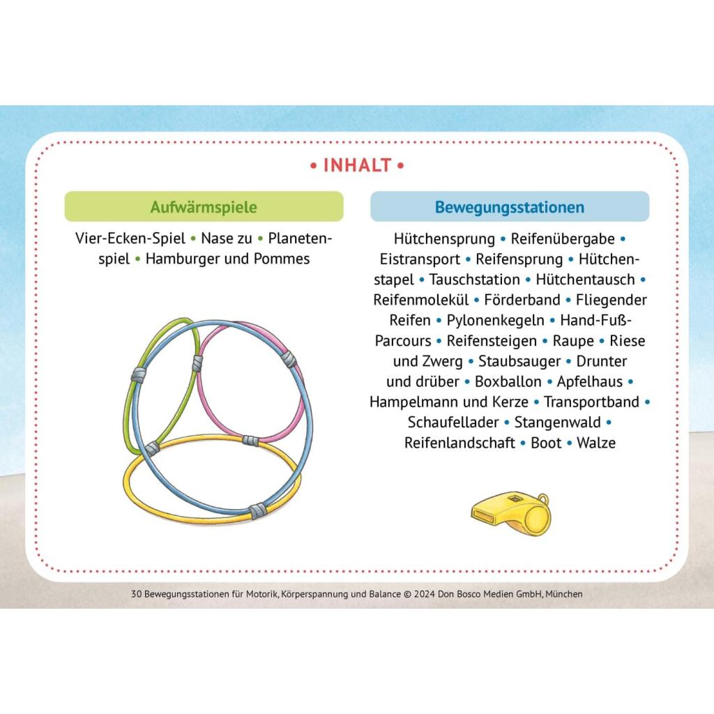 | Keyword: | ausdauer; bewegungsangebot kita; bewegungslandschaft; bewegungsparcours; bewegungsspiel mit kindern; bildkarten sport; geschicklichkeit; kinderturnen spiele; körpertraining; motorik fördern; muskeltraining; sport übungen für kinder; stationstraining; turnübungen kinder; zirkeltraining kraft ausdauer |