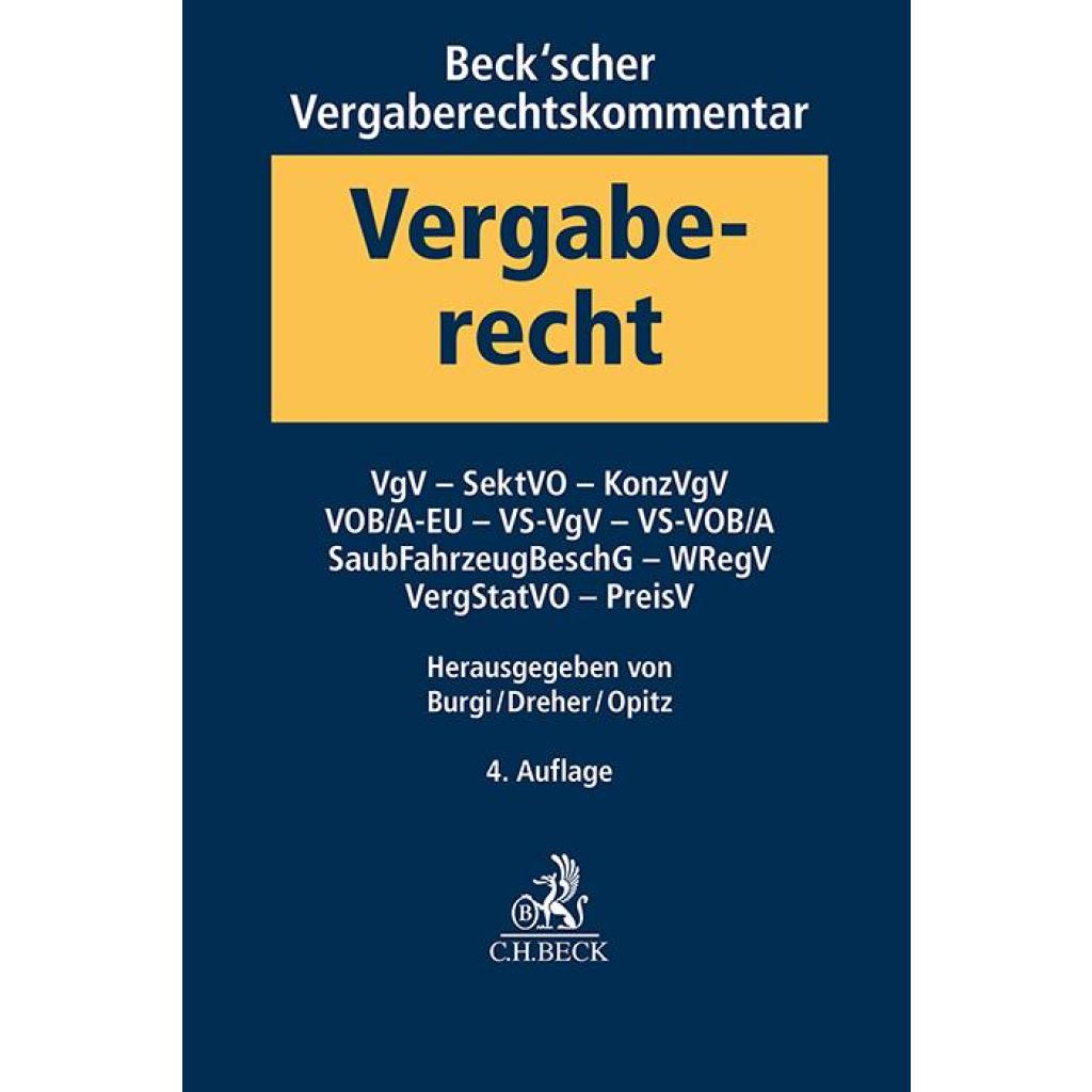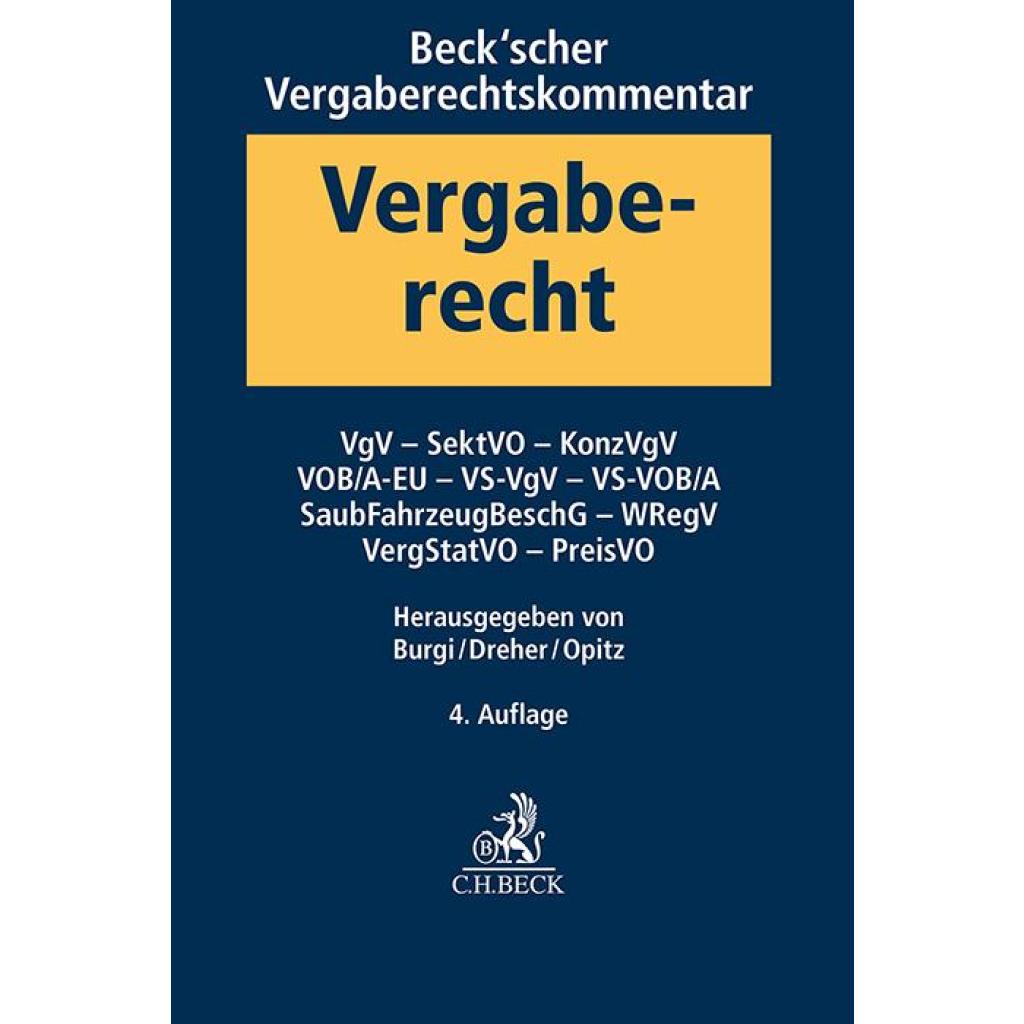 Zum Werk Das zweibändige Werk aus der Reihe der Beck'schen Großkommentare behandelt das gesamte Vergaberecht. Die wesentlichen Regelungen sind im Gesetz gegen Wettbewerbsbeschränkungen zusammengeführt und vereinheitlicht. Einzelheiten der Vergabeverfahren werden in Rechtsverordnungen geregelt. Der 4. Teil des GWB, in dem die Grundsätze des Vergaberechts und des Rechtsschutzes ausgestaltet sind, bildet den Schwerpunkt des letztmalig 2022 erschienenen Band 1. Der - nun in neuer Auflage erscheinende - Band 2 fasst im Schwerpunkt die folgenden vergaberechtlichen Verordnungen zusammen: Vergabeverordnung In der VgV werden die verschiedenen Verfahrensformen erläutert. Dies umfasst die Zulassungsvoraussetzungen für die Wahl einer Verfahrensart und Regeln zum genauen Ablauf der einzelnen Verfahrensarten und genaue Fahrpläne zur Durchführung der jeweiligen Verfahrensart. Ein weiterer Schwerpunkt liegt auf der Eignung und auf sonstigen Anforderungen an Unternehmen. Sektorenverordnung Die SektVO regelt die Vergabe von Bau-, Liefer- und Dienstleistungsaufträgen im Bereich des Verkehrs, der Trinkwasserversorgung und der Energieversorgung durch Sektorenauftraggeber (z.B. kommunale Versorgungswirtschaft). Verteidigungs- und Sicherheitsbereich Durch die VSVgV werden für die Beschaffung im Sicherheitsbereich einheitliche EU-weite Verfahrensregeln geschaffen. Konzessionsvergabeverordnung In der Verordnung KonzVgV finden sich Vorschriften zur Vergabe von Bau- und Dienstleistungskonzessionen. Vorteile auf einen Blick Vergaberecht auf aktuellem Stand mit der Novelle 2023 versierte Sachkenner und Wissenschaftler bieten umfassende Kommentierung auf höchstem Niveau intensive Durchdringung der Einzelfragen, ohne die praktische Anwendbarkeit außer Acht zu lassen Zur Neuauflage Erstmalig aufgenommen die Wettbewerbsregisterverordnung (WRegV) Verordnung PR 30/53 über die Preise bei öffentlichen Aufträgen (PreisV) Zielgruppe Für mit der öffentlichen Auftragsvergabe Befasste in Unternehmen, Behörden, Verwaltung und Justiz sowie der Anwaltschaft.