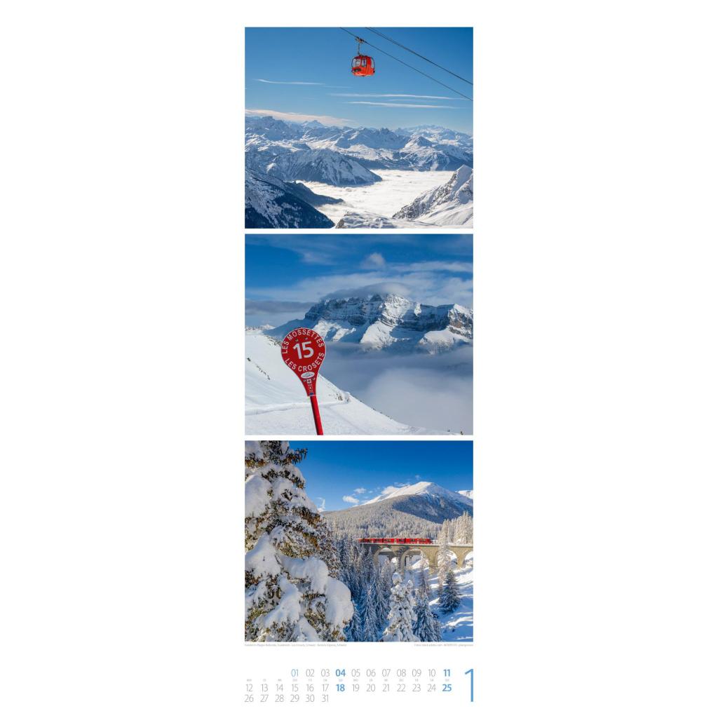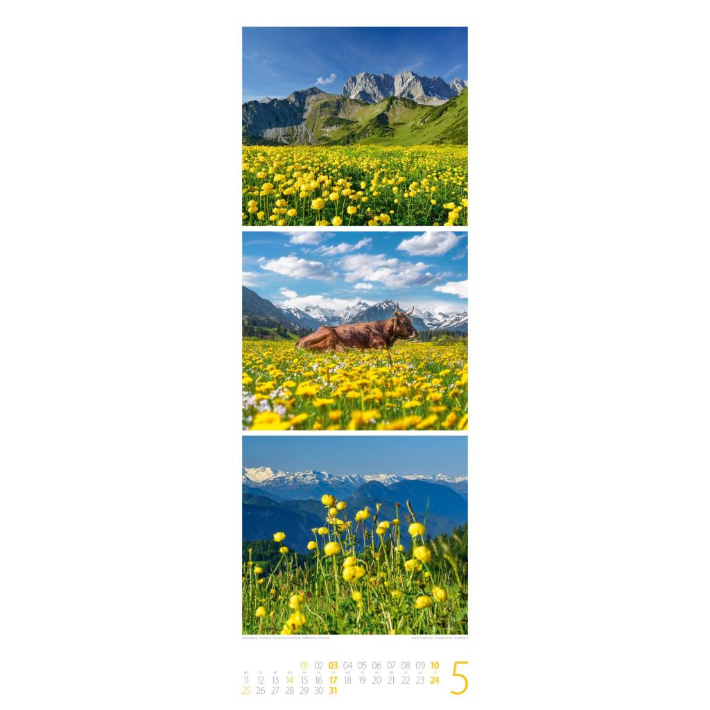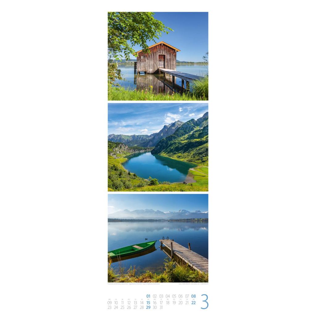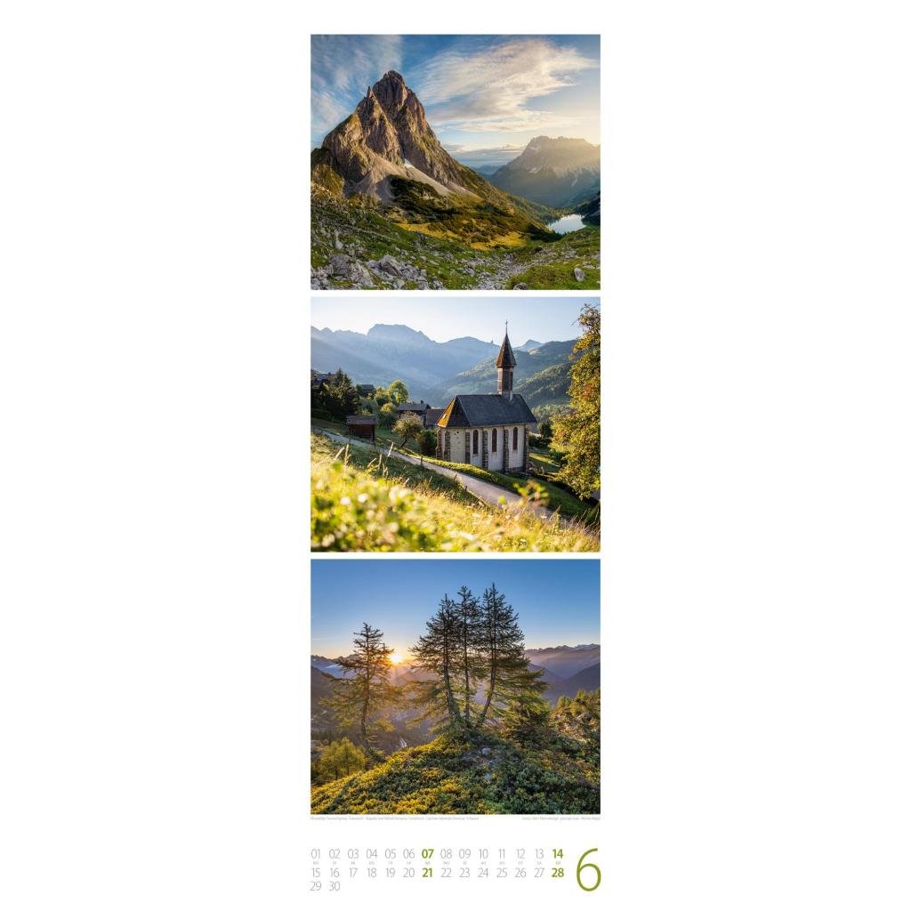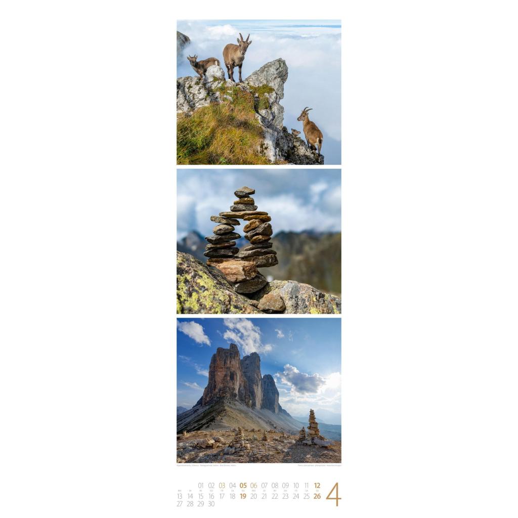 Stimmungsvoller Bergkalender im schlanken Hochformat (24x66 cm) | Triplet-Fotografie mit Bildern aus den Alpen