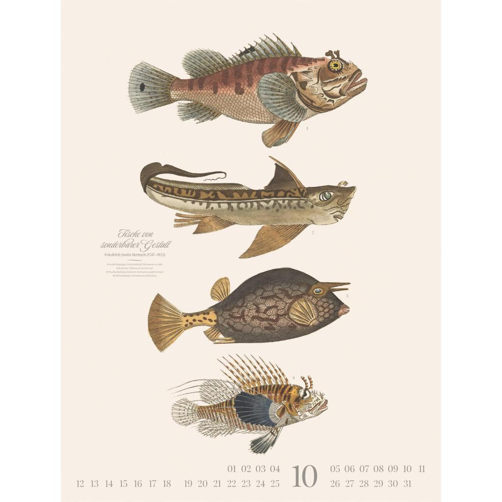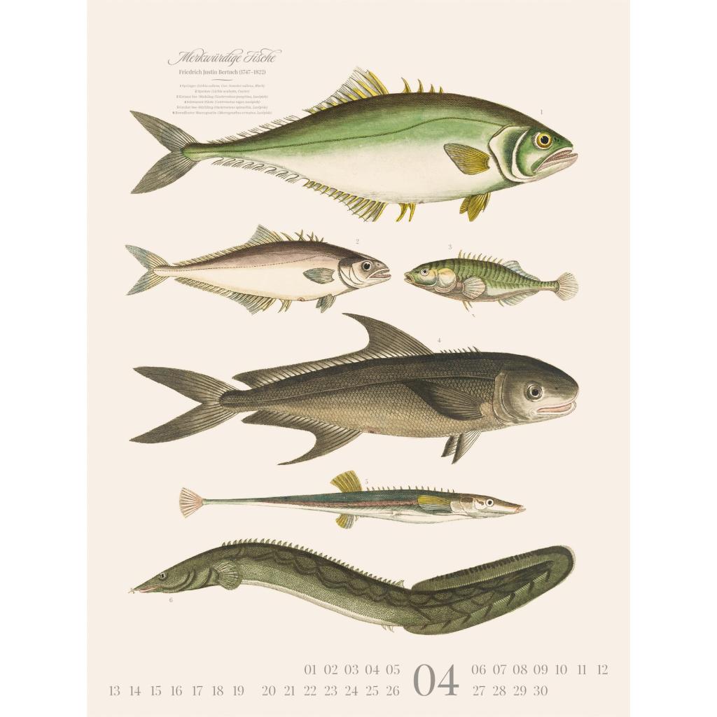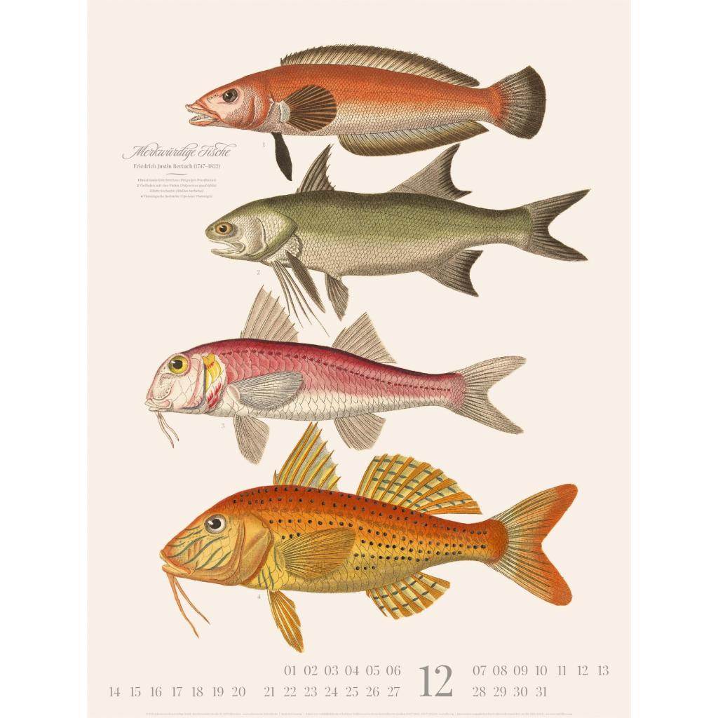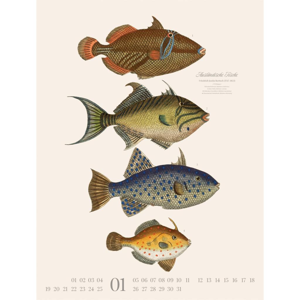 Dekorativer Retro-Kalender im großen Hochformat (50x66 cm) | Historische Tier-Illustrationen von Friedrich Justin Bertuch